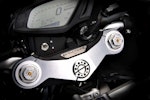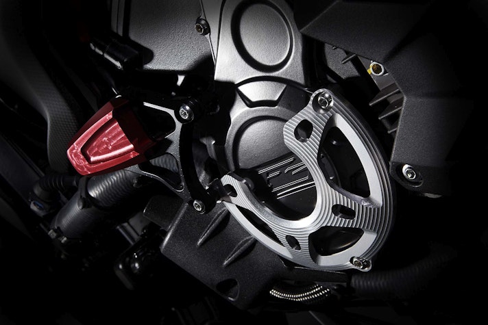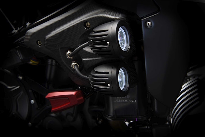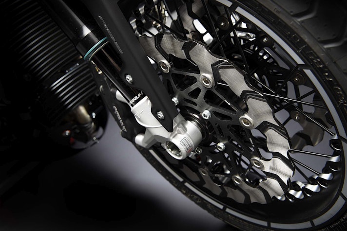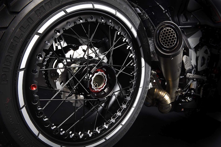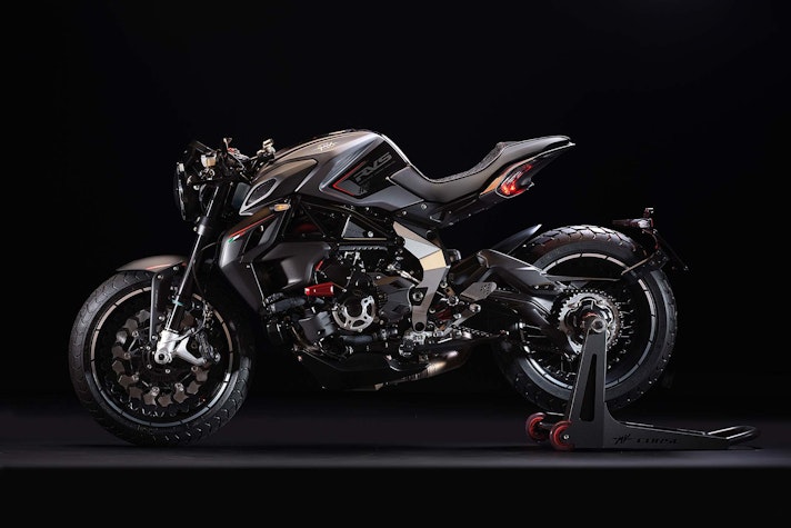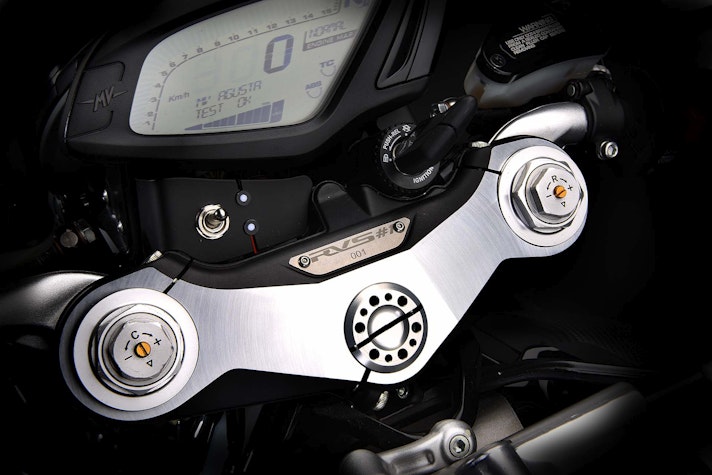 NUOVI ORIZZONTIRidurre la produzione e aumentare il pregio: pare sia questa la strada scelta da Giovanni Castiglioni per condurre MV Agusta verso la salvezza dopo il recente periodo travagliato. In questi ultimi anni la Casa di Varese ha navigato in acque piuttosto torbide, ma questa potrebbe essere la ricetta azzeccata per uscirne. Il tempo giudicherà la bontà o meno dell’idea, (peraltro già sfruttata da MV in passato, chi non ricorda le famose serie speciali lanciate da Claudio Castiglioni?) nel frattempo è nato il primo di una lunga (si spera) serie di modelli: si chiama MV Agusta RVS #1, dove RVS sta per Reparto Veicoli Speciali. Si tratta di una vera e propria costola dell’azienda che ha l’obiettivo di sfornare moto estremamente esclusive, realizzate in gran parte a mano e con materiali pregiati. La MV Agusta RVS #1 sfrutta la base meccanica della Dragster RR, dalla quale però si differenzia non poco.I DETTAGLI CONTANOLunga e colorita la lista di parti speciali. La più evidente è il faro anteriore, una corona di Led adattivi che, grazie al collegamento con la piattaforma inerziale, illumina la strada seguendo l’inclinazione della moto. Ci sono poi una piastra in titanio sulla testa di sterzo che riporta il numero seriale (stampato anche sulle piastre in alluminio del telaio), due ulteriori faretti a Led appesi a destra del motore, gomme semi-tassellate Pirelli MT 60 RS, sella speciale, serbatoio lavorato e un voluminoso elenco di parti meccaniche in ergal o titanio. Materiali che hanno permesso (assieme al nuovo scarico SC-Project e al kit centralina racing consegnato assieme alla moto) di risparmiare 8 kg. Così, il peso totale della MV Agusta RVS #1 si ferma a 160 kg.Non è tutto: anche a livello di prestazioni si voleva offrire qualcosa di speciale. Per questo, i tecnici hanno messo mano in maniera abbastanza profonda al 3 cilindri da 798 cc della Dragster. Tendicatena, motorino di avviamento, alberi a camme, guide valvole, tutti elementi nuovi e realizzati con materiali più leggeri. Il risultato è che, nella versione racing non omologata, la #1 eroga 150 cv a 12.800 giri (140 cv a 12.500 giri nella versione Euro4). È nuovo anche il software della centralina, mentre a livello di ciclistica si segnalano tubi freno e frizione specifici, dischi anteriori Braking e cerchi a raggi Kineo lavorati a mano. E se ancora non basta, il reparto design ha pensato a un logo parecchio caratteristico: un teschio con tanto di iride rosso fuoco che appare un po’ ovunque sulla moto. Prima di scomodare il direttore di banca, però, aspettate un attimo: la MV Agusta RVS #1 sarà venduta in serie limitata a un prezzo ancora da definire. https://www.youtube.com/watch?v=ESNcPJubrg4