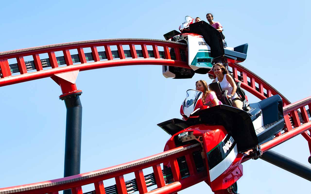 A caccia di idee per trascorrere un weekend di fine estate diverso dal solito? All’interno del Parco divertimenti di Mirabilandia, a Ravenna, c’è anche la “Ducati World”, un’area tematica, attiva dallo scorso aprile, che mette a disposizione diverse attrazioni ispirate al brand motociclistico. Oltre a Diavel Ring, Kiddy Monster e all’area con simulatori dell’Experience Building, Ducati ha introdotto il nuovo circuito “Desmo Race”. Si sale a bordo di una moto biposto, che riproduce una Panigale V4, e ci si sfida su due binari paralleli in una gara testa a testa. I requisiti per partecipare? Età superiore ai 6 anni e altezza minima di 120 cm.