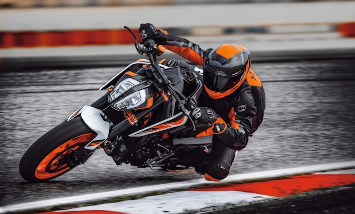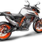 Si perché con la cilindrata cresce anche la dotazione con nuove sospensioni WP Apex completamente regolabili, figlie delle conoscenze maturate in MotoGP e freni che utilizzano dischi più grandi (320 mm) e le pinze Brembo Stylema comandate da una pompa radiale Brembo MCS. Insomma con la Duke 890 R KTM torna alle antiche (e buone) abitudini di accoppiarsi a partner eccellenti. E la cosa non può che farci piacere. La lista di cose interessanti prosegue con l’adozione di una piattaforma inerziale a 6 assi che sovrintende al controllo di trazione più evoluto e all’ABS Cornering, e a una posizione di guida più sportiva con sella più alta (834 mm) e manubrio più basso. La ciliegina sulla torta? Il peso cala di 3,3 kg rispetto alla 790 Duke, ora siamo a 166 kg a secco.