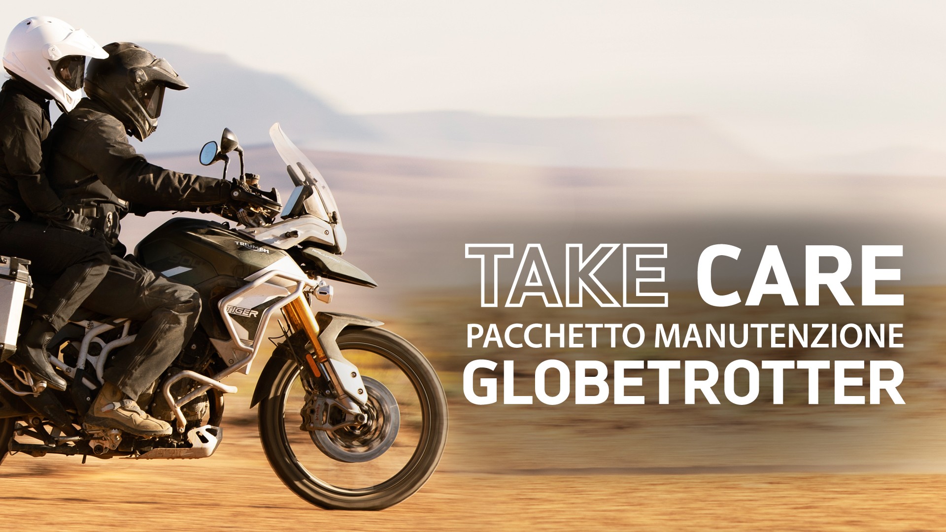 Triumph Take Care offre la possibilità di acquistare 3 diversi pacchetti di manutenzione articolati sulla base del profilo di utilizzo della propria moto e in relazione alla percorrenza chilometrica. Acquistando uno dei pacchetti, il cliente potrà contare sull’assistenza regolare e conforme a quanto raccomandato da Triumph Motorcycles, ma anche di un vantaggio economico per l’acquisto di ricambi soggetti a usura, non previsti dal piano di manutenzione (come pastiglie o dischi freno).Inoltre, ogni pacchetto può essere integrato nel programma di finanziamento sottoscritto nel momento dell’acquisto della moto nuova e, in caso di vendita, la copertura eventualmente residua può essere trasferita al nuovo proprietario, di fatto sostenendo il valore residuo della motocicletta.