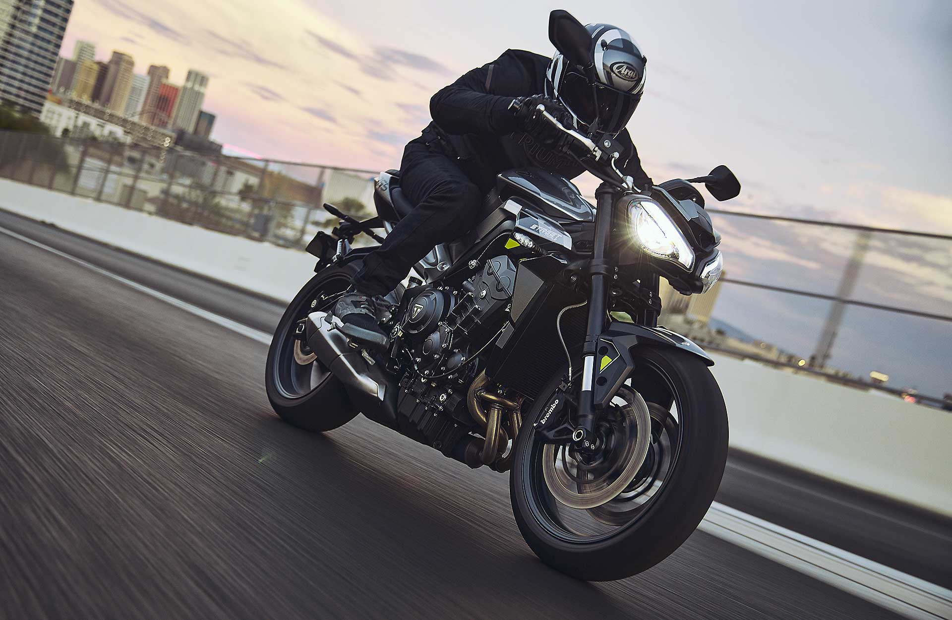 Ma partiamo con il dire che il layout tecnico su cui si basa la fighter inglese (perché di questo si tratta avendo il telaio direttamente derivato da una sportiva e i fari fissati al telaio e non al manubrio) non è cambiato. Per fortuna viene da dire perché il binomio telaio motore di questa moto ha sempre rappresentato il suo punto di forza. Telaio, forcellone e soprattutto motore Triple da 765 cc sono i medesimi delle precedenti edizioni.