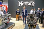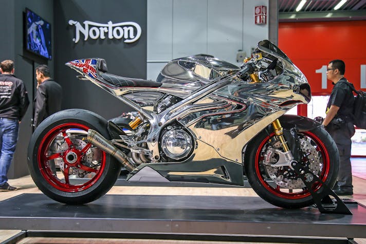Norton ha portato a Eicma la gamma al completo, con i modelli della piattaforma Commando 961 e i due allestimenti RR e SS della nuova V4, motocicletta che è stata sviluppata sulla base del prototipo che ha fatto settimo al TT dell’isola di Man, fra le mani di David Johnson, a 211 di media. Spinta da un quattro cilindri 1.200 cc made in Norton, accreditato di 200 cv, la V4 è esclusiva anche nel prezzo, 38.000 euro e spiccioli. Presentata lo scorso anno e mostrata al NEC di Birmingham, è ora disponibile anche in Italia.Novità assoluta è invece la Commando California, il cui nome tradisce la sua ispirazione senza possibilità di confondersi. Nata per soddisfare una specifica richiesta del mercato statunitense, è mossa dal classico bicilindrico parallelo ad aste e bilancieri da 961 cc, con 72 cv e 67 Nm a 6.500 giri; ha manubrio alto e un look in perfetto stile Anni 60, nonostante le raffinate e tecnologiche sospensioni Öhlins e il doppio disco anteriore con pinze Brembo monoblocco ad attacco radiale. Può essere personalizzata anche nella colorazione, nel caso le sei opzioni di grafica non fossero sufficienti, per renderla ancora più esclusiva e unica.Costa 24.300 euro.