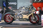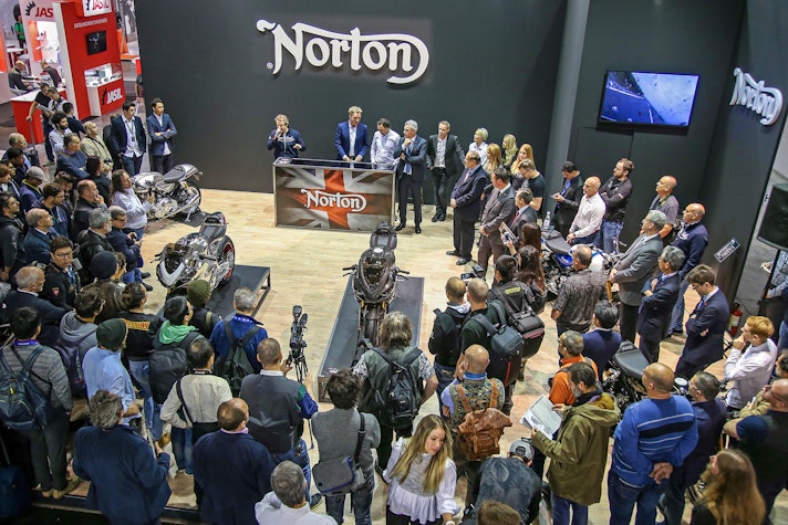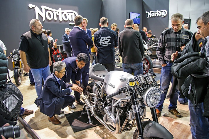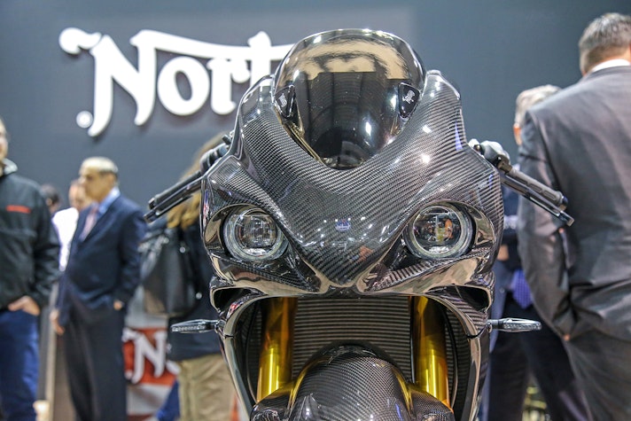 Norton ha portato a Eicma la gamma al completo, con i modelli della piattaforma Commando 961 e i due allestimenti RR e SS della nuova V4, motocicletta che è stata sviluppata sulla base del prototipo che ha fatto settimo al TT dell’isola di Man, fra le mani di David Johnson, a 211 di media. Spinta da un quattro cilindri 1.200 cc made in Norton, accreditato di 200 cv, la V4 è esclusiva anche nel prezzo, 38.000 euro e spiccioli. Presentata lo scorso anno e mostrata al NEC di Birmingham, è ora disponibile anche in Italia.Novità assoluta è invece la Commando California, il cui nome tradisce la sua ispirazione senza possibilità di confondersi. Nata per soddisfare una specifica richiesta del mercato statunitense, è mossa dal classico bicilindrico parallelo ad aste e bilancieri da 961 cc, con 72 cv e 67 Nm a 6.500 giri; ha manubrio alto e un look in perfetto stile Anni 60, nonostante le raffinate e tecnologiche sospensioni Öhlins e il doppio disco anteriore con pinze Brembo monoblocco ad attacco radiale. Può essere personalizzata anche nella colorazione, nel caso le sei opzioni di grafica non fossero sufficienti, per renderla ancora più esclusiva e unica.Costa 24.300 euro.