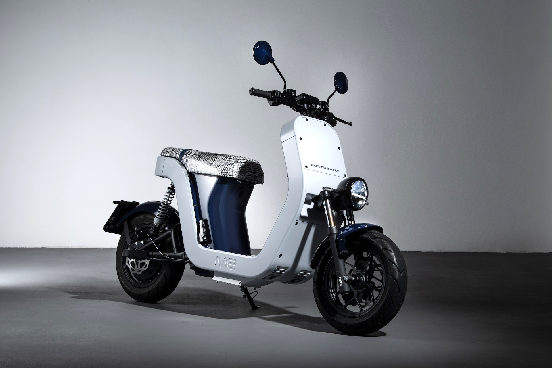 Gli scooter ME, sigla che sta per Motorino Elettrico, grazie alla collaborazione con il marchio statunitense hanno dettagli ed elementi realizzati con materiali riciclati. Ne sono un esempio le vele North Sails, non più adatte alla navigazione oceanica, impiegate per rivestire la sella.