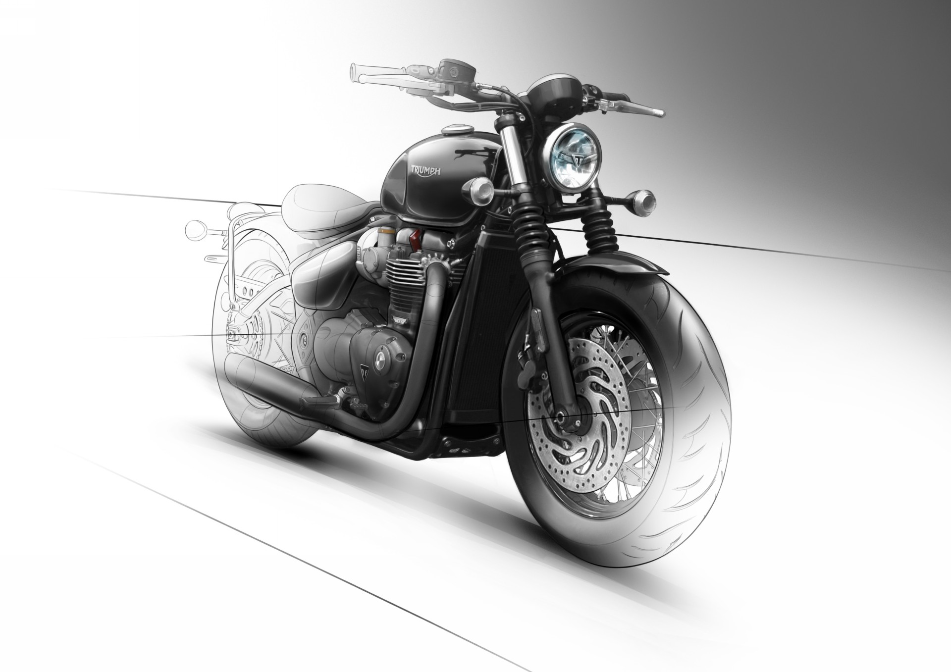 Non erano in molti quelli che, al suo lancio, avrebbero scommesso ingenti somme sulla fortuna della Bobber. O meglio, su una straordinaria performance quale essere stata la Triumph che nei 115 anni di vita del Marchio ha fatto segnare il più alto numero di vendite nel minor tempo.Ma sono stati proprio quegli aspetti del suo carattere, che a non pochi avevano fatto aggrottare la fronte in una smorfia di perplessità, a convincere un numero molto maggiore di motociclisti, che si sono invece perdutamente innamorati a prima vista e magari senza nemmeno averla guidata…SUCCESSO ANNUNCIATO MA SORPRENDENTENoi, che invece abbiamo avuto l’opportunità di conoscerla prima di tutti (vai alla prova), lo avevamo capito subito che dalla Bobber non si pu ò non rimanere stregati! Essenziale, monoposto, radicale. Una custom di serie dal look hot-rod, con quel retrotreno stile hard-tail che la carica e la proietta in avanti. Per tacere del piacere di guida.BLACK EDITION, SEMPRE PIÙ BOBBERIn quel di Hinckley avevano già pensato a un sequel per la Bobber e l’enorme successo di pubblico ha rafforzato la convinzione che la decisione fosse giusta.Così è arrivata la Black Edition, versione più “cattiva” dove l’aggettivo sta a indicare un carattere più marcato e un aspetto più aggressivo.Risultato ottenuto, oltre che con la classica colorazione total black, con un lavoro sull’avantreno, ora caratterizzato da ruota da 16″ (sulla Bobber è da 19″) con pneumatico Avon Cobra 130/90, forcella Showa con steli da 47 mm (in luogo della KYB da 41 mm)e doppio disco da 310 mm con pinze freno Brembo a doppio pistoncino (disco singolo sul modello standard).Premium anche l’impianto luci, qui full LED compreso il faro anteriore da 5″ con luci diurne. I progettisti inglesi hanno avuto un pensiero anche per il comfort e così hanno aggiunto alla dotazione elettronica di serie (ride-by-wire con due mappature, controllo di trazione disinseribile e ABS) il cruise-control, che si controlla tramite un unico pulsante sul blocchetto di sinistra.La presentazione ufficiale della nuova Bonneville Bobber Black sarà all’EICMA e la prova su strada arriverà poco dopo. Stay tuned…