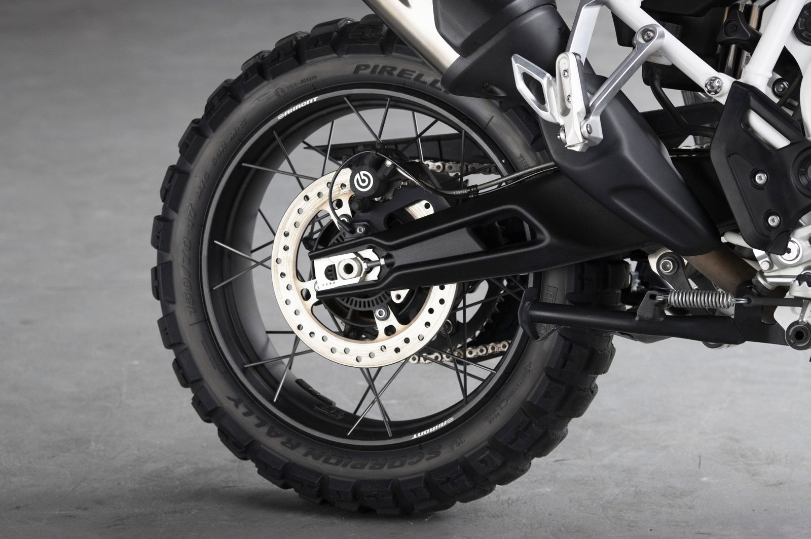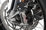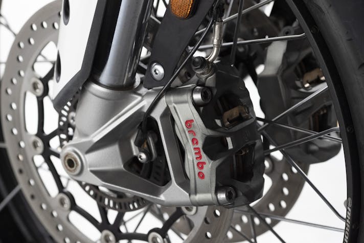 regolabile elettronicamente, che consente al pilota di intervenire su precarico e smorzamento. In questo caso, scegliendo tra nove livelli di smorzamento – che vanno da Comfort a Sport – e quattro di precarico. L’impianto frenante è di prima qualità, grazie alle