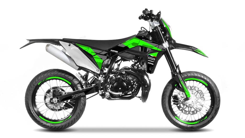 Il nuovo Peugeot XP6 è prodotto in Francia ed è realizzato in collaborazione con Sherco, vero e proprio specialista nel settore. Sarà disponibile nelle versioni Supermotard, Supermotard R e Enduro R, con base tecnica in comune, a partire dal motore monocilindrico 50 CC Minarelli AM6 con carburatore Dell’Orto da 16 mm. Il piccolo monocilindrico è raffreddato a liquido, per una gestione ottimale della temperatura, ed è abbinato a un cambio manuale a 6 marce.