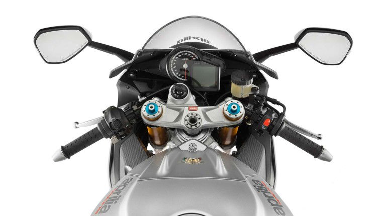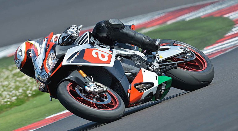 Occhio a non confondervi, quindi. Se le lettere “T” e “S” indicano le mappature “Track” e “Sport”, come in passato, la “R” ora indica la mappatura “Race” ancora più estrema e “scorrevole”. Come prima il Traction Control è gestibile “on fly” mentre si guida tramite il comodo joystick sul semimanubrio sinistro, ma ora si può fare molto di più. La nuova RSV4 RF porta al debutto V4-MP, la versione più estrema della Aprilia Multimedia Platform, l’app per smartphone che interfacciandosi con la moto consente di ricavare informazioni aggiuntive e in questo caso intervenire sui settaggi della moto. Roba già vista? Non proprio: con la V4-MP una volta collegato lo smartphone alla moto potrete dividere la pista in settori e scegliere per ciascuno di essi il livello di Traction Control e Antiwheeling più adatto, ottimizzando le prestazioni della moto (guardate il cruscotto nel video e vedrete come funziona). Non siamo al corner by corner ma poco ci manca! L’unico difetto? Dover girare con lo smartphone sulla moto…Se l’evoluzione del motore è stata drastica, sulla ciclistica gli uomini di Noale sono andati di cesello, ancora una volta condividendo le informazioni con il reparto corse, perché l’obiettivo di Aprilia con questa moto è andare quanto più forte possibile in pista. Telaio confermato: i tecnici hanno lavorato spostando pesi e ottimizzando il bilanciamento di una moto che quanto a ciclistica ha sempre avuto più da insegnare che da imparare. Sfruttando gli attacchi ad altezza variabile (una prerogativa unica) il motore è stato montato più in basso (5 mm), e il forcellone allungato di 14 mm (cambia la parte finale, quella con l’asola entro cui scorre il perno ruota) per offrire più possibilità di regolazione a chi corre; la ruota posteriore si sposta indietro di 4 mm. Una moto leggermente più bassa e “lunga”, quindi, per migliorare la stabilità (anche in staccata, uno dei pochi punti deboli della RSV4), senza perdere la proverbiale agilità della V4 veneta, ripristinata aumentando l’offset delle piastre di sterzo (+ 2 mm) e chiudendo leggermente il cannotto di sterzo per mezzo degli eccentrici, di serie da sempre sulla RSV4.Lavoro di fino, quindi, per migliorare il migliorabile. E le sospensioni? Classiche, se cosi vogliamo intenderle: Sachs firma quelle della RR (18.300 euro), Ohlins quelle della RF edizione estrema e numerata (21.950 euro), che può contare anche sulle ruote forgiate (in pratica è la “vecchia” Factory) e che è anche la versione di punta della gamma RSV4. Sospensioni attive? Nada. Cronometro alla mano i tecnici Aprilia giurano che non danno alcun vantaggio nell’unica cosa che conta: il tempo sul giro. E se lo dicono loro…DRIVEPrima curva di Misano, arrivi dal rettilineo in quinta, il V4 urla i suoi 12.000 e passa giri con un suono da brividi. La staccata è decisa, secca, il posteriore accenna leggermente a muoversi, ma non più come in passato, la moto resta in linea e si inserisce, rapida. Indugio con i freni in mano fino a centro curva, percepisco che la Pirelli SC2 anteriore si muove un pelo aggrappata al nuovo asfalto di Misano con ogni molecola della sua mescola. La RSV4 ti fa sentire tutto ma proprio tutto quello che accade sotto le sue ruote. Mollo i freni, inserisco la moto la forcella si estende leggermente, controllata, morbida. La RSV4RF chiude la linea in modo magistrale, breve accelerazione, cambio di direzione, è velocissima, ma sta lì, chiude la linea.Dentro la terza, il quickshifter è rapido, il cambio morbido non sbaglia un colpo; di nuovo un cambio di direzione, di nuovo quel mix libidinoso tra velocità-precisione di guida e neutralità di assetto che fa godere il pilota. Apro il gas, la lunga destra che porta all’uncino del Rio è bastarda, c’è una depressione che scarica le sospensioni, quando sei in piena accelerazione se non stai attento è facile lanciarsi. Ma la RSV4 se ne sbatte, la trazione è ottima, l’elettronica è superlativa, il led sul cruscotto lampeggia ma non senti mai “tirare indietro”, la moto fa strada. Tanta. Staccata violenta, giù due marce. Le Rio con la Aprilia ora si fanno in prima marcia (…), ma il freno motore è molto limitato, la moto scorre comunque, anche in prima. Il lavoro per tenere “giù” il posteriore in questi frangenti è stato eccellente. Dentro la seconda marcia tra la prima e la seconda curva del Rio, poi cambio di direzione rapidissimo con la moto sempre imperturbabile. Mungo il gas come se non ci fosse un domani, con nessuna mille mi capita di farlo così: ancora una volta l’elettronica gestisce ma non taglia, controlla ma non invade. L’anteriore si alza, galleggia a 20 centimetri da terra e la moto fa strada, ancora una volta.