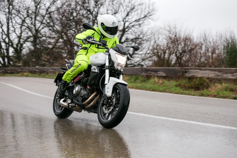 La strada resa viscida dalla pioggia incessante incute un po’ di timore durante le manovre, vista anche l’assenza dell’ABS, ma bisogna ammettere che l‘impianto frenante si comporta egregiamente e, insieme alle ottime gomme Pirelli di primo equipaggiamento, trasmette sicurezza.Il motore ha un sound metallico molto gradevole, sia quando gira al minimo, sia quando urla oltre i 10.000 giri. Ha un ottimo allungo: sopra i 7.500 giri la potenza del bicilindrico è corposa e non accenna a diminuire nemmeno quando la lancetta supera la zona rossa, mentre sotto risulta un po’ pigro.Nel complesso la BN 302 si è rivelata una entry level senza troppe pretese ma di buona fattura, piacevole e facile da guidare. Vincerà la scommessa di conciliare tradizione italiana a prezzi da Far East?