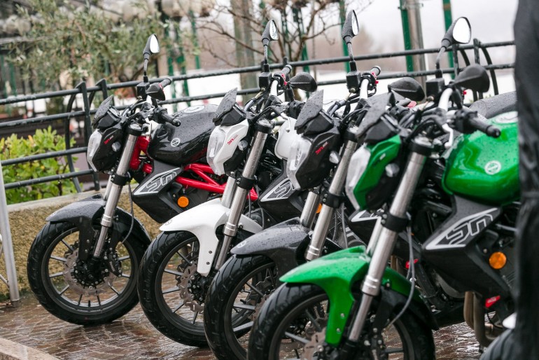 Anche se fuori continua piovere, siamo qui non per il passato ma per raccontare il presente di Benelli e la sua nuova BN 302. La sella è abbastanza bassa (795 mm da terra) come piace a donne e principianti; il manubrio non è lontano dal corpo ed è leggermente chiuso. Le pedane sono alte e arretrate. Forse un tantino troppo, almeno per chi non è brevilineo, ma è lo stesso responsabile tecnico del progetto BN 302 a spiegarci che in posizione più avanzata in piega sarebbero state troppo vicine all’asfalto.Da fermi, i 185 kg a secco della BN si sentono tutti mentre in movimento la sensazione di pesantezza svanisce e la piccola Benelli si mostra agile ed equilibrata, oltre che facile da condurre. Complici le sospensioni tarate sul morbido – comunque mai cedevoli – la BN è comoda e assorbe bene le asperità dell’asfalto.