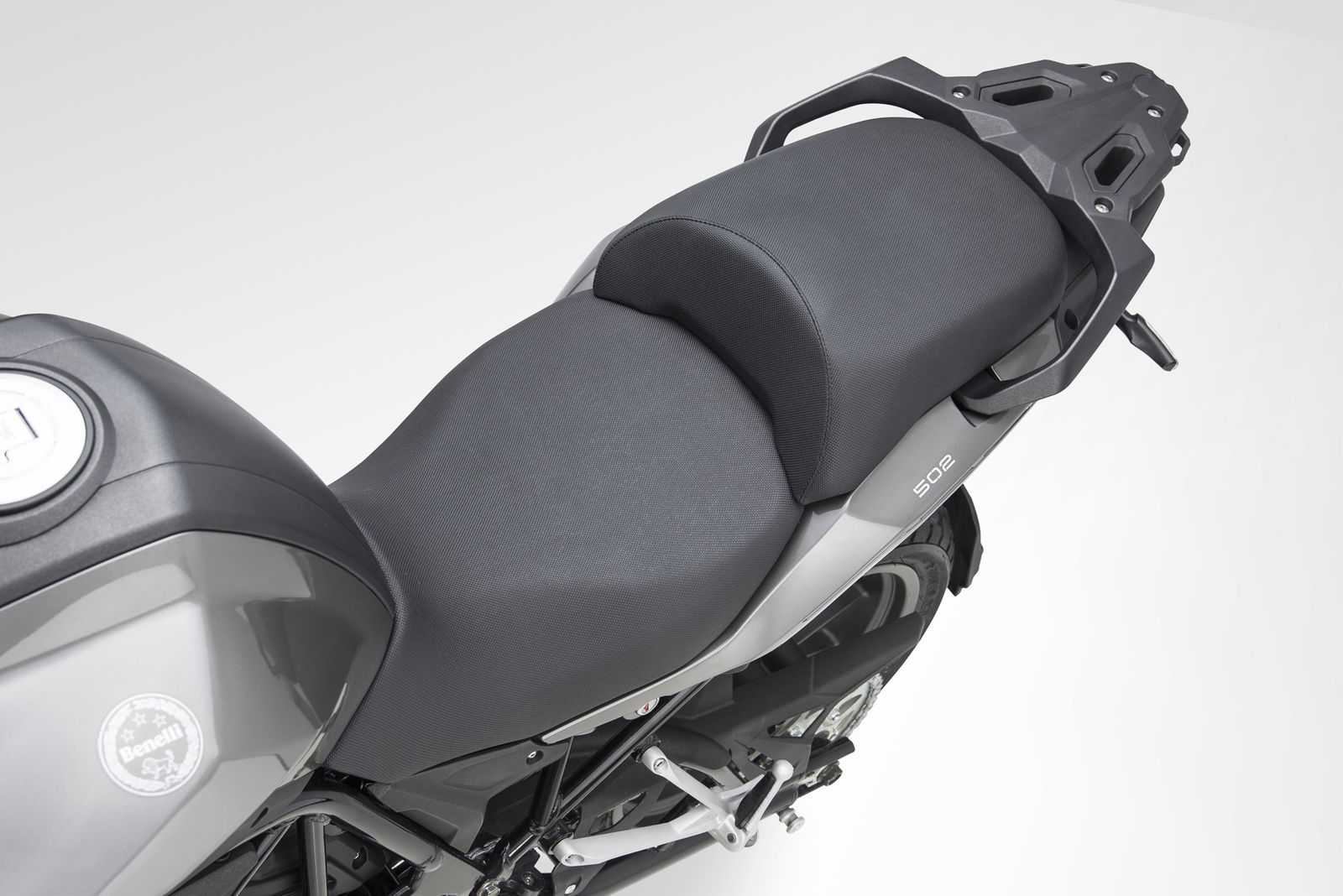 La Benelli TRK 502 offre al pilota una sistemazione piuttosto particolare. Con i suoi 800 mm, una quota pensata anche per i motociclisti asiatici, la sella è bassa per una tuttoterreno e ci si trova ad assumere una postura molto seduta, con le pedane leggermente avanzate, il busto eretto e le braccia allungate verso il manubrio. Anche se insolita, questa posizione assicura un buon controllo e non è affatto scomoda, neppure per chi è più alto della media (per dare un’idea, nelle foto appaio io, che sono altro 182 cm e peso 80 kg). Lo stesso vale per quella del passeggero, che ha a disposizione un cuscino comodo e leggermente rialzato, pedane alla giusta distanza e un portapacchi cui aggrapparsi.