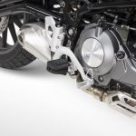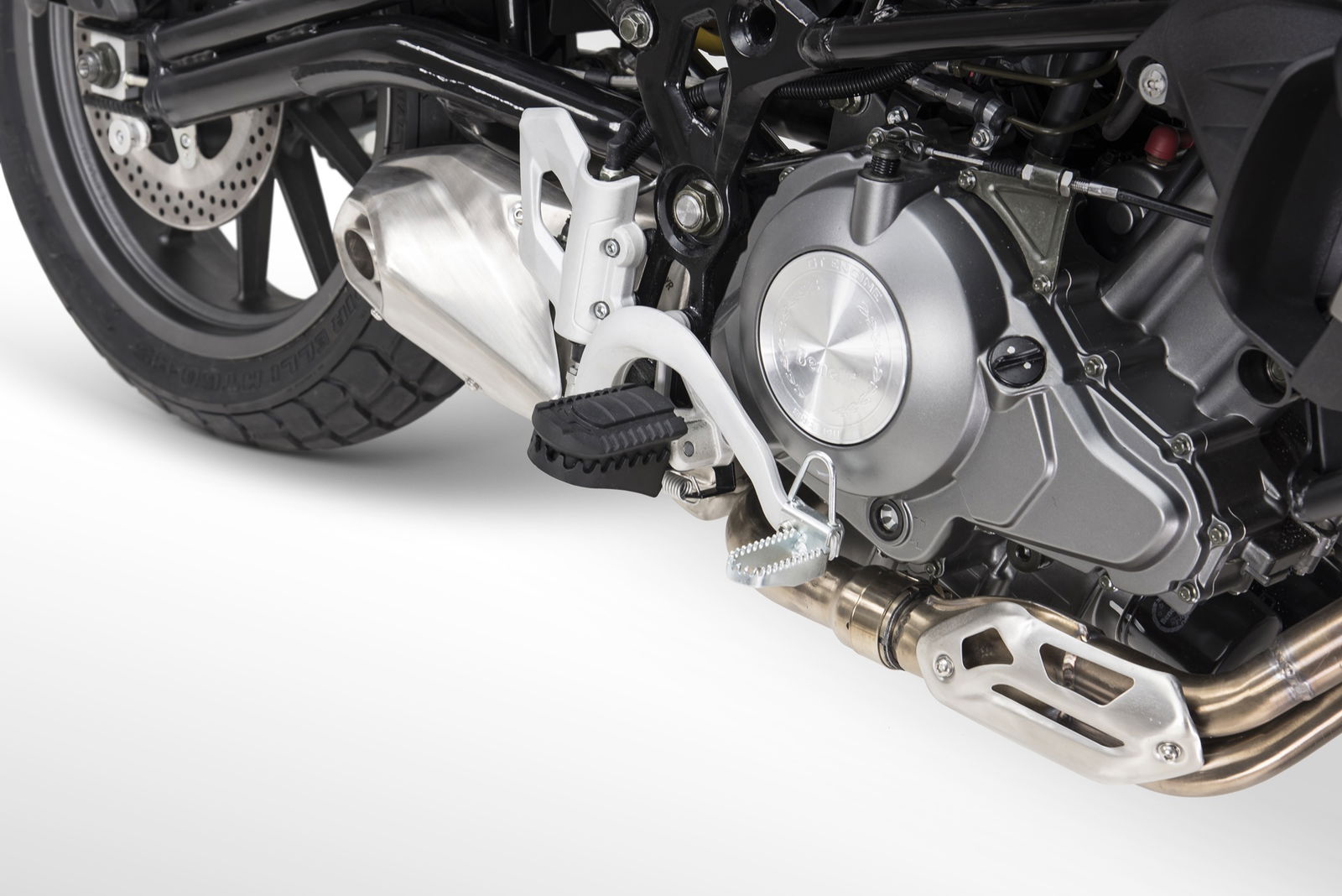 Analizzando nei minimi dettagli la TRK 502 – che per la cronaca è costruita in Cina, dove si trova il quartier generale della capogruppo Qianjiang – si notano alti e bassi nelle finiture. Tra i particolari realizzati meglio spiccano il manubrio a sezione variabile, le grandi pedane in lega leggera con gommini asportabili e le belle pinze freno, che lavorano due dischi da 320 mm.