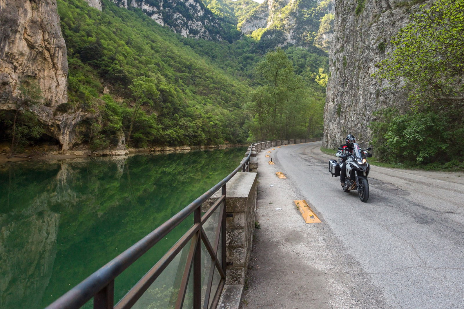 Una volta a bordo, la prima impressione è di trovarsi alle prese con una moto ben stazzata, complici il massiccio serbatoio da 20 litri e il cupolino imponente, con un ampio parabrezza affiancato dai deflettori laterali. Non ci si sente però in soggezione, perché i piedi poggiano saldamente a terra e si riesce a fare inversione a U in poco spazio, con il manubrio che gira molto da entrambe le parti.