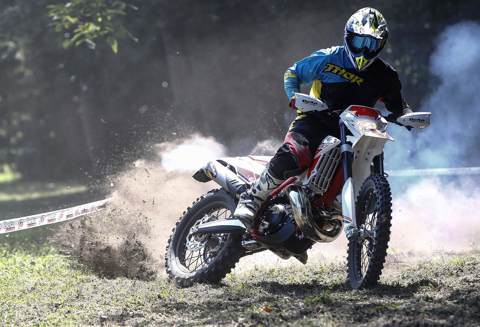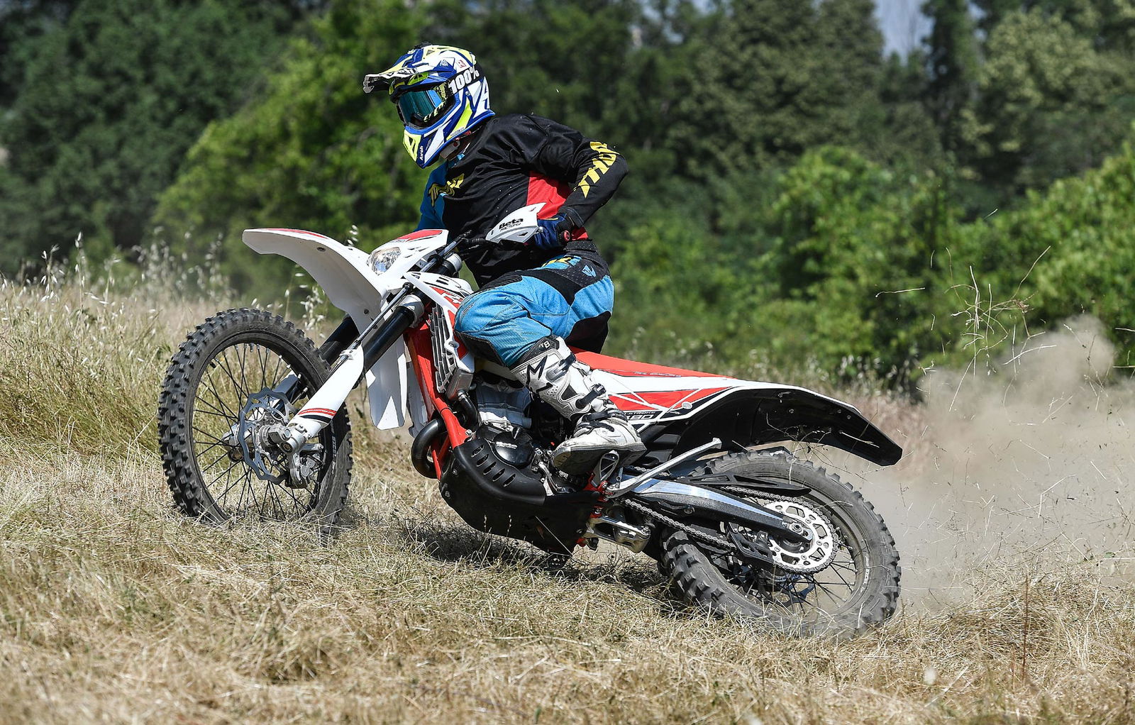 In sella la moto si fa apprezzare per la snellezza generale che già da fermo fa intuire le doti di grande agilità e maneggevolezza, prerogative indispensabili delle piccole 125 2T. La posizione di guida è ottima per piloti di tutte le taglie. La RR 125 in movimento è agilissima nello stretto, dote che è emersa immediatamente nella prima parte del percorso su cui abbiamo effettuato il test ricavato in un bosco con passaggi tra gli alberi, ma anche stabile e precisa nei tratti veloci su prato fettucciato. Le sospensioni si fanno apprezzare per l’ottima taratura di base e per l’equilibrio generale nel comportamento dinamico, con grande trazione al posteriore ed una bel feeling sull’avantreno.