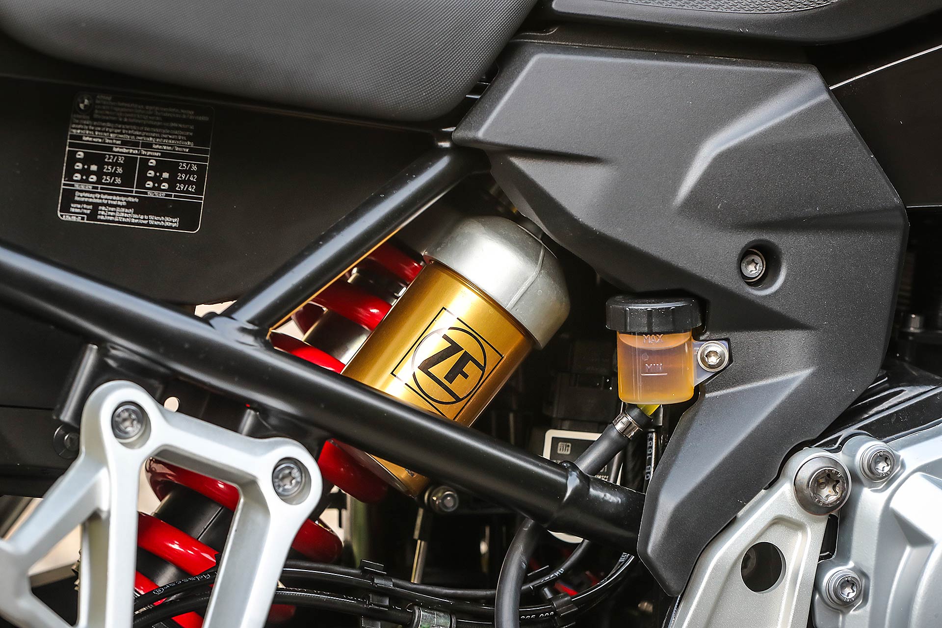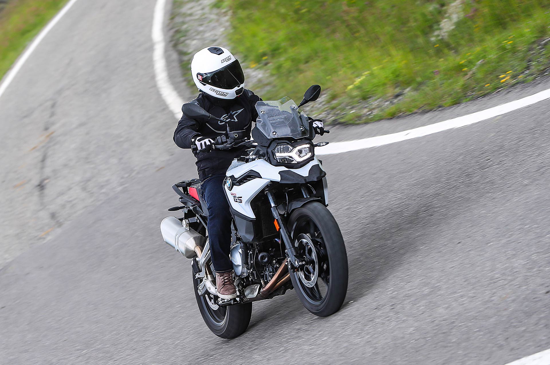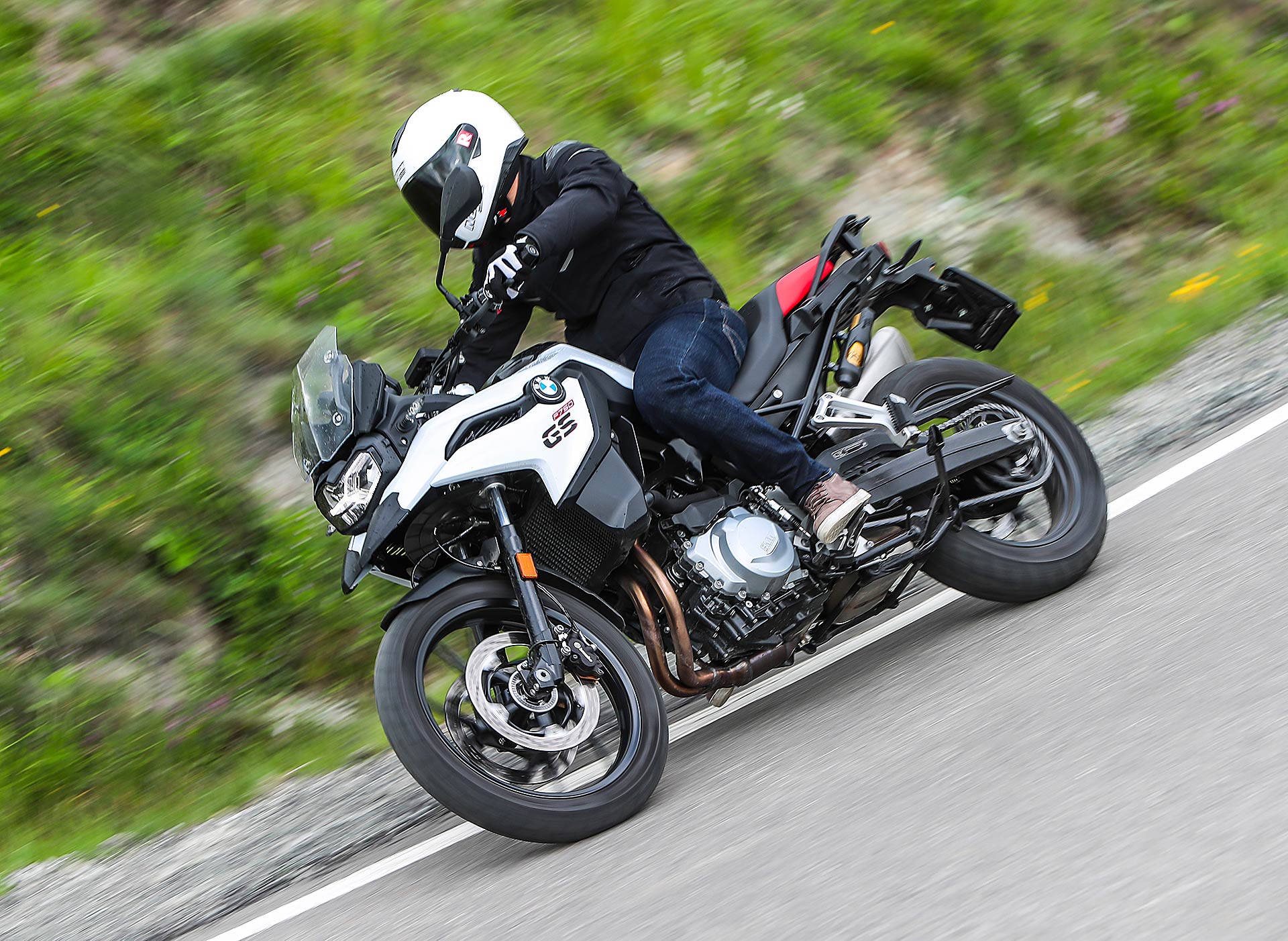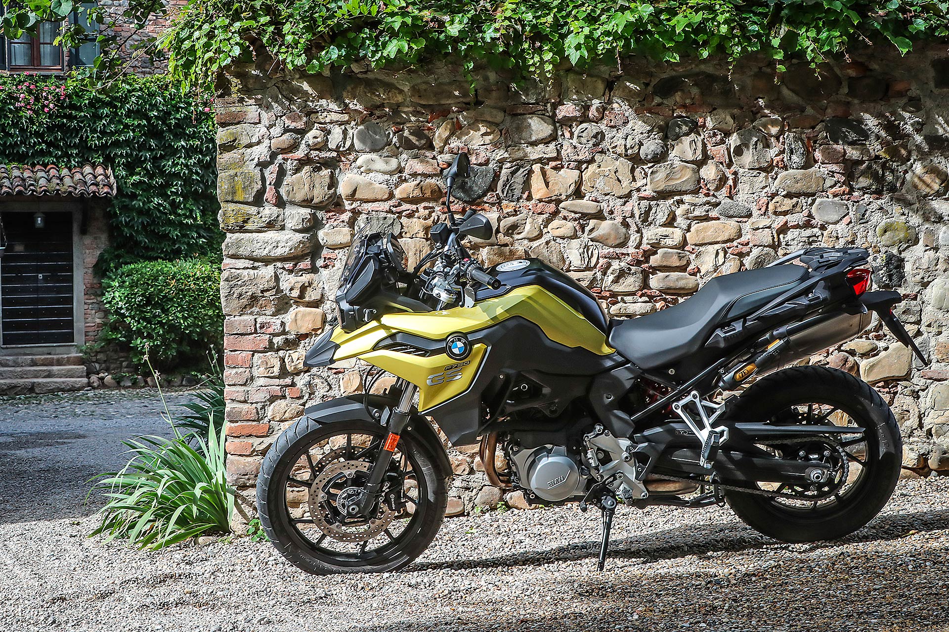 Tornando al presente, nei primi mesi di quest’anno ho avuto la fortuna di testare per ben due giorni la F 850 GS nel sud della Spagna e vi invito a leggere qui la prova completa, tra scenari insospettabili nella zona di Malaga e Granada, in un’alternanza di fuoristrada e percorsi asfaltati da fare invidia all’Arizona e il Colorado. Quale migliore occasione per conoscere bene pregi e difetti della nuova famiglia F GS; mancava all’appello la sorellina ed eccoci qui oggi per raccontarla nel dettaglio partendo da un primo dato fondamentale: il prezzo d’acquisto chiavi in mano di 9.950 euro.Tutto più sempliceHa la sella alla giusta altezza per accogliere motociclisti di tutte le taglie, che significa poco sforzo per far passare la gamba nello scavalco dall’altra parte e l’appoggio di entrambi i piedi a terra e garantisce una posizione di guida raccolta. In BMW hanno badato alla sostanza equipaggiandola con sospensioni semplici ma efficaci come la forcella tradizionale, da 41 mm di diametro senza regolazioni, che rispetto alla sorella 850 è più sostenuta e meno soggetta a evidenti trasferimenti di carico in accelerazione e frenata. Ha il monoammortizzatore regolabile nel precarico – optional il dynamic ESA – e vi consigliamo anche viaggiando soli di scegliere sempre l’opzione con bagaglio al seguito, soluzione che conferisce maggior rigore nelle curve veloci e nei cambi di direzione. Anche la ruota anteriore con diametro da 19 pollici contro i 21” della 850 permette una guida più rotonda e stabile; rapida nel risalire dalle buone inclinazioni che si raggiungono facilmente in curva.Motore giusto