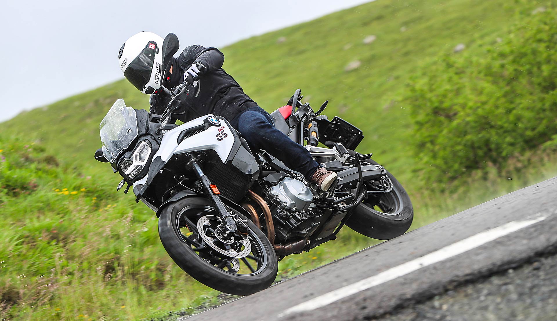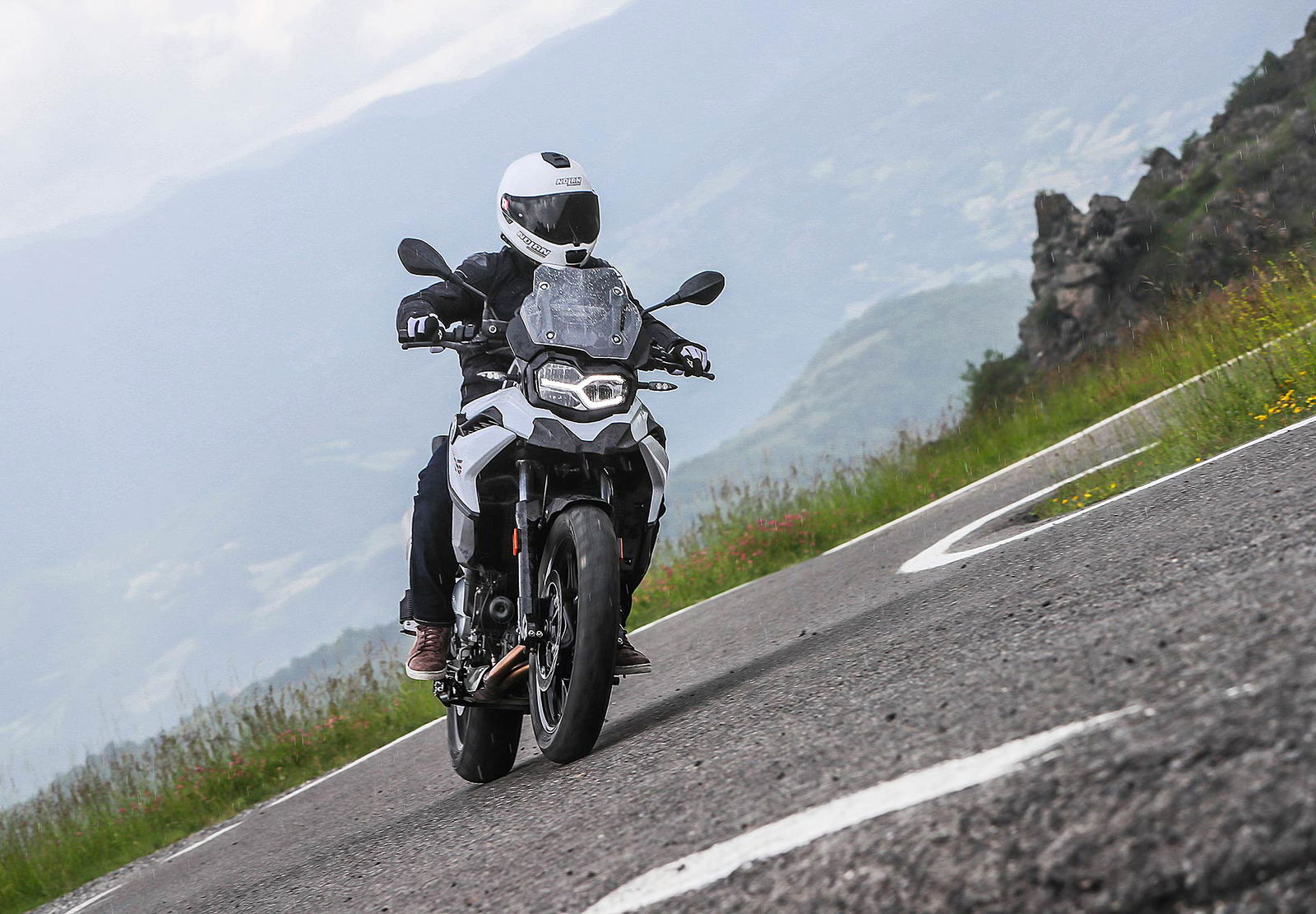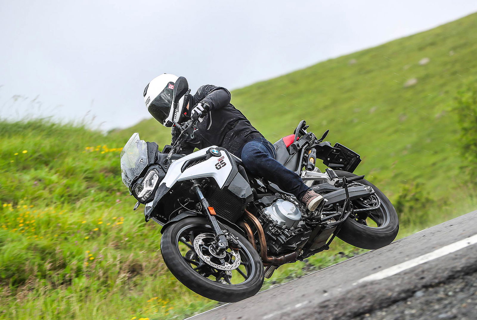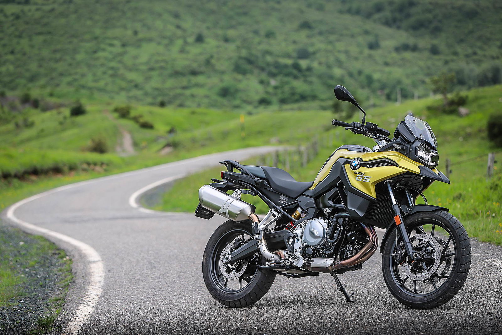 Tornando al presente, nei primi mesi di quest’anno ho avuto la fortuna di testare per ben due giorni la F 850 GS nel sud della Spagna e vi invito a leggere qui la prova completa, tra scenari insospettabili nella zona di Malaga e Granada, in un’alternanza di fuoristrada e percorsi asfaltati da fare invidia all’Arizona e il Colorado. Quale migliore occasione per conoscere bene pregi e difetti della nuova famiglia F GS; mancava all’appello la sorellina ed eccoci qui oggi per raccontarla nel dettaglio partendo da un primo dato fondamentale: il prezzo d’acquisto chiavi in mano di 9.950 euro.Tutto più sempliceHa la sella alla giusta altezza per accogliere motociclisti di tutte le taglie, che significa poco sforzo per far passare la gamba nello scavalco dall’altra parte e l’appoggio di entrambi i piedi a terra e garantisce una posizione di guida raccolta. In BMW hanno badato alla sostanza equipaggiandola con sospensioni semplici ma efficaci come la forcella tradizionale, da 41 mm di diametro senza regolazioni, che rispetto alla sorella 850 è più sostenuta e meno soggetta a evidenti trasferimenti di carico in accelerazione e frenata. Ha il monoammortizzatore regolabile nel precarico – optional il dynamic ESA – e vi consigliamo anche viaggiando soli di scegliere sempre l’opzione con bagaglio al seguito, soluzione che conferisce maggior rigore nelle curve veloci e nei cambi di direzione. Anche la ruota anteriore con diametro da 19 pollici contro i 21” della 850 permette una guida più rotonda e stabile; rapida nel risalire dalle buone inclinazioni che si raggiungono facilmente in curva.Motore giusto
