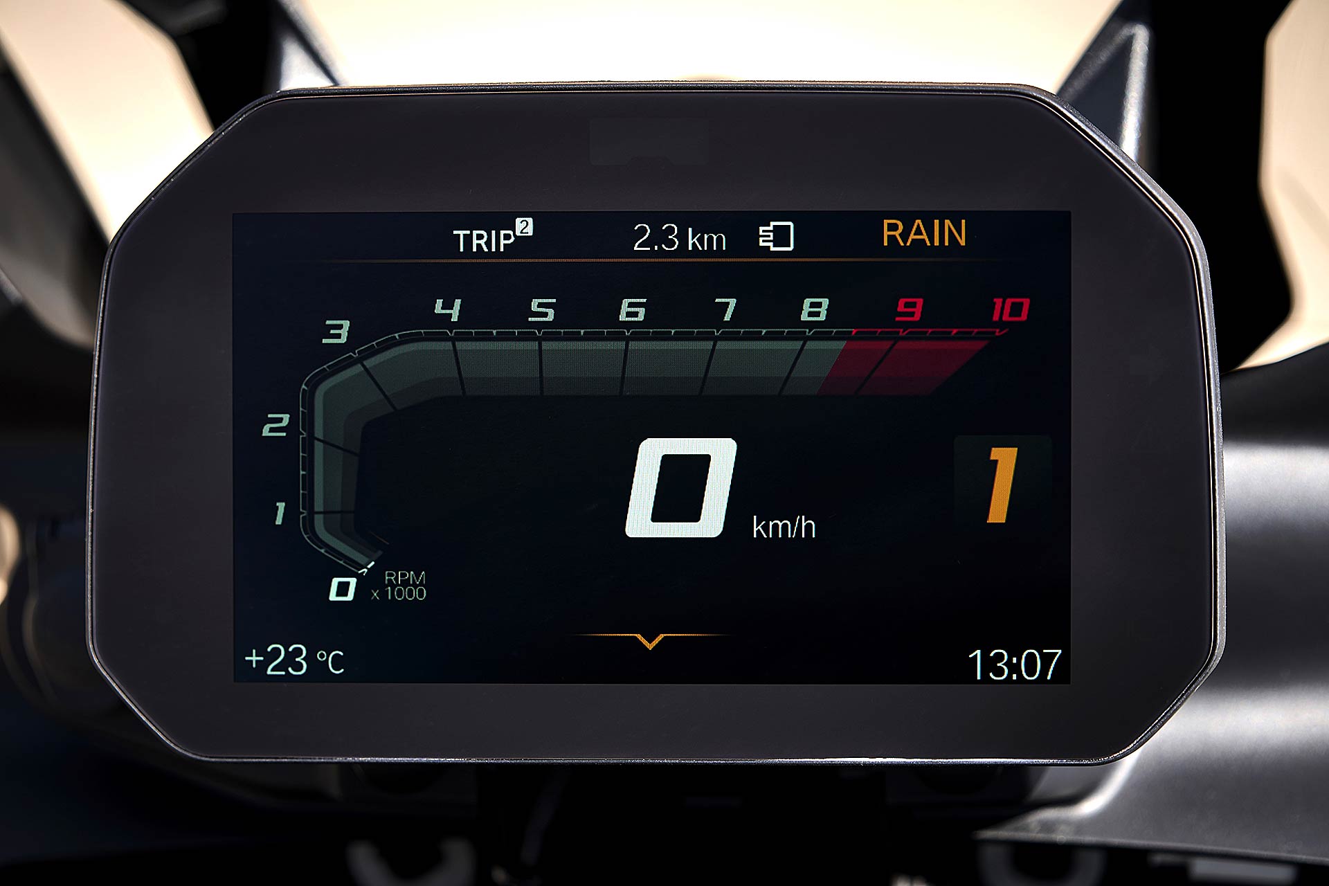 Un’annata così piovosa non la ricordavo da tempo e anche in occasione del test uno scroscio d’acqua non si è fatto attendere. L’alternanza di asfalto asciutto e bagnato contribuisce a capire quale sia il comportamento dinamico, la modulabilità dei freni, il grip degli pneumatici e il controllo di trazione ASC. Le informazioni che arrivano a chi guida sono sempre chiare, l’avantreno assorbe dignitosamente le variazioni di superficie e va nella direzione pensata. La sospensione posteriore trasmette a terra grip e cavalli anche quando la pioggia si fa intensa. L’impianto frenante con doppio disco anteriore da 305 mm si gestisce con un singolo dito ed entrambe le leve al manubrio sono regolabili nella distanza e pratiche anche per chi ha mani piccole.Connessi h24