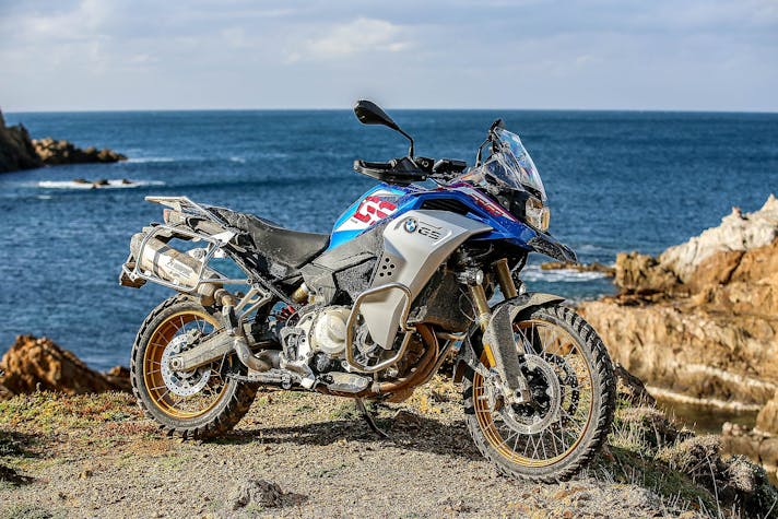 Nonostante la mole, la Adventure affronta a testa alta i percorsi fuoristradistici. L’esperienza insegna di infilarsi su strade strerrate a serbatoio pieno, eppure nonostante i 23 litri il bilanciamento dei pesi pare ben azzeccato. La forcella reagisce alle continue buche che incontriamo nei primi chilometri del test senza affondare e senza andare in crisi: non perde ritmo, assorbe e si distende rapidamente riportando la GS 850 ad un buon assetto. Anche la frenata in condizioni di bassa aderenza è soddisfacente, la risposta dei dischi e delle pinze non è mai aggressiva e l’ABS in configurazione Enduro Pro non entra mai in gioco lasciando però alla ruota posteriore la libertà di bloccaggio.