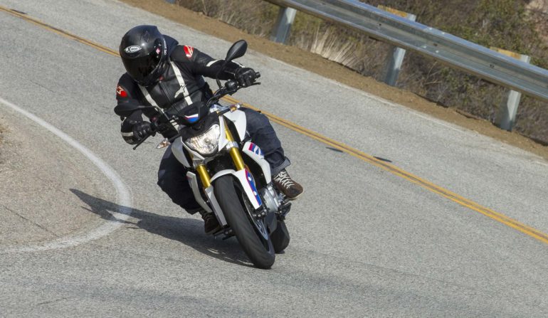 Con solo 158,5 kg in ordine di marcia è ovvio pensare che la G 310 R sia una moto agile, e infatti lo è. Tuttavia la distribuzione dei pesi azzeccatissima la rende anche molto “presente” di sterzo, stabile e rassicurante sul veloce. È una di quelle moto “mind free”, che si lascia guidare in modo totalmente disimpegnato ma che quando arrivano le curve non si tira indietro. Insomma non si limita a portarvi dal punto A al punto B come una utilitaria ma vi porta con carattere e, se capita, facendovi divertire. Il percorso del test (gestito da un apripista ex CHIPS dal passo molto svelto, inusuale per questi posti) si snodava sulle bellissime strade collinari dei dintorni di Los Angeles, strade ben note agli smanettoni locali. Tra queste la famigerata Mulholland road, alias “the snake”, la strada più famosa di Youtube (provate a cercarla e capirete il perché). Centinaia di curve in cui la G 310 R si è dimostrata efficace e divertente. E se dopo tante ore di guida e un pieno di benzina “bruciato” hai ancora voglia di guidare, vuol dire che il progetto è riuscito bene. Una volta tanto è stato piacevole avere a che fare con una moto che si lascia gestire facilmente anche a motore spento. Facile da spostare, da manovrare e da parcheggiare. Sta a noi capire che in molti casi un prodotto come questo può essere adeguato alle nostre esigenze, non solo a quelle dei Paesi emergenti. Essere leggeri e compatti non è poi così male. Anzi.