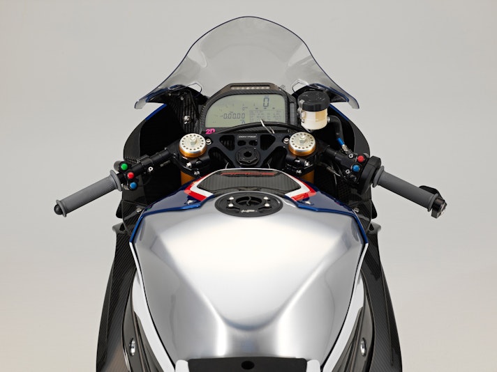 Proprio da queste due categorie arriva molta della componentistica utilizzata dalla HP4 Race, a partire dalle sospensioni Öhlins. La forcella è una sofisticata FGR300 (in listino a 12.800 euro!!), mentre il mono è il TTX 36 GP, che sfrutta la stessa idraulica utilizzata in MotoGP. Racing è anche l’impianto frenante, con all’anteriore pinze Brembo monoblocco in alluminio GP4 PR (le stesse usate in MotoGP sul bagnato quando si utilizzano dischi in acciaio, montate a mano nel reparto corse Brembo) con di pistoncini in titanio che lavorano dischi in acciaio Racing T-Type da 320 mm di diametro e 6,75 di spessore.MOTORE DA 215 CVIl motore ha a sua volta una configurazione racing a metà strada tra i set up 6.2 e 7.2 dei campionati Endurance e Superbike. In pratica la parte “bassa” (albero motore, pistoni, bielle) è quella della superbike (sostanzialmente vicina alla serie ma con componenti accuratamente selezionati ), mentre la parte alta (valvole, molle, alberi a camme) è quella della moto con specifiche Endurance. La potenza massima dichiarata è di 215 cv a 13.900 giri con un picco di coppia di 120 Nm a 10.000 giri, mentre il limitatore è tarato sui 14.500 giri, 300 in più rispetto alla moto di serie. A fargli da spalla c’è un cambio a sei marce con spaziatura ravvicinata e un diverso quickshifter, mentre per quanto riguarda la trasmissione finale, la moto viene consegnata con un set di pignoni e corone per adeguare i rapporti alle diverse piste. Per gestire al meglio tutta l’esuberanza del motore, la moto è dotata di un’elettronica racing di ultima generazione. La centralina è, infatti, la stessa utilizzata in Superbike che porta il livello dei controllo al top. 4 MAPPATURE