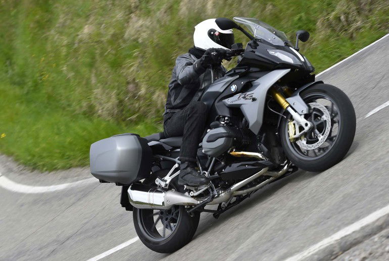 Comunque, tornando a lei, Miss RennSport: sono cose che capitano. Capita infatti di salire su una moto e sentirsi subito naturalmente in confidenza, sotto tutti i punti di vista, come se fosse già da tempo una moto personale. E’ il caso della BMW RS: sali e sei a casa: soprattutto se chi guida ha un’estrazione sportiveggiante, ma con il tempo ha cambiato leggermente le sue esigenze, diventate meno estreme. Alla fine quel manubrio in due pezzi ispira parecchio. Sorge però spontaneo un dubbio… non è che il manubrio sportivo stancherà le braccia, visto che siamo a cavallo di una moto che si propone (anche e soprattutto) come turistica? La risposta arriva quasi subito, quando ci si rende conto che, nonostante l’angolatura cattivella del ponte di comando della moto, il dislivello mantenuto con piano sella e pedane, risulta ottimale: sia per assumere una postura bella grintosa, sia per poi passare a una andatura turistica, senza per questo arrivare con polsi e avambracci che chiedono pietà. Meglio di così…Alla fine dei 150 chilometri, con un paio di soste (oltre agli shooting fotografici), lungo i quali il rettilineo più lungo trovato è stato di 50 metri, la RS ha divorato centinaia di curve senza affaticare più di tanto il sottoscritto. Solo gli utenti assuefatti al manubrio alto e largo stile crossover potrebbero risentire di un angolo manubrio un pochino chiuso, ma anche in questo caso è più che altro questione di farci l’abitudine. In tal caso, comunque, la piastra della RS è predisposta per montare il manubrio della anche R1200R… Così sono contenti tutti.
