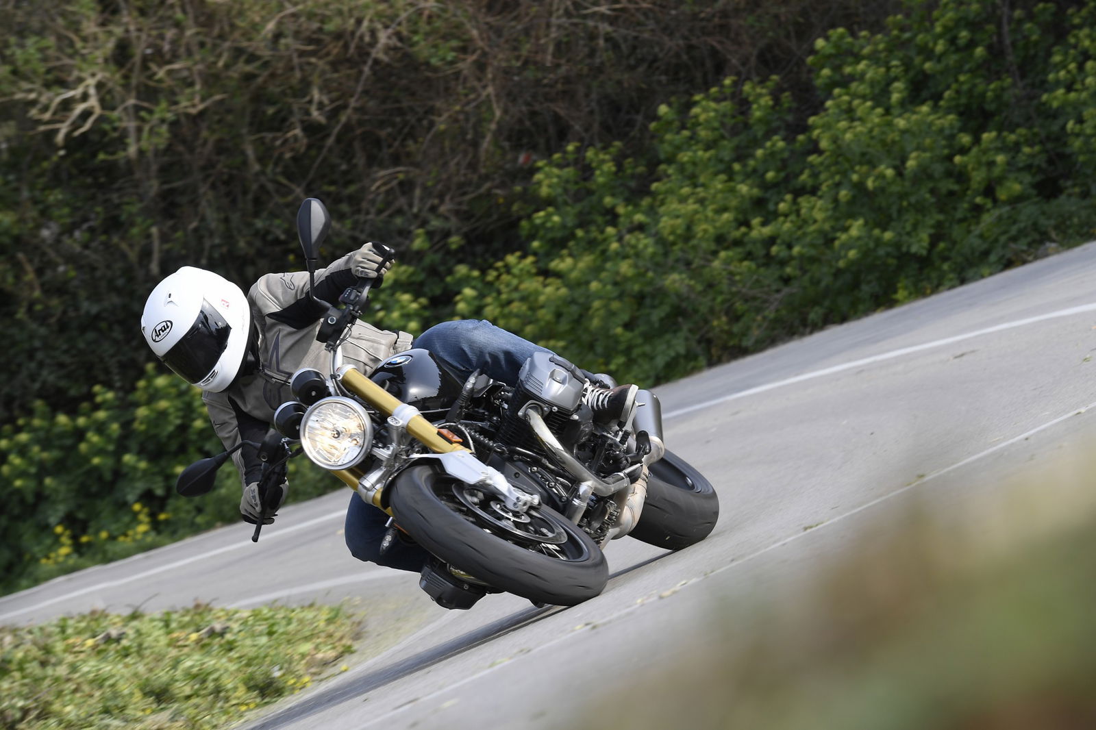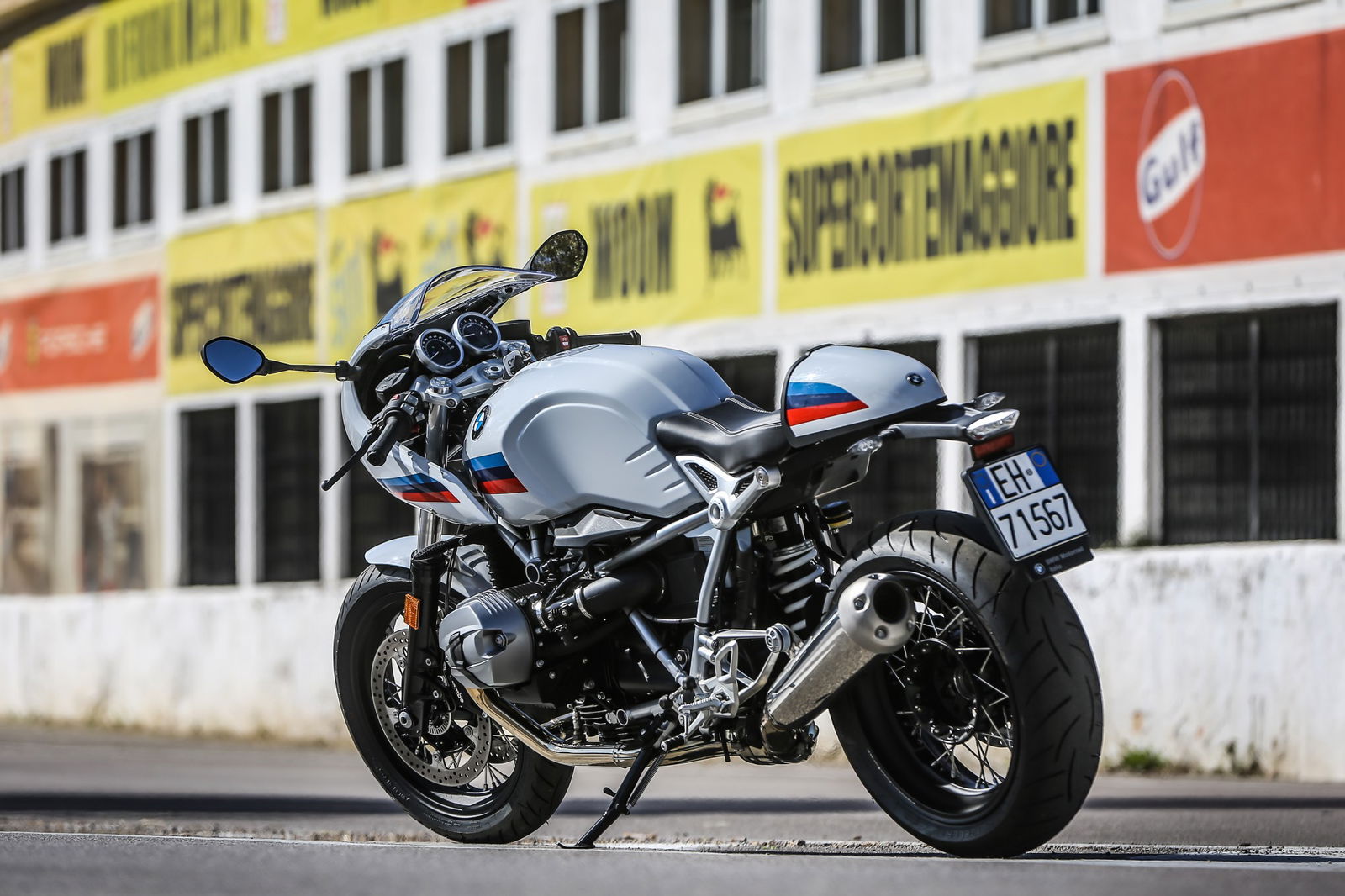 Non è una moto facile e, in tutta onestà, nemmeno adatta ad un pubblico già proiettato oltre la seconda decade degli “anta”. La posizione di guida non fa sconti alla voce comfort e vista l’attitudine sportiva nemmeno al viaggio. Le pedane sono arretrate e i mezzi manubri spioventi. Manovrare la Racer pretende malizia e forza, guidarla vuole polsi d’acciaio e schiena autorizzata dall’osteopata. Diciamocela tutta è una moto scomoda per il passeggio, con la quale per divertirsi bisogna andare veloci… sempre! Raccolti dietro il cupolino ci si diverte e non poco a guidare di buon passo: i curvoni veloci con gomiti larghi e ginocchio aperto all’interno della curva sono il suo pane. Guai a snaturare la sua indole costringendola ad un passo turistico. La Racer non nasce per questo.Avantreno solidoPur adottando forcella tradizionale da 43 mm della Pure la Racer ha un carattere molto diverso. Il rigore offerto dell’anteriore è sorprendente. Facendo leva sui mezzi manubri la ruota anteriore disegna traiettorie precise e non si muove; ci si sente liberi di entrare decisi in curva, brandeggiarla a destra e sinistra e soprattutto aprire con decisione il gas sapendo che non ci saranno sorprese.Vecchia scuolaIn sella alla Racer si ha davvero la sensazione di fare un salto indietro nel tempo consapevoli di avere a disposizione freni modulabili e potenti, l’ASC – Automatic Stability Control – offerto come optional che pur non essendo un vero e proprio traction control previene le perdite di aderenza della ruota posteriore.R nineT Dove tutto ha avuto inizio. Anno 2014: BMW presenta la capostipite della famiglia Heritage. Dopo tre anni cambia radicalmente nella ciclistica: avancorsa e interasse maggiorati, cannotto di sterzo più aperto. Così la R nineT diventa più confortevole, meno nervosa nella guida e stabile senza perdere quella giusta dose di sportività del mondo naked. La forcella rovesciata regolabile e l’impianto frenante con pinze ad attacco radiale enfatizzano le sue caratteristiche di retrò naked dall’anima vivace.