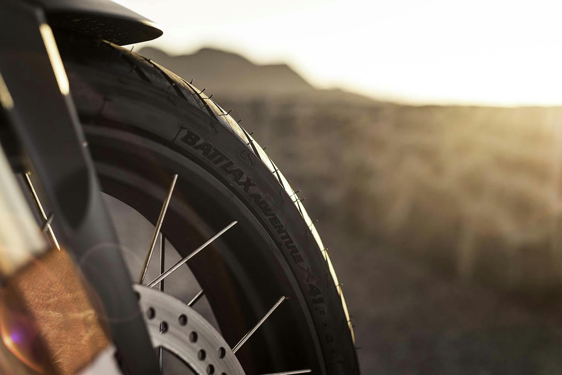 La terra finisce, ritorna l’asfalto. Nei primi chilometri è piuttosto levigato e caratterizzato da quei riflessi lucidi che tanto spaventano il motociclista. Con i Bridgestone Battlax Adventure A41 non c’è da preoccuparsi troppo: anche in queste condizioni (e con il 21” anteriore) il grip è sempre di ottimo livello. È una gomma che “parla” tanto al pilota, ancora di più quando si guida su asfalto, con il risultato che chi guida è sempre avvisato con largo anticipo di eventuali perdite di aderenza. Il grip è degno di nota: nonostante le bordate di coppia del V2 austriaco, il Traction Control interviene di rado e l’ABS è così disoccupato da andare a chiedere il reddito di cittadinanza. Dove l’A41 lascia un po’ perplessi è nei curvoni veloci affrontati ad elevati angoli di piega. In queste condizioni l’anteriore diventa vago e viene meno anche parte di quella capacità comunicativa. Ma stiamo andando veloci e abbiamo una ruota anteriore da 21 pollici.S come SuperOk, molliamo la R. Dopo la scritta Super Adventure ora compare una S. Significa ruote da 120/70-19” e 170/60-17” (sulla R 90/90-21” e 150/70-18”), quindi ben più adatte all’utilizzo stradale. Ed è tutto un altro andare: la stabilità dell’avantreno a centro curva (momento in cui si è solitamente più piegati) è quasi da moto sportiva, come pure il feeling offerto. La discesa in curva è lineare e omogenea, dall’inizio alla fine della piega, e pizzicando il freno anteriore in ingresso non si ha eccessivo effetto standup. Nei trasferimenti autostradali il Bridgestone Battlax Adventure A41 è anche piuttosto silenzioso, il che non guasta.Brava BridgestoneCompleto e soddisfacente in diversi settori, il Bridgestone Battlax Adventure A41 centra gli obiettivi dei progettisti, almeno sull’asciutto. Ora non rimane che metterlo alla prova a confronto con la diretta concorrenza.
