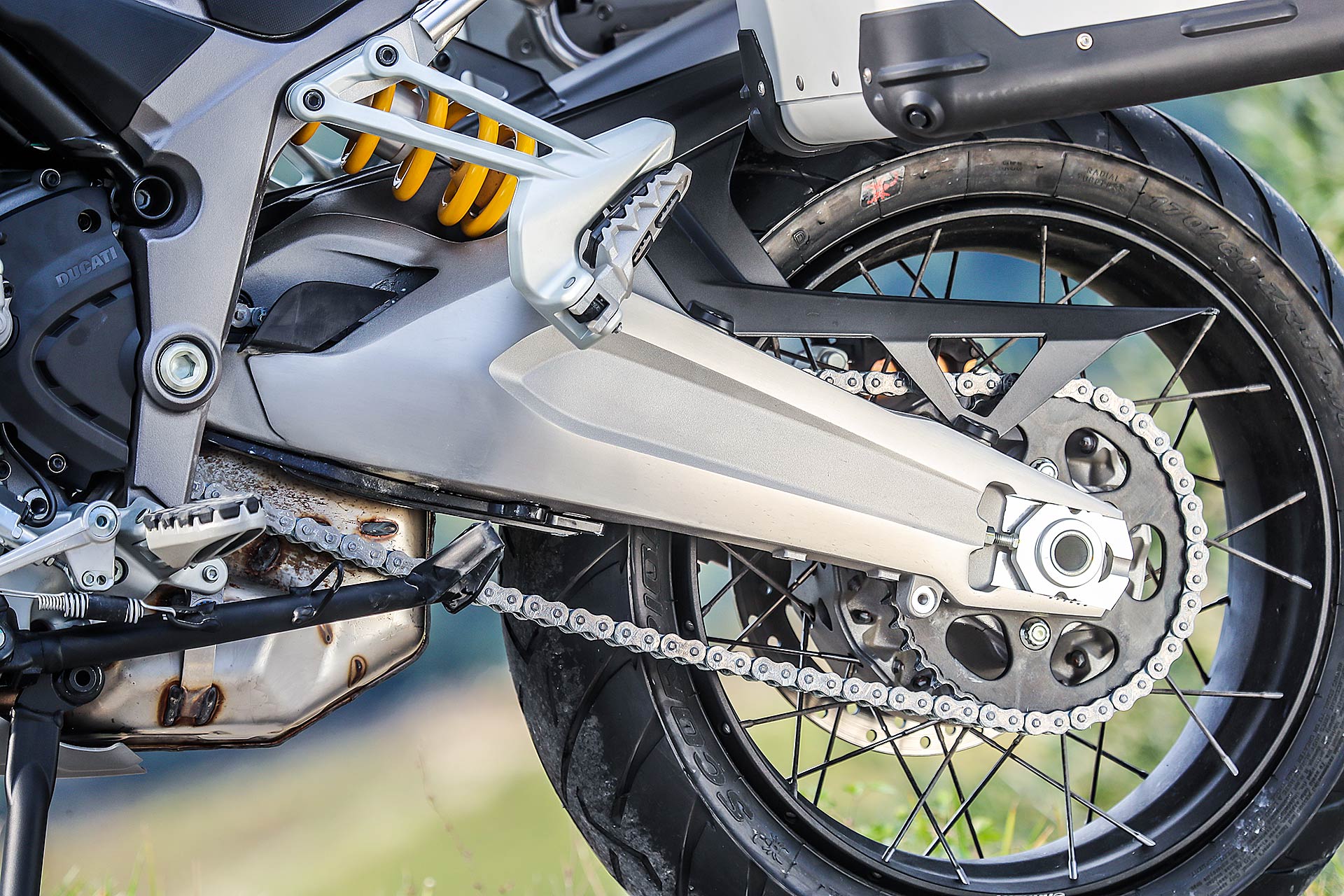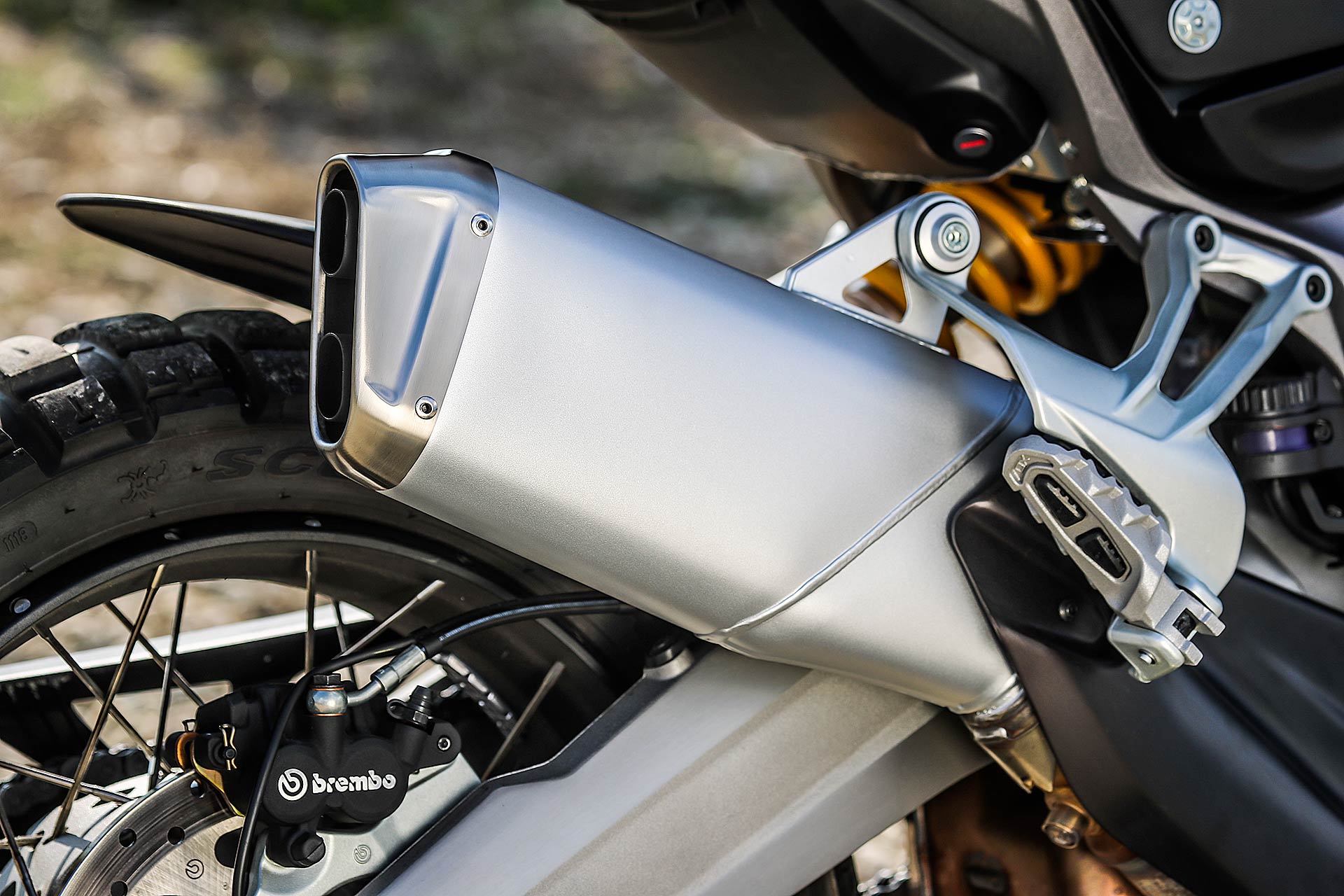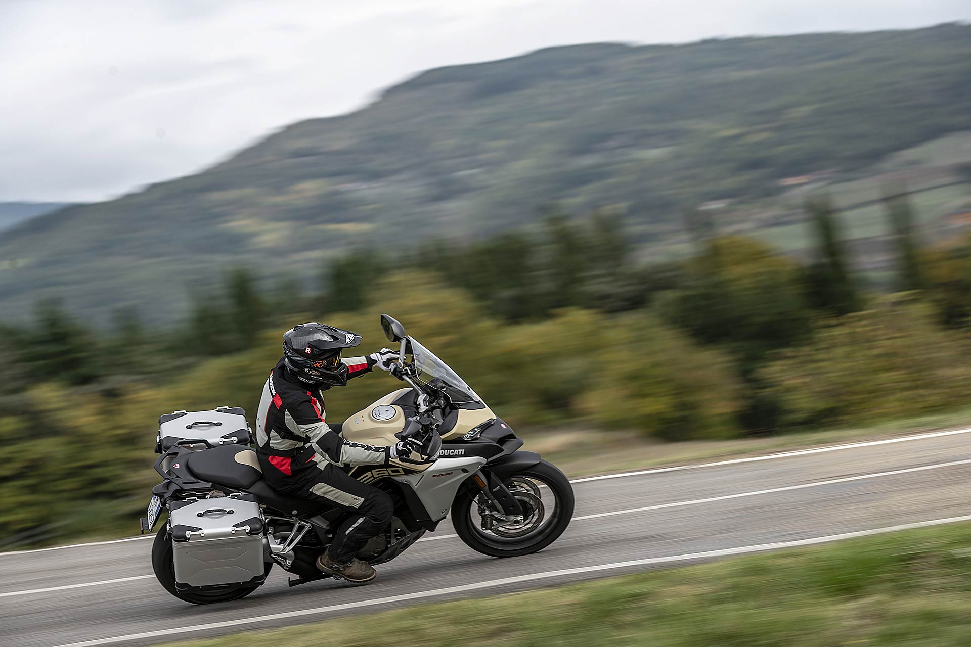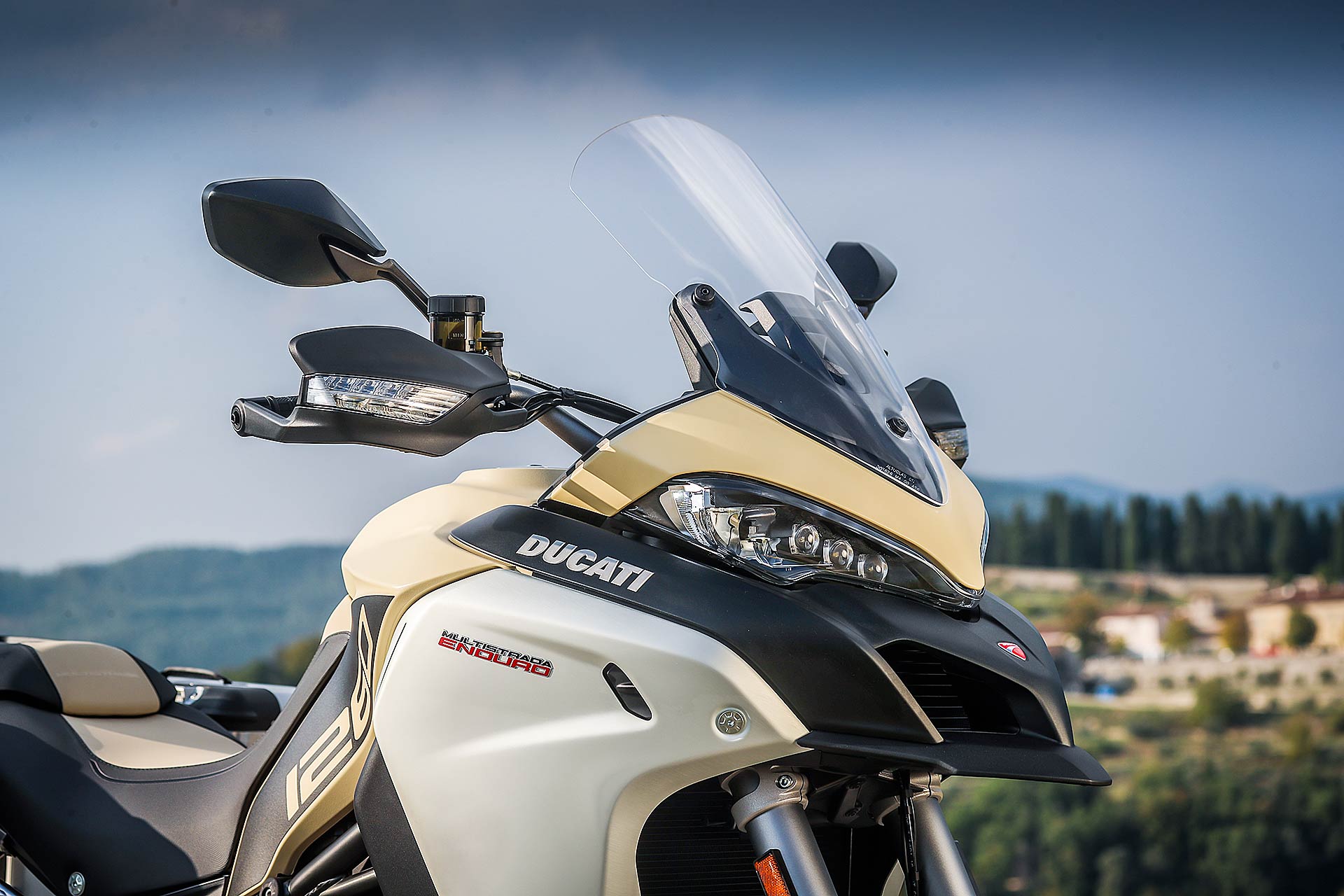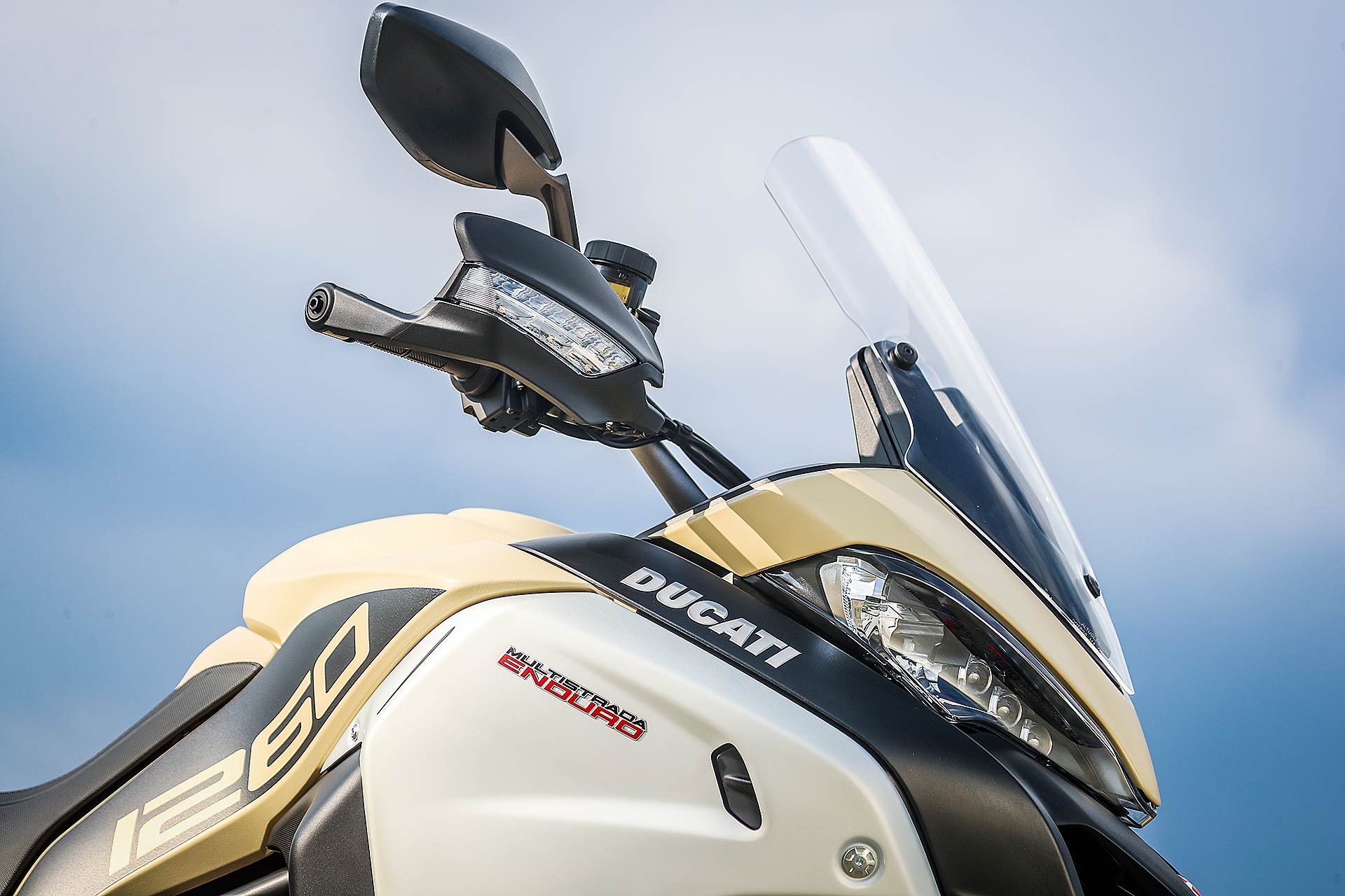 GRANDI DIMENSIONIMultistrada Enduro 1260 è una moto di grandi dimensioni che si confronta con nomi altisonanti come BMW R 1200 GS Adventure e KTM 1290 Super Adventure S: panzer a due ruote, in grado di mettere in soggezione il motociclista di taglia media. Pensarle a pieno carico con passeggero al seguito su una lenta e tortuosa strada di montagna fa venire qualche sudore, inevitabile anche se si pensa a come gestirle in manovra. Ma Ducati su questo ha lavorato e infatti rispetto al passato la Multistrada 1260 Enduro ha beneficiato di una riduzione della taglia. Centimetri in meno, sulle altezze e sulla posizione di guida, per renderci tutti più “confidenti” nelle normali condizioni che può incontrare un mototurista.GAMBE ROBUSTE E TECNOLOGICHELe sospensioni semi attive Skyhook della Sachs hanno una corsa di 185 mm, ridotta di 15 mm rispetto al passato, e anche la sella a 860 mm di altezza perde circa un centimetro. Per rendere correttamente bilanciata la posizione di guida il manubrio è stato abbassato di 30 mm per favorire la guida stradale senza penalizzare la guida in piedi nel fuoristrada. Insomma non è la stessa moto con un motore più grosso, perché lo sviluppo ha toccato molti punti.