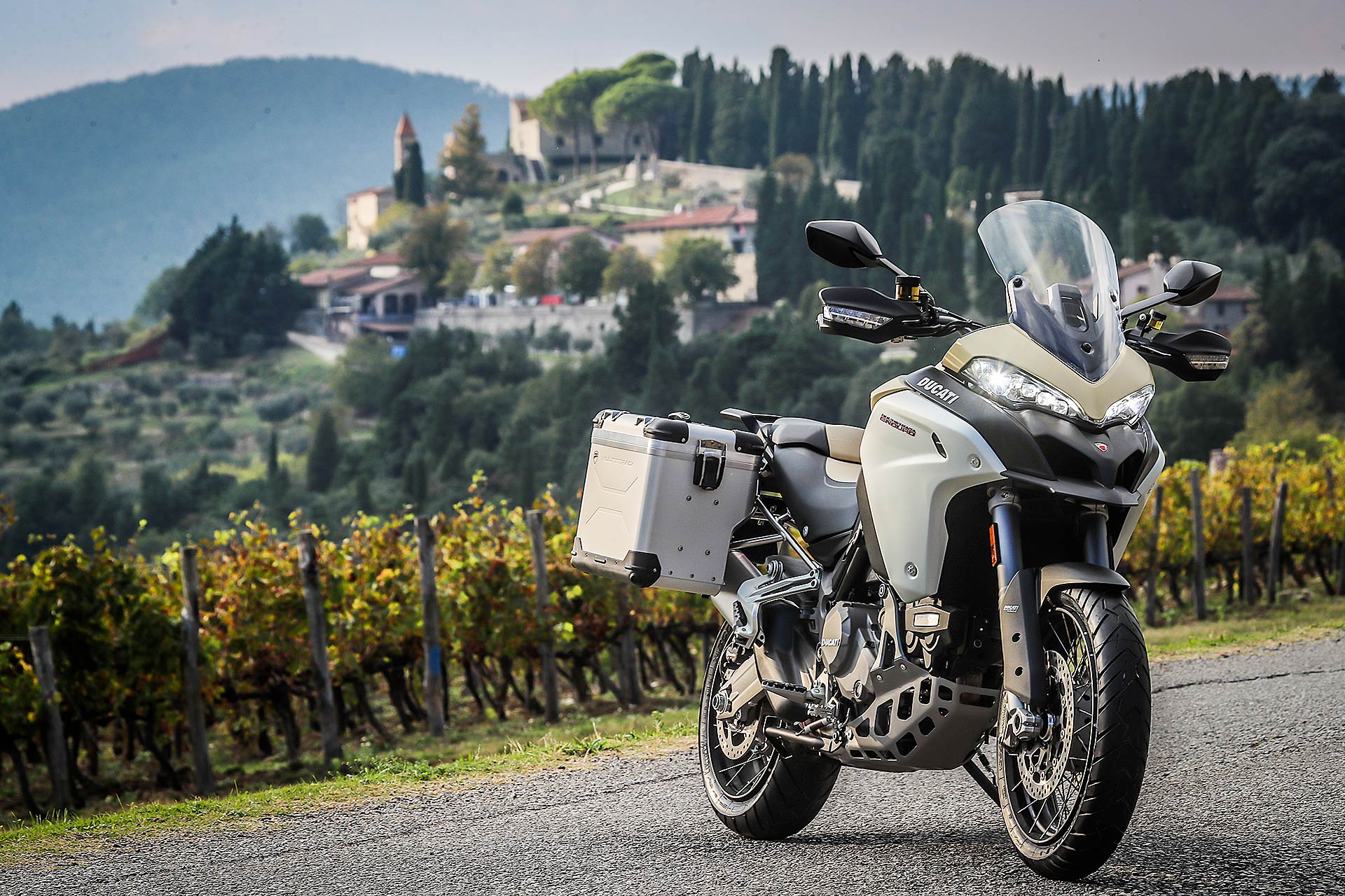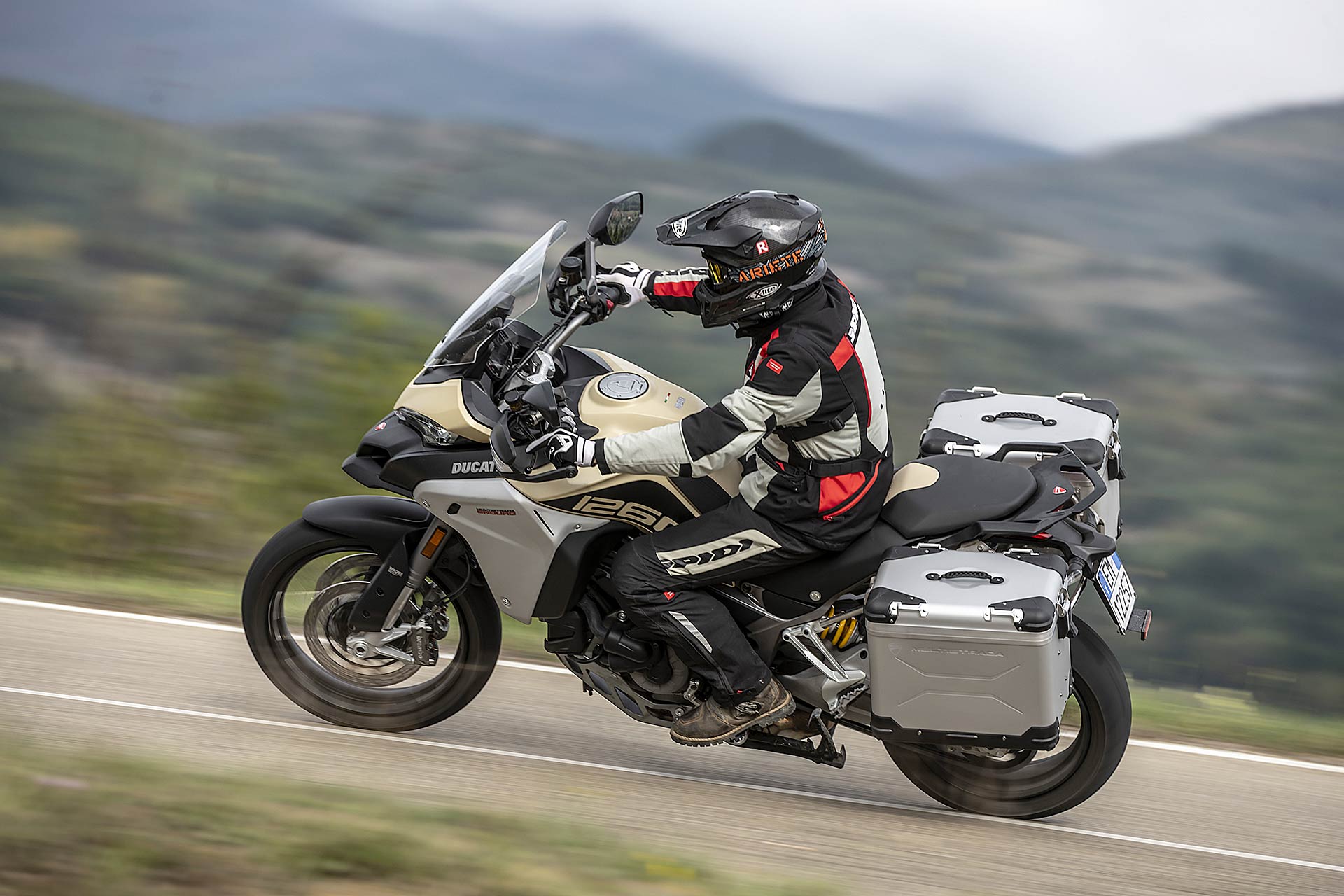 Multistrada Enduro 1260 va guidata con mano delicata, accarezzando il gas, sfiorando i freni – l’ABS enduro si disattiva dietro -, usando il corpo per bilanciare salite e discese e ricordandosi sempre che il peso è un compagno con cui si condivide sempre l’avventura e che non viene in soccorso nelle difficoltà che si possono incontrare lontano dalle strade battute.158 CAVALLI A DISPOSIZIONE https://youtu.be/c9UHn8RCpgA Smessi i panni del globetrotter e spolverato il completo da moto, partiamo con il motore a potenza piena configurato in Touring, che rilascia cavalli e chilogrammetri di coppia in modo meno aggressivo rispetto a Sport. La ruota anteriore da 19 pollici e il comportamento della forcella sono gli elementi che ho maggiormente gradito. La Multistrada Enduro 1260 ha una dinamica sorprendente e che preferisco rispetto alla sorella con ruota anteriore da 17 pollici.