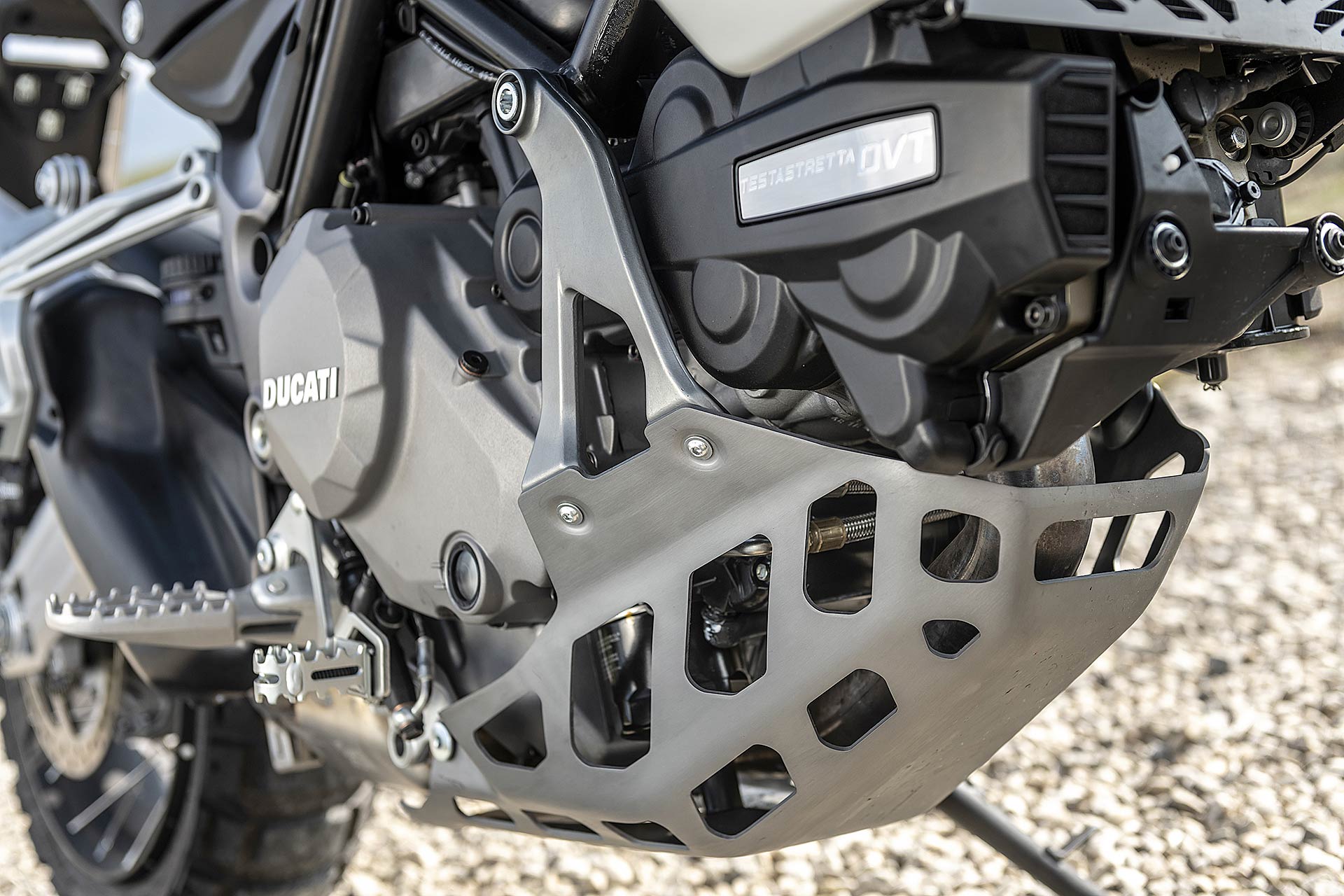 Ducati Multistrada Enduro 1260 è la terza in ordine di tempo ad acquisire la sigla numerica 1260. Al debutto su X-Diavel, atterrato lo scorso inverno sulla Multistrada 1260, il bicilindrico Testastretta DVT da 1262 cc è ora pronto a guadagnarsi un posto di riguardo nel mondo delle globetrotter a due ruote. L’iniezione di tecnologia rende l’ultima versione della maxi-enduro meno spigolosa nel carattere, più facile da guidare e intuitiva quando si devono gestire ben 158 cavalli.NON E’ SOLO UNA QUESTIONE DI CORSAIl bicilindrico di 1.262 cc da 158 cavalli, lo stesso della versione stradale con ruote da 17 pollici che abbiamo provato anche in occasione del WDW 2018, è equipaggiato dei diversi Riding Mode studiati anche pensando all’uso fuoristrada. Nuovi Ride by Wire e DQS, Ducati Quick Shift attivo sia nell’inserimento sia in scalata. Le novità principali riguardano la cilindrata maggiorata grazie all’aumento della corsa di 3,6 millimetri e il pacchetto elettronico, oltre che una diversa taratura del sistema DVT: accorgimenti che rendono il bicilindrico bolognese completo e sfruttabile in ogni condizione di guida, visto che si traducono in una disponibilità dell’85% della coppia già a 3.500 giri/min.
