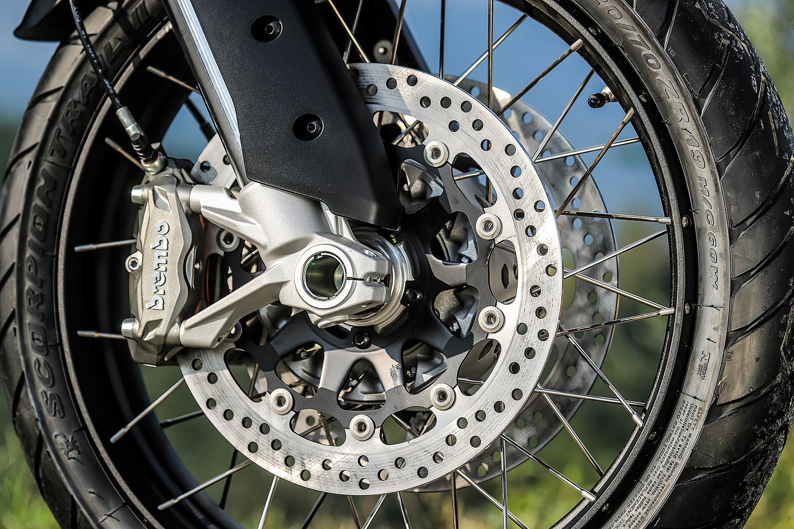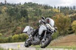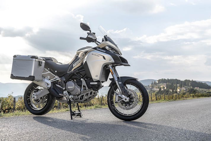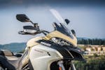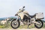 CICLISTICA EVOLUTAConfermato il telaio a traliccio in tubi d’acciaio che abbraccia il motore; l’angolo di sterzo non cambia ma è aumentata l’avancorsa di 1 mm a quota 112 mm, per rendere la Multistrada Enduro 1260 più stabile sul veloce e più fluida nella guida. Il forcellone è più leggero di 500 grammi; confermato lo schema classico delle maxi enduro stradali con ruota anteriore da 19 pollici e posteriore da 17 pollici, pneumatici Pirelli Scorpion Trail 2; doppio disco anteriore da 320 mm con pinze radiali M4.32 della Brembo e disco posteriore da 265 mm.ELETTRONICA DI SERIE Le prestazioni viaggiano a braccetto con l’ormai indispensabile ABS Cornering Bosch, la luci anteriori (Cornering Lights) che seguono la strada, oltre agli indispensabili controlli di trazione, anti impennamento e il Vehicle Hold Control che facilita le partenze in salita. Una gamma di accessori imprescindibile su moto di questa categoria.