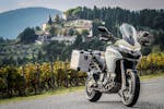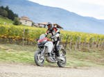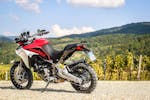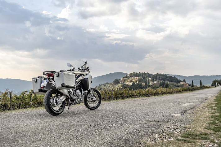 SPORTIVA NEL DNANon sembra di guidare una moto da turismo perché è facile da direzionare, da condurre dentro la curva anche con i freni in mano, grazie alla risposta dei due dischi anteriori da 320 con pinze radiali, mai aggressiva. In questo l’elettronica di serie riveste un ruolo fondamentale, che tiene conto delle esigenze del viaggiatore, desideroso di sicurezza anche nelle peggiori condizioni meteo: merito del traction control e del moderno Cornering ABS sviluppato con Bosch. Quando la grana grossa e asciutta delle strade lontane dalle metropoli permette di “liberare” tutta la potenza i due dispositivi sono molto efficaci.Oltre i 3.000 giri e fino a 4.500 giri il bicilindrico Testastretta DVT offre il migliore potenziale, accompagnato da qualche vibrazione diffusa su sella e manubrio, anche se oltre i 6.000 giri si scatena il carattere più puro e sportivo, supportato da un quick shifter veloce al punto giusto sia in salita che in scalata, che ricorda le carenate con i semi manubri di famiglia.