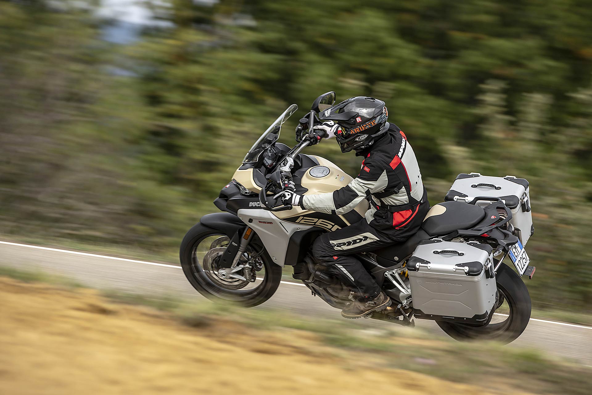 Multistrada Enduro 1260 va guidata con mano delicata, accarezzando il gas, sfiorando i freni – l’ABS enduro si disattiva dietro -, usando il corpo per bilanciare salite e discese e ricordandosi sempre che il peso è un compagno con cui si condivide sempre l’avventura e che non viene in soccorso nelle difficoltà che si possono incontrare lontano dalle strade battute.158 CAVALLI A DISPOSIZIONE https://youtu.be/c9UHn8RCpgA Smessi i panni del globetrotter e spolverato il completo da moto, partiamo con il motore a potenza piena configurato in Touring, che rilascia cavalli e chilogrammetri di coppia in modo meno aggressivo rispetto a Sport. La ruota anteriore da 19 pollici e il comportamento della forcella sono gli elementi che ho maggiormente gradito. La Multistrada Enduro 1260 ha una dinamica sorprendente e che preferisco rispetto alla sorella con ruota anteriore da 17 pollici.