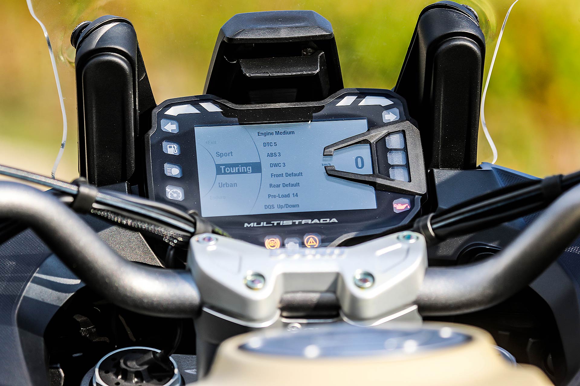 GRANDI DIMENSIONIMultistrada Enduro 1260 è una moto di grandi dimensioni che si confronta con nomi altisonanti come BMW R 1200 GS Adventure e KTM 1290 Super Adventure S: panzer a due ruote, in grado di mettere in soggezione il motociclista di taglia media. Pensarle a pieno carico con passeggero al seguito su una lenta e tortuosa strada di montagna fa venire qualche sudore, inevitabile anche se si pensa a come gestirle in manovra. Ma Ducati su questo ha lavorato e infatti rispetto al passato la Multistrada 1260 Enduro ha beneficiato di una riduzione della taglia. Centimetri in meno, sulle altezze e sulla posizione di guida, per renderci tutti più “confidenti” nelle normali condizioni che può incontrare un mototurista.GAMBE ROBUSTE E TECNOLOGICHELe sospensioni semi attive Skyhook della Sachs hanno una corsa di 185 mm, ridotta di 15 mm rispetto al passato, e anche la sella a 860 mm di altezza perde circa un centimetro. Per rendere correttamente bilanciata la posizione di guida il manubrio è stato abbassato di 30 mm per favorire la guida stradale senza penalizzare la guida in piedi nel fuoristrada. Insomma non è la stessa moto con un motore più grosso, perché lo sviluppo ha toccato molti punti.