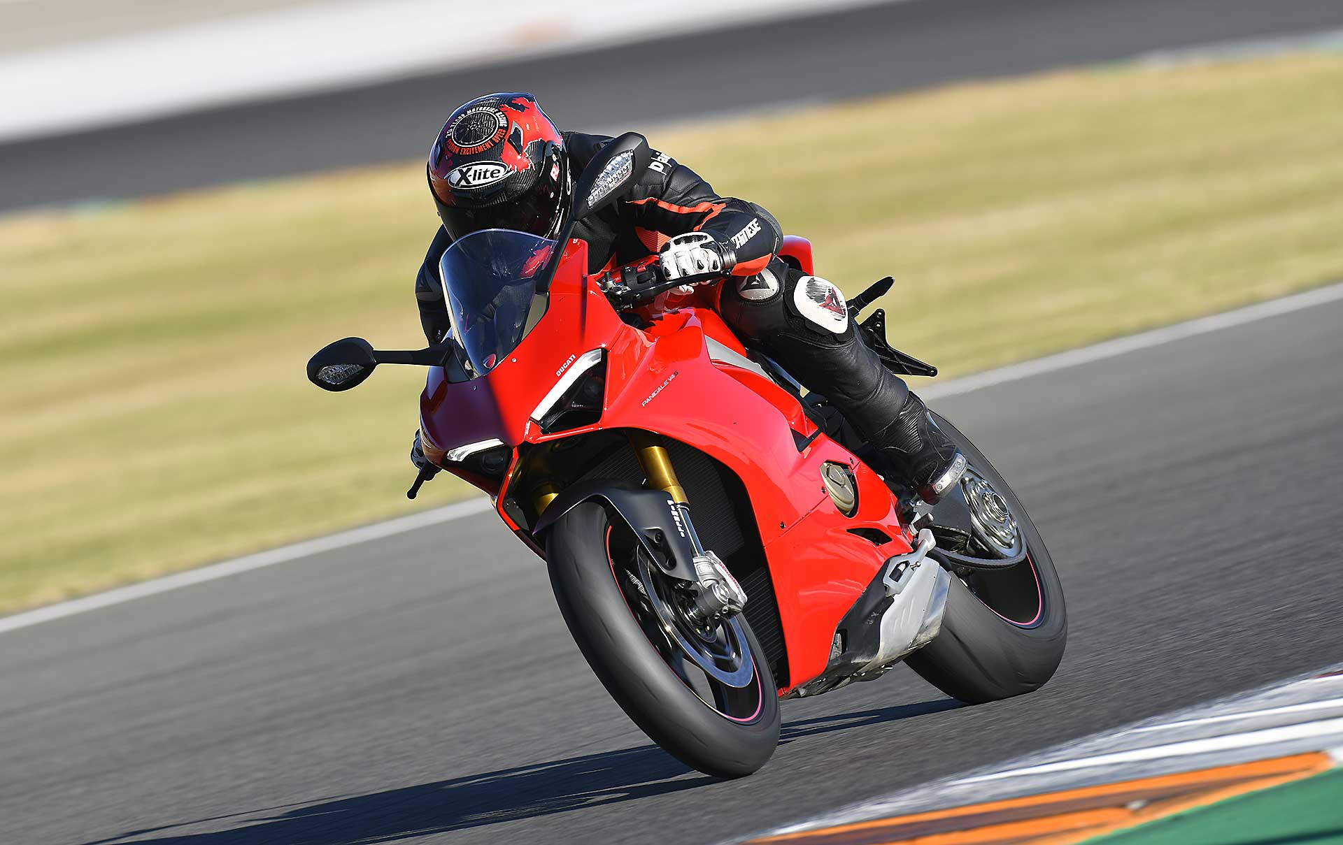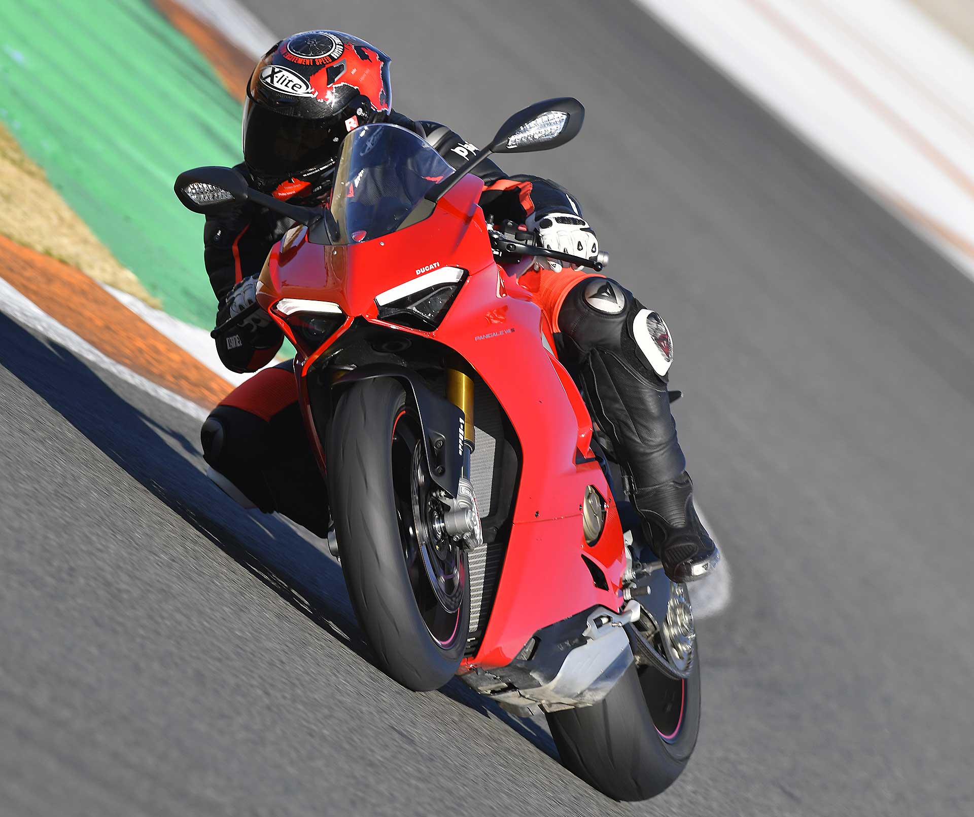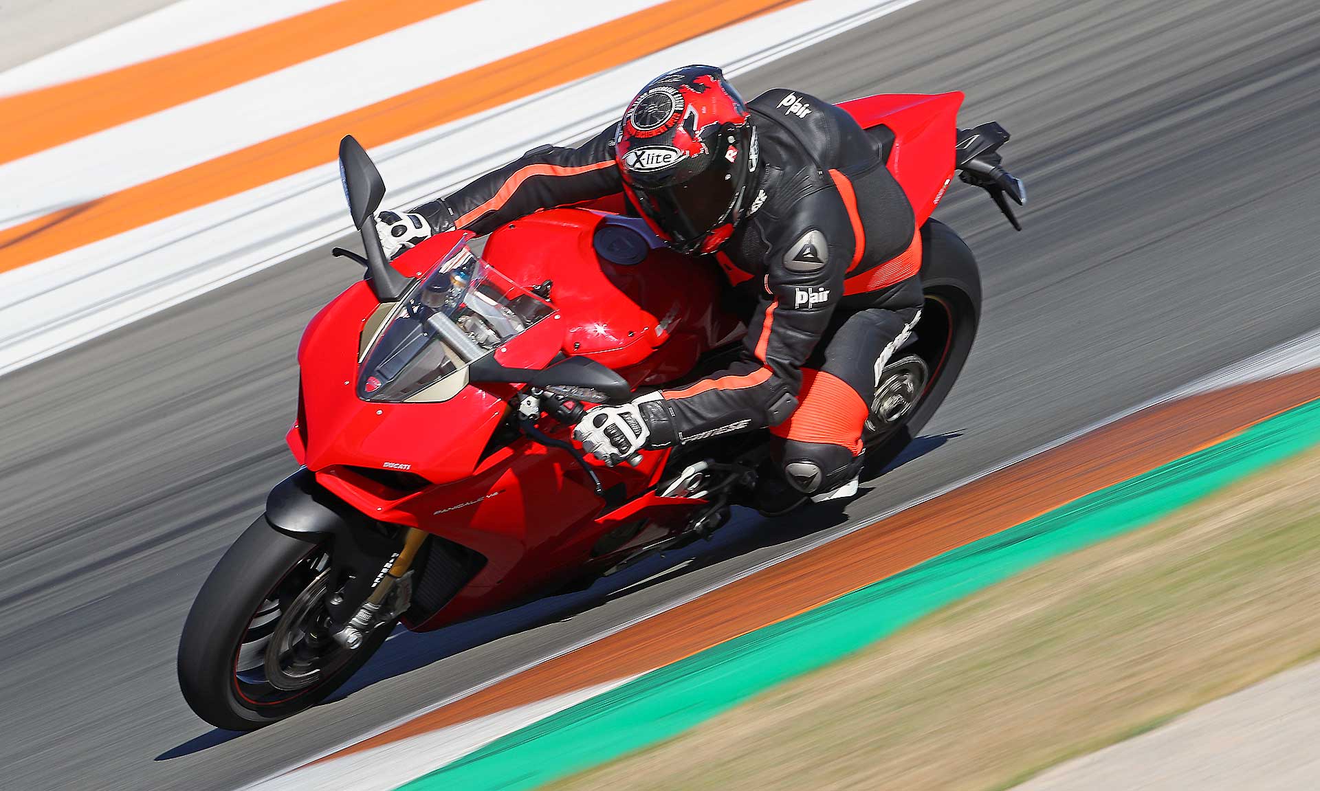 L’apporto dell’elettronica è ovviamente sempre importante, ma la mia sensazione guidando la V4 – cosa che non percepivo sulle ultime Ducati sportive – è che sia la base meccanica a essere “sana” e funzionale. Perché certe cose, come il feeling dall’avantreno in inserimento curva o l’esatta percezione di quel che accade nell’interfaccia pneumatico asfalto ogni volta che apri il gas, non sono ottenibili con l’elettronica. Elettronica che tuttavia in questo caso è a livello di eccellenza, anche parlando di sospensioni. Avevo già apprezzato le Ohlins EC 2.0 su Honda, qui trovo conferma di un funzionamento impeccabile e di una possibilità di taratura più facile e immediata. Detto questo, l’assetto con cui Ducati ci ha fatto trovare le moto per Valencia era praticamente perfetto. Ho “giocato” solo un po’ con il freno motore.ARIA NUOVAMi aspettavo che questa moto andasse forte, molto. Ed è così. Soprattutto ero curioso di verificare quanto facilmente potesse andare forte. Questo è il punto nodale, questo è quanto prometteva Ducati e questo è ciò che potrebbe convincere molti motociclisti che mai hanno pensato di guidare una bicilindrica a saltare sulla V4 bolognese. Costruire moto estreme, se vogliamo, è facile. Costruire moto estreme ma guidabili e che ti aiutino ad arrivare velocemente al limite anche se non sei Stoner, lo è un po’ meno. È questo il passo avanti più consistente che mi sento di attribuire alla Panigale V4. Pur con prestazioni superiori alla 1299, l’impegno mentale e fisico di guida è diminuito, vai più forte e fai meno fatica. Il che significa divertirsi di più e stancarsi di meno.CHIUDE ALLA GRANDEPartiamo con la mappatura Sport. La moto è amichevole, intuitiva. I vantaggi dell’albero motore controrotante sono evidenti dalle prime curve, curve in cui la Ducati si inserisce con una leggerezza e una immediatezza sconosciuta fino a oggi alle moto di Borgo Panigale. Freni-inserisci-giri la testa-punti la corda come con un mirino-chiudi la traiettoria. In questa fase della guida la Panigale V4 è semplicemente fantastica. La 1299 la dovevi “lavorare”, la V4 entra (quasi) da sola. A mio parere è eccezionale anche la fase in cui torni ad aprire il gas (e lo apri presto…), situazione in cui la gestione di quei primi, fondamentali gradi di rotazione del polso destro è davvero eccellente per precisione e risposta. Impressionante il modo in cui ti trovi a mungere la manopola a moto piegata. Inusuale la capacità di tenere la linea. Soprattutto se pensiamo che siamo al cospetto di 214 cv, che diventano 226 con lo scarico Akrapovic. Corroborante come in questo frangente si riesca a fare strada senza lottare con la moto.DNA DUCATI