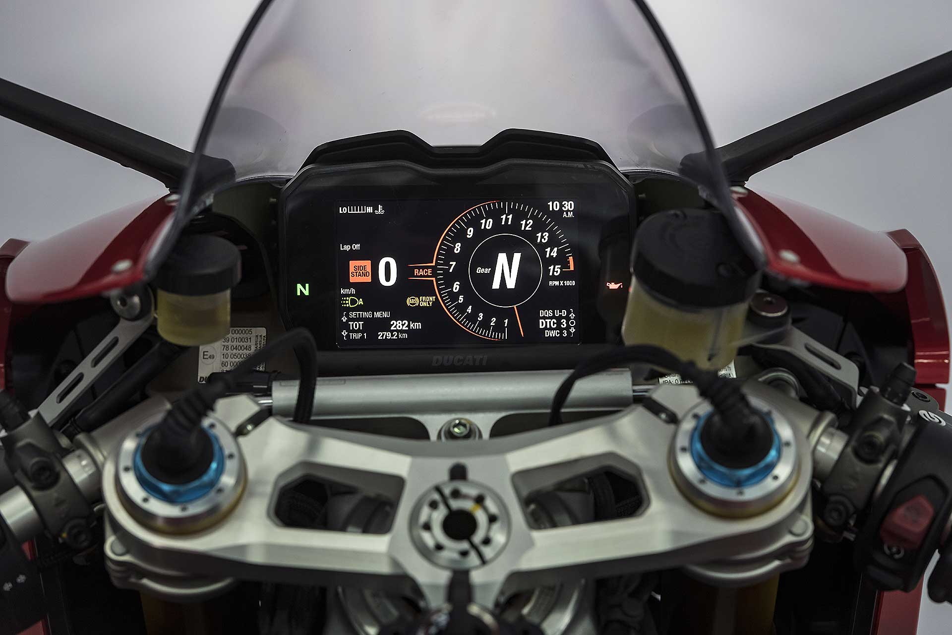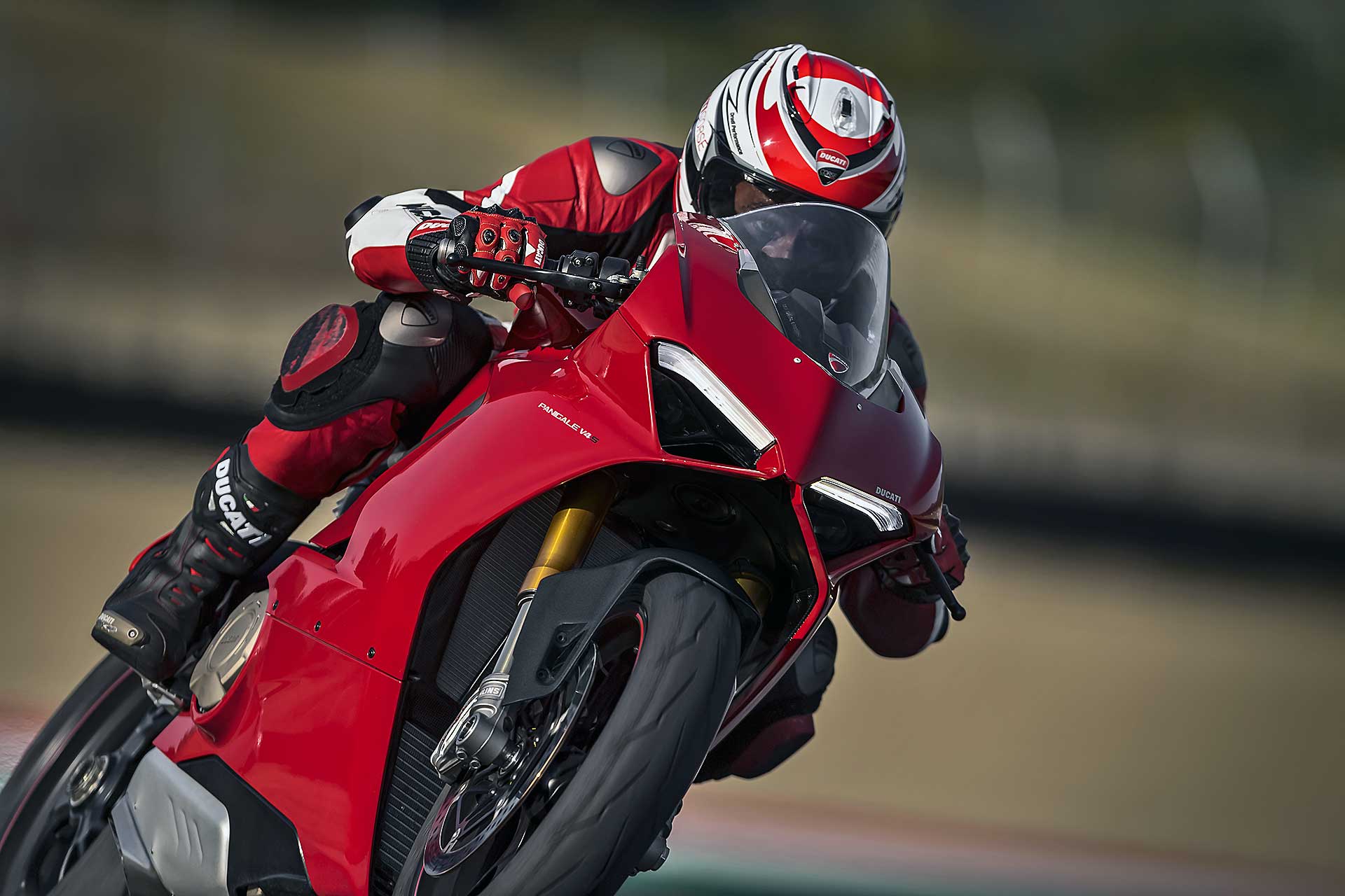 Una moto facile e senza carattere? Una “giapponese” vestita da Ducati? No, non è esatto. Intendiamoci, non è una moto che guida da sola, non fa tutto lei, la devi guidare e per limare il decimo devi saperci fare con moto che vanno così forte. Non si disperino i ducatisti più passionali, la Panigale resta una Ducati, il cui DNA emerge man mano che inizi a spingere. Alzando il ritmo, liberando i controlli, passando alla mappatura Race, le reazioni si incattiviscono e la risposta al gas diventa più secca, i cromosomi racing emergono. Di buono c’è che continui a guidare, non lotti con la moto, non ne sei in balia. Anche perché i controlli elettronici sono di altissimo livello: presenti e mai invasivi, senza “tagli”. La gestione di scivolata, imbardata e impennata è sempre estremamente “morbida”. Lasciandoli più liberi, ovviamente, il pilota ha più da lavorare, ma anche in questo caso tutto avviene con grande controllo da parte di chi guida. Mi piace meno invece il quick shifter in salita, molto lento il tempo di taglio il che in alcune situazioni infastidisce.MOTORE UN PO’ 2 E UN PO’ 4Il motore merita un capitolo a parte, perché è sicuramente un bellissimo esercizio di ingegneria applicata alla moto. Detto della ottima gestione del gas, è utile parlare del range utile, praticamente raddoppiato rispetto alla 1299. Se ai bassi è morbida e affabile, la Panigale V4 ai medi spinge e canta quasi come un bicilindrico, tanto che all’inizio cambiando “a orecchio” innestavo la marcia a 11.000 giri. Dimenticandomi, però, che c’è anche il resto, ossia l’allungo da 11.000 a 14.500 giri (!), dove il Desmosedici stradale ci ricorda che di cilindri, invece, ne ha quattro. La progressione di questo motore è assolutamente entusiasmante, il sound unico. Tira “sotto” con una fluidità sconosciuta alle Ducati fino ad oggi, da 7.500/8.000 la spinta è prorompente, a 10.500 arriva un altro impulso che si protrae fino alla zona rossa, anche se la cambiata ideale è attorno ai 13.800-14.000 giri.CICLISTICA CHE “PARLA”