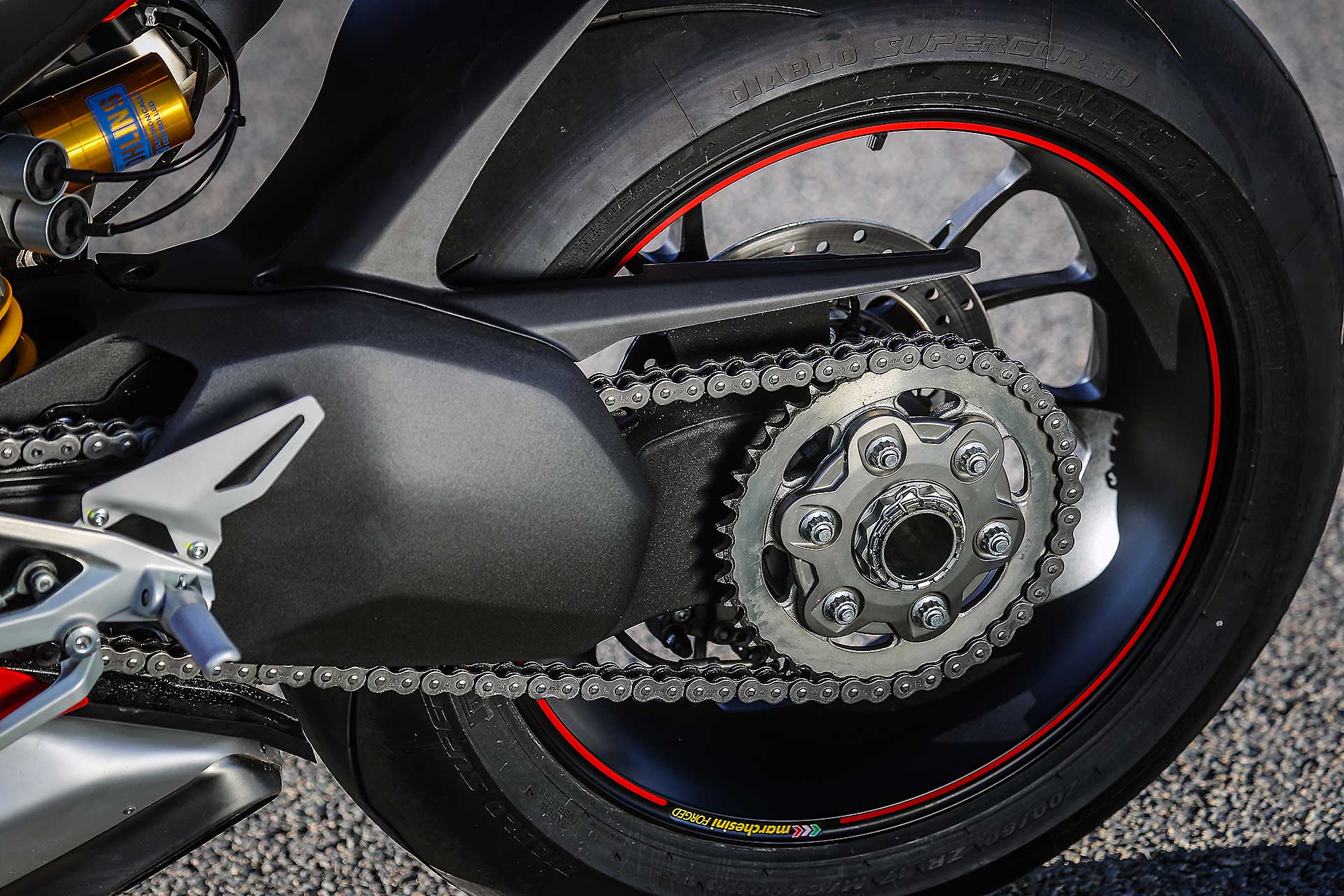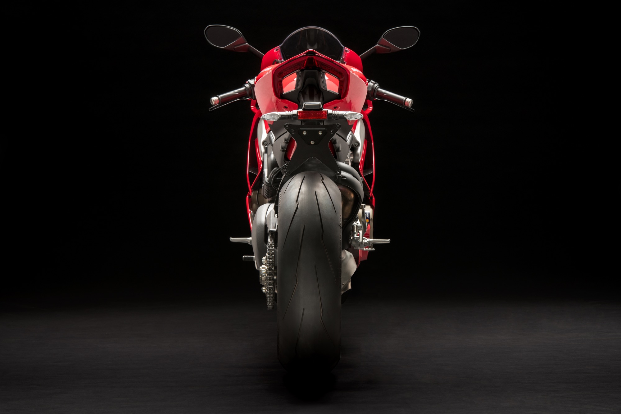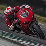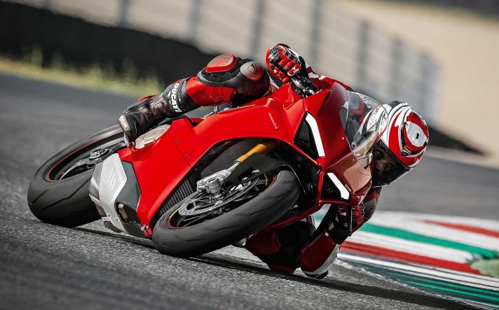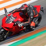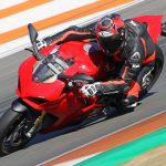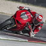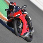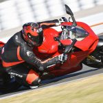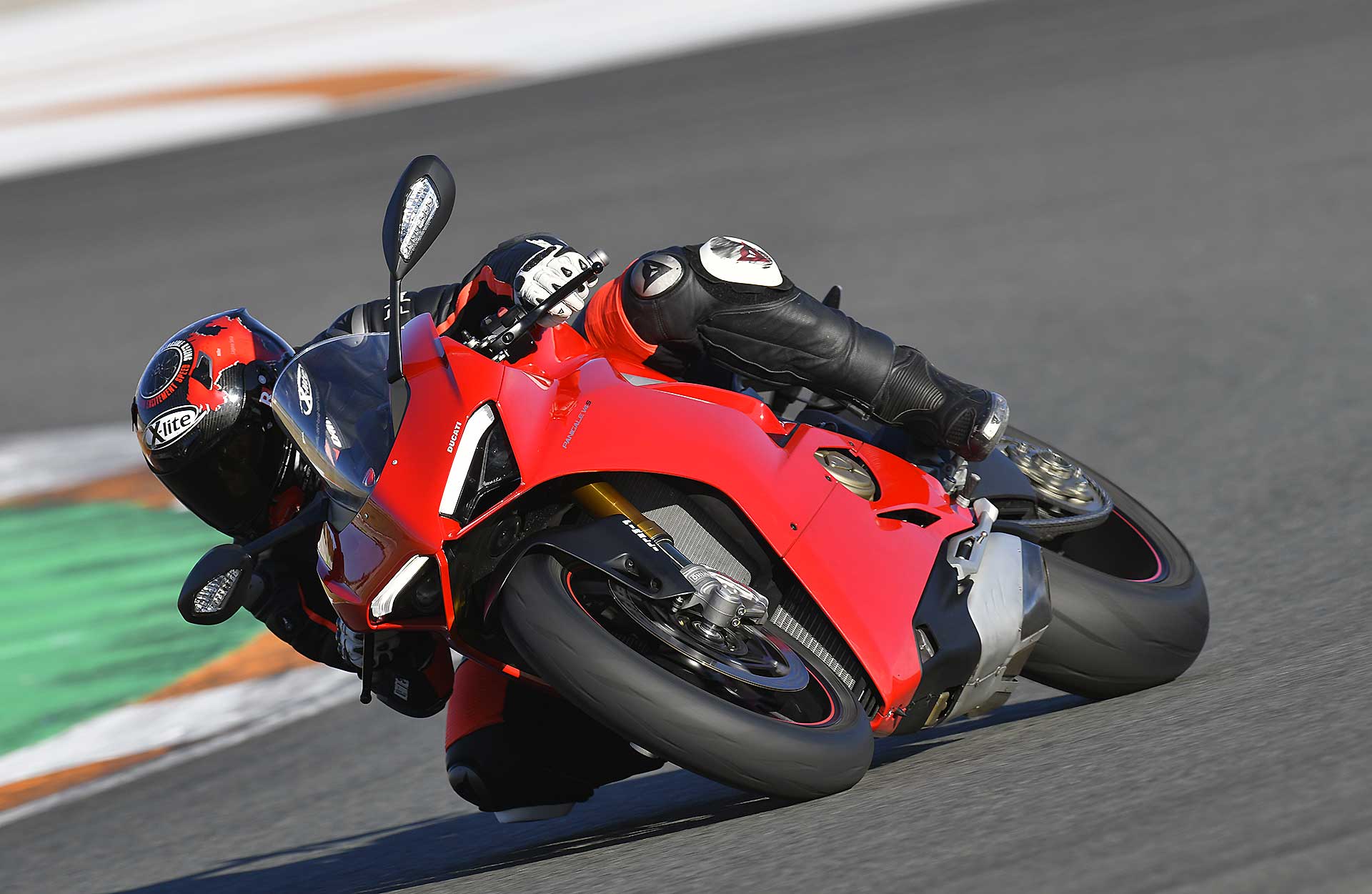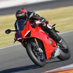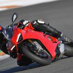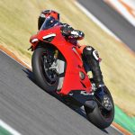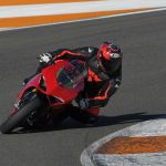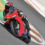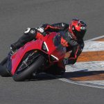 Tornando alla ciclistica, inserimento in curva a parte, mi ha colpito la precisione che ha la Panigale V4 nel descrivere perfettamente quel che accade sotto la ruota posteriore. Senti tutto, percepisci che quando apri il gas la V4 “spinge” davvero forte sul Supercorsa SP da 200/60 (unica gomma omologata per questo modello, garante di grip e maneggevolezza da pneumatico in mescola) e ogni minimo “slide” arriva dritto al fondoschiena. Quello che su altre moto giunge un po’ ovattato, in questo caso arriva secco, preciso, netto. Questo, se la pista è levigata come Valencia, dopo un po’ fa venir voglia di giocare con le perdite di aderenza. Non ho mai apprezzato questo genere di sensazioni: mi piacciono le gomme belle attaccate a terra, e di certo non vado a cercare il power steering, ma in questo caso il controllo che hai nel polso destro e l’aiuto dell’elettronica portano questa fase della guida a un altro livello.DUCATI PERFORMANCE PER STUPIRE DAVVEROSe si vuol capire di cosa è capace la Panigale V4 occorre provare per bene la versione Ducati Performance con scarico Akrapovic e mappatura. Libero dai vincoli dell’omologazione, il motore spinge furioso, (280 km/h GPS in quinta in fondo al rettilineo di Valencia), allunga con maggiore convinzione e sposta l’inizio del calo di potenza ancora più vicino alla zona rossa. Così configurata la Panigale V4 va veramente fortissimo ma paradossalmente la gestione del gas è ancora più “amichevole” (tenete sempre presente con che potenze stiamo giocando…) rispetto a quando si utilizza la mappa Race sulla versione omologata. Mappature meno anoressiche aiutano, infatti, la morbidezza di gestione, e se di supporto hai un paio di Slick SC1 ecco che capisci dove si può arrivare, senza stravolgere nulla. Qualche click alle sospensioni, 12 cv in più e 7 kg in meno. Tradotto significa quasi 2 secondi al giro rispetto alla Panigale di serie – comunque velocissima, soprattutto pensando alle Supercorsa SP di primo equipaggiamento -, ma con la sensazione, certificata dallo sconvolgente onboard di Valia che ha lasciato tutti a bocca aperta, che avendo a disposizione più dell’unico turno che ci è stato concesso si possa andare molto più forte.CONCLUSIONIQual è la conclusione dopo 70 minuti di guida? Le aspettative sono state rispettate? Secondo me sì. Uscire a testa alta da un circuito in cui stai più piegato che dritto con una moto da 200 e passa cavalli non è cosa da poco. Non si può dire che sia “facile”, come del resto non è nessuna moto da oltre 200 cv quando si vuole guidare veramente forte. Di certo il modo in cui scodella le prestazioni è da definire invidiabile.Come ho detto più sopra, trovo sia molto difficile ai giorni nostri scavare solchi troppo profondi rispetto alla concorrenza: saranno le comparative a dimostrare se e quanto le prestazioni di questa nuova V4 saranno o meno superiori. Quello che è certo è che il cambio filosofico attuato in casa Ducati su questa moto è evidente e potrà essere molto fastidioso per i concorrenti. La Panigale V4 ha tutte le carte in regola, non solo (ovviamente) per piacere ai Ducatisti, ma anche per attrarre chi fino a oggi non ha mai pensato di cavalcare una moto di Borgo Panigale. E questa, per gli altri, potrebbe essere una bella gatta da pelare.