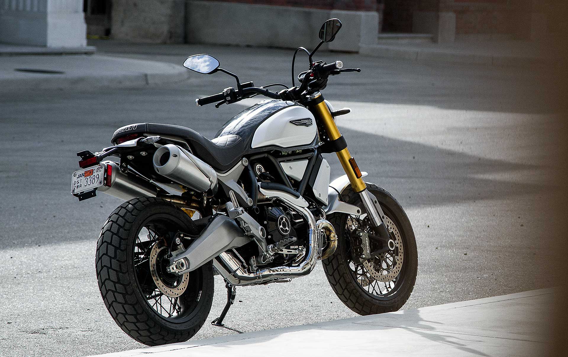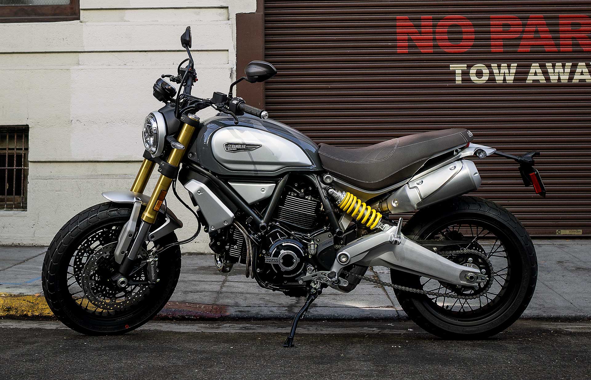 Due le parti in cui è suddivisa la strumentazione, che però ha un aspetto monolitico: quella lunga include l’indicazione tachimetrica, la marcia inserita, l’eventuale estensione del cavalletto e alte informazioni minori; il grande display circolare racchiude le spie luminose sulla cornice esterna, mentre all’interno trovano posto il livello del carburante, quello del Ducati Traction Control, la modalità di guida nonché il contagiri. Tutto digitale.Classica ma elettronicaLo Scrambler 1100 vanta blocchetti elettrici inediti, Ride By Wire, piattaforma inerziale e Ducati Traction Control su quattro livelli, all’esordio sulla gamma. L’impianto frenante Brembo con coppia di dischi anteriori di 320 mm di diametro e pinze a quattro pistoncini, disco posteriore di 245 mm è dotato di ABS Bosch 9.1 MP Cornering, che assicura la massima funzionalità anche a moto inclinata. Tre i Riding Mode: l’Active è il più brillante, dedicato alla guida sportiva; Journey è pensato per l’uso quotidiano; City vede la riduzione della potenza da 86 a 75 cavalli, con il controllo di trazione sul livello più invasivo (4) e una risposta al gas molto dolce.I prezzi: Scrambler 1100 standard da 12.990 euro f.c., Special (in prova) da 14.290 euro f.c. e Sport da 14.990 euro f.c. RIDE Interasse senza ansie (1.514 mm), angolo del cannotto di 24,5°, avancorsa di 110 mm: sono i capisaldi della ciclistica, insieme all’altezza della sella fissata a 810 mm. Dati che chiariscono, se mai ce ne fosse bisogno, la vocazione dello Scrambler 1100, ossia il divertimento nella guida, nel nome del relax e del disimpegno. Con il vento tra i capelli, se le regole lo consentissero.