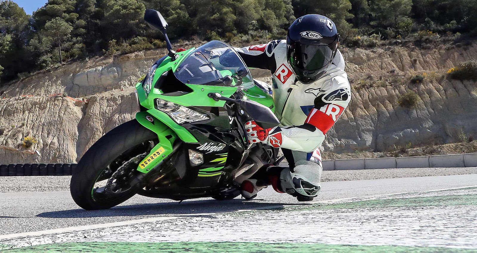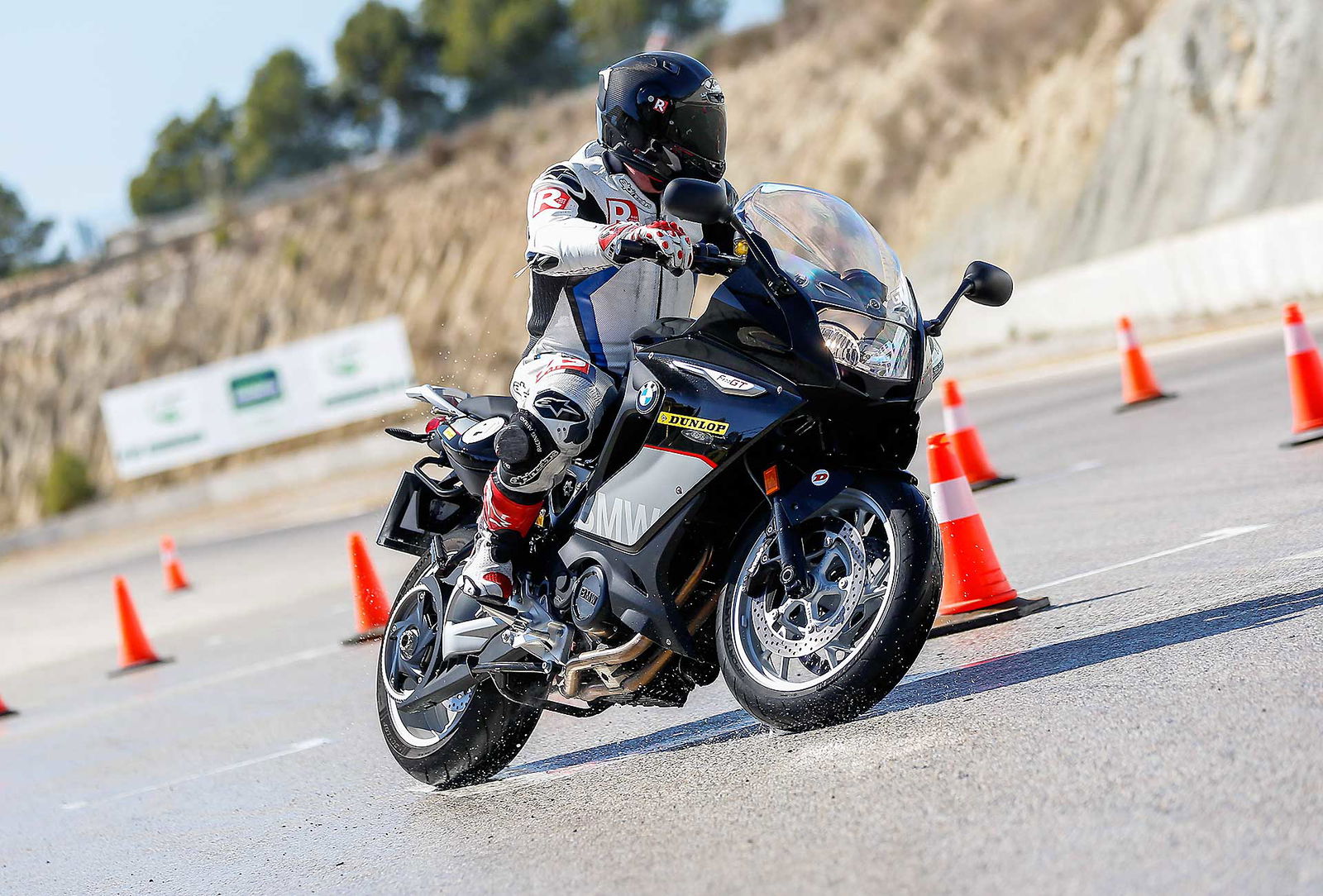 Con queste premesse, il test in pista poteva essere un di più, ma la MK3 dimostra che è in grado di gestire senza problemi anche la guida veloce in circuito soprattutto se magari montata su moto di media cilindrata o anche Naked “coppiose” come la Z900. Non è una gomma da track day, ma per una pistata occasionale sa il fatto suo. Anche in pista mi è continuato a piacere l’anteriore che resta stabile in frenata, smorza bene le buche (e a Castelloli ce ne sono davvero un sacco) e regge una guida veloce accusando solo un po’ di -ovvia- deriva quando si inizia a spingere veramente. Personalmente non ho avuto nemmeno problemi di aderenza al posteriore (vedi on board) anche lui poco “nervoso” sul tormentato asfalto del circuito catalano (l’on board certifica che il manubrio che si muove poco). Anche se sarebbe stato bello provarla anche su una 1.000 invece che sulla sola ZX-6R che avevamo a disposizione (suggerisco a Dunlop di aumentare la varietà di moto presenti). Troppo breve il test sul bagnato (un 8 percorso due volte e una frenata) per giudicarla a fondo in queste condizioni in cui posso dire di aver ricevuto buone sensazioni ma nulla di più.