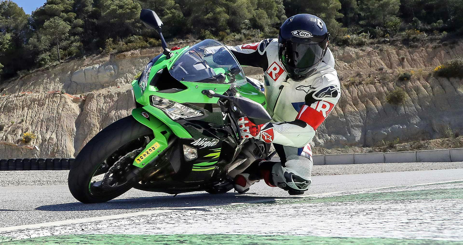 Con queste premesse, il test in pista poteva essere un di più, ma la MK3 dimostra che è in grado di gestire senza problemi anche la guida veloce in circuito soprattutto se magari montata su moto di media cilindrata o anche Naked “coppiose” come la Z900. Non è una gomma da track day, ma per una pistata occasionale sa il fatto suo. Anche in pista mi è continuato a piacere l’anteriore che resta stabile in frenata, smorza bene le buche (e a Castelloli ce ne sono davvero un sacco) e regge una guida veloce accusando solo un po’ di -ovvia- deriva quando si inizia a spingere veramente. Personalmente non ho avuto nemmeno problemi di aderenza al posteriore (vedi on board) anche lui poco “nervoso” sul tormentato asfalto del circuito catalano (l’on board certifica che il manubrio che si muove poco). Anche se sarebbe stato bello provarla anche su una 1.000 invece che sulla sola ZX-6R che avevamo a disposizione (suggerisco a Dunlop di aumentare la varietà di moto presenti). Troppo breve il test sul bagnato (un 8 percorso due volte e una frenata) per giudicarla a fondo in queste condizioni in cui posso dire di aver ricevuto buone sensazioni ma nulla di più.