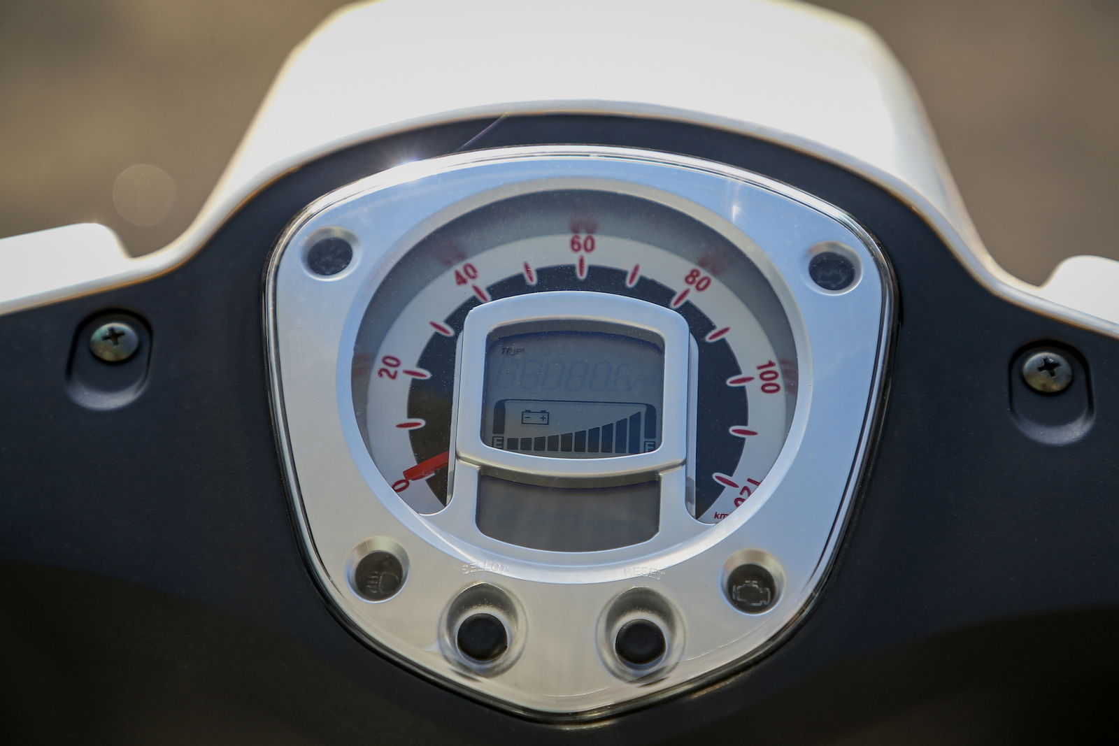 Lo scudo non è particolarmente largo; nella parte posteriore ospita un comodo gancio per la borsa e una presa di ricarica per il cellulare. Semplice ma bello il fanale squadrato. Ampio il vano sottosella, che nonostante ospiti due batterie mette a disposizione spazio sufficiente per riporre un casco jet. Chiara e leggibile la strumentazione digitale, su cui è ben segnalata la percentuale di carica della batteria. Spaziosa la pedana piatta, che contribuisce a ottenere una posizione in sella comoda anche per i più alti, che hanno spazio sufficiente per le gambe.