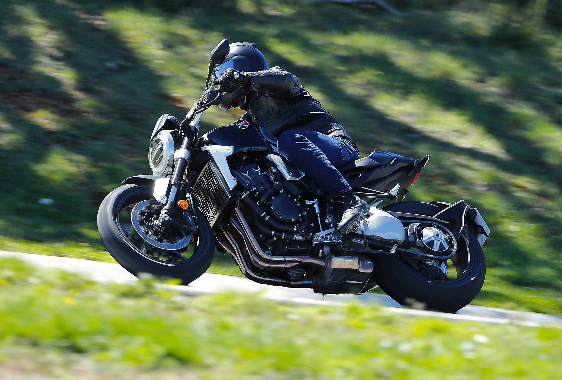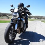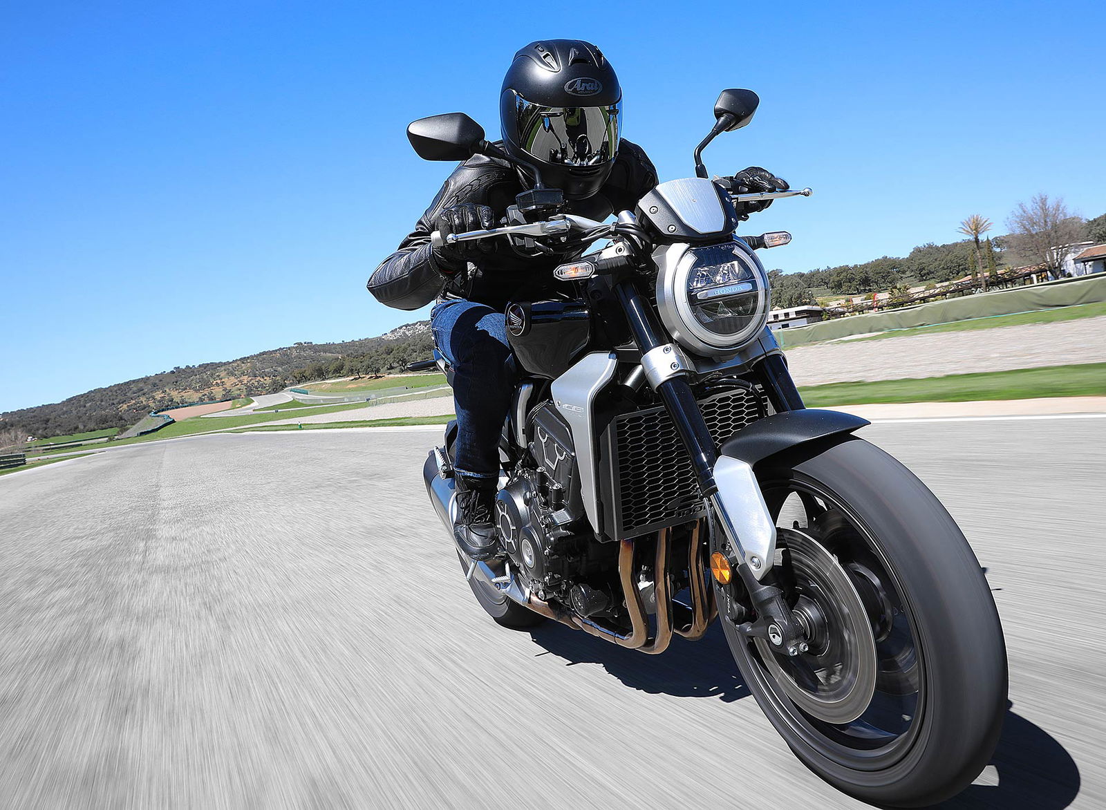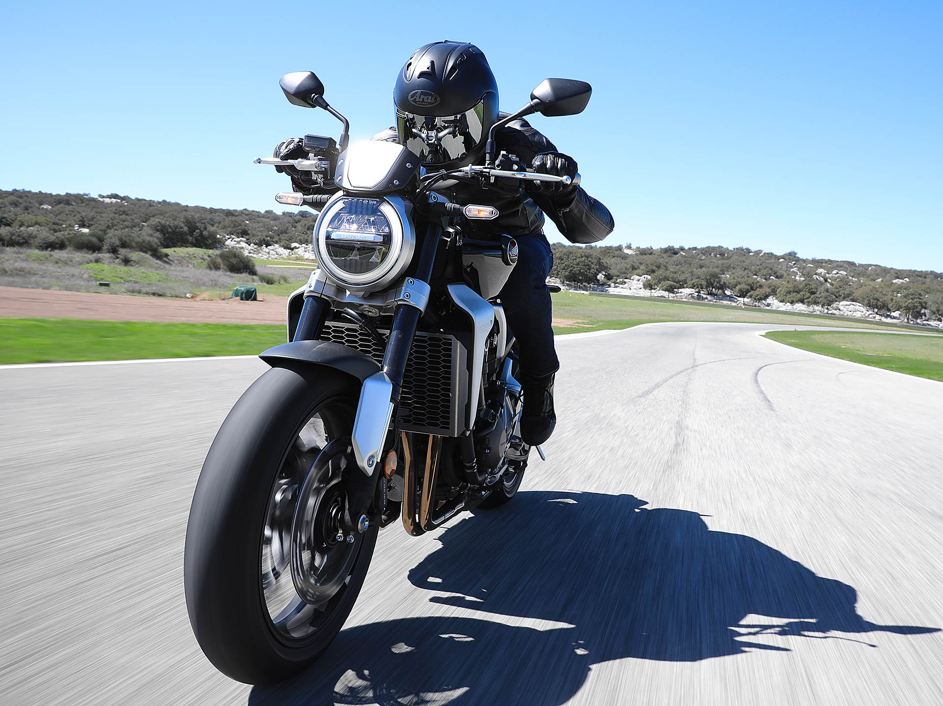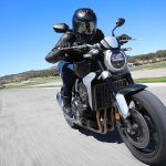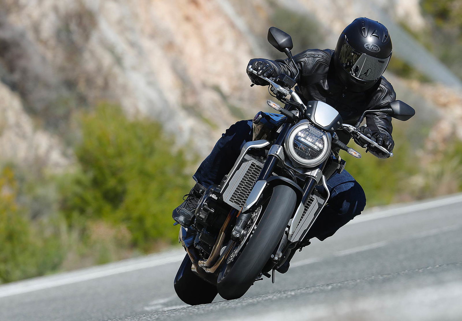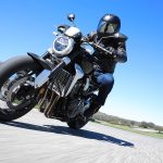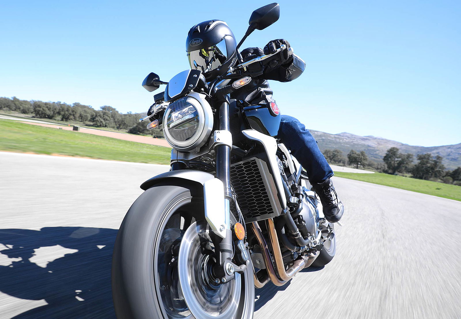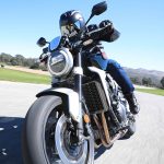 Nessun dubbioLe strade spagnole hanno la grana dell’asfalto giusta per avere grip in curva e sono lisce come un tavolo da biliardo. Il nuovo telaio in questo contesto gioca insieme a forcella e monoammortizzatore un ruolo determinante nella guida. Il trasferimento dei pesi in accelerazione e frenata è di poco conto e la robustezza della forcella in frenata aiuta a trascinare l’azione con la leva ben stretta nella mano fin dentro la curva, dove si arriva decisi e a forte velocità. Ed è in questo frangente che la CB1000R mi convince. Le sospensioni hanno struttura e qualità, sono sostenute ma scorrono e si distendono il giusto anche in accelerazione. Così la Neo Sports Café, in accelerazione fuori dalla curva non va mai a girare larga.Meno velocità più guidato