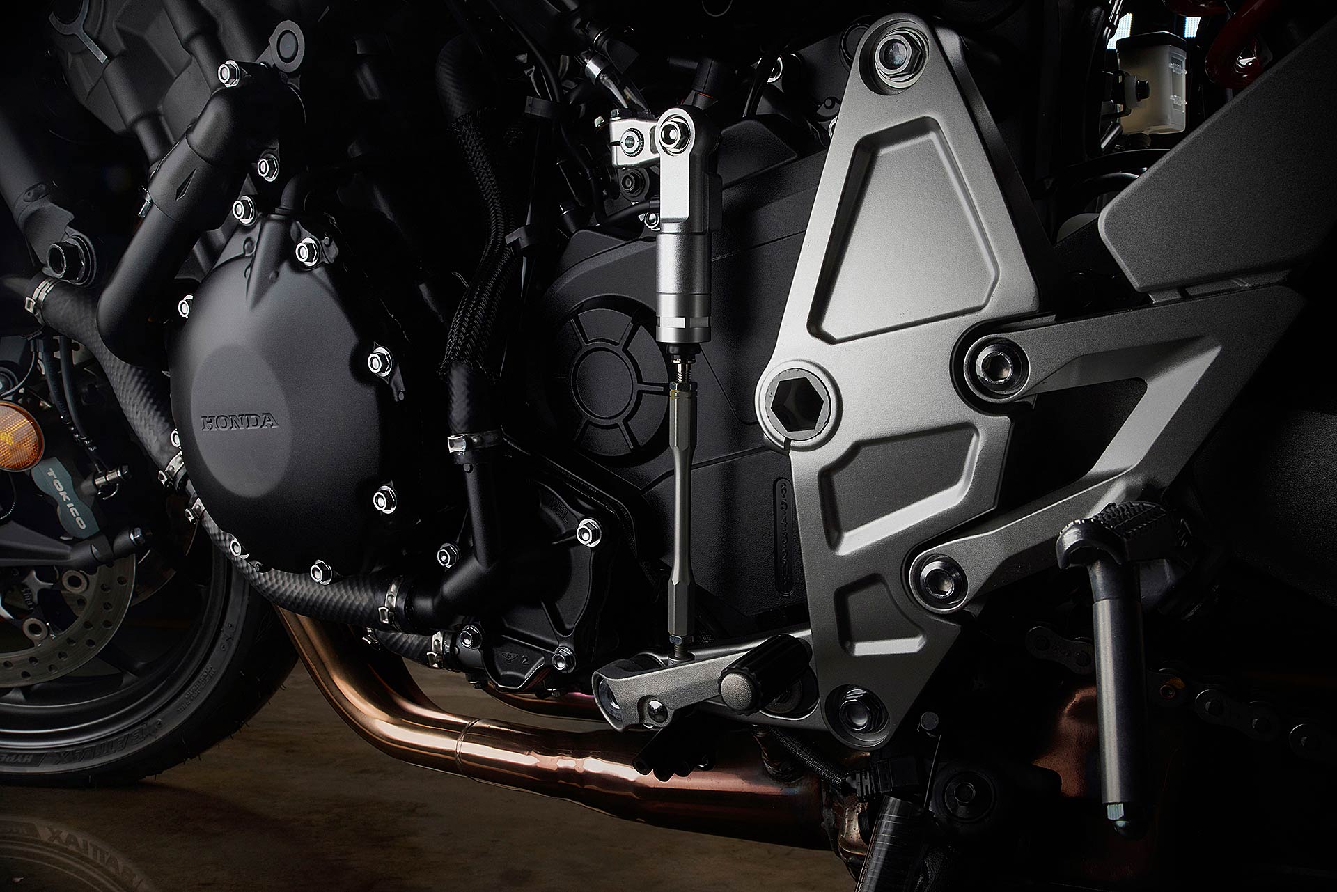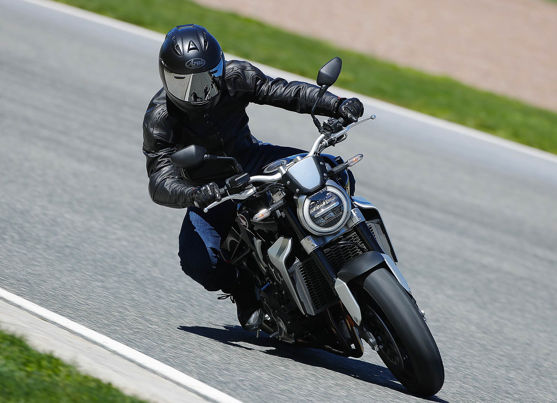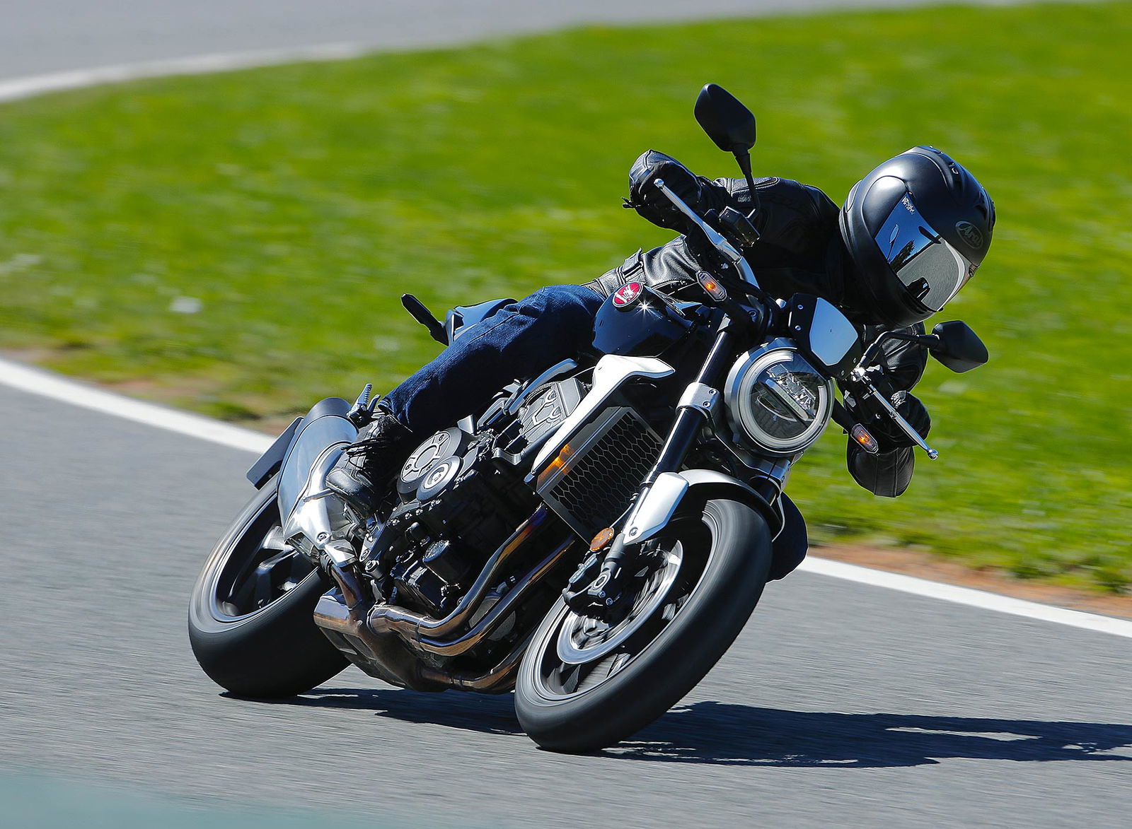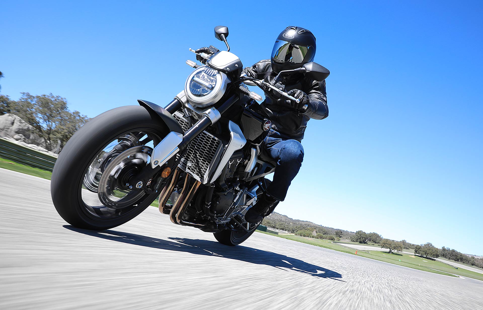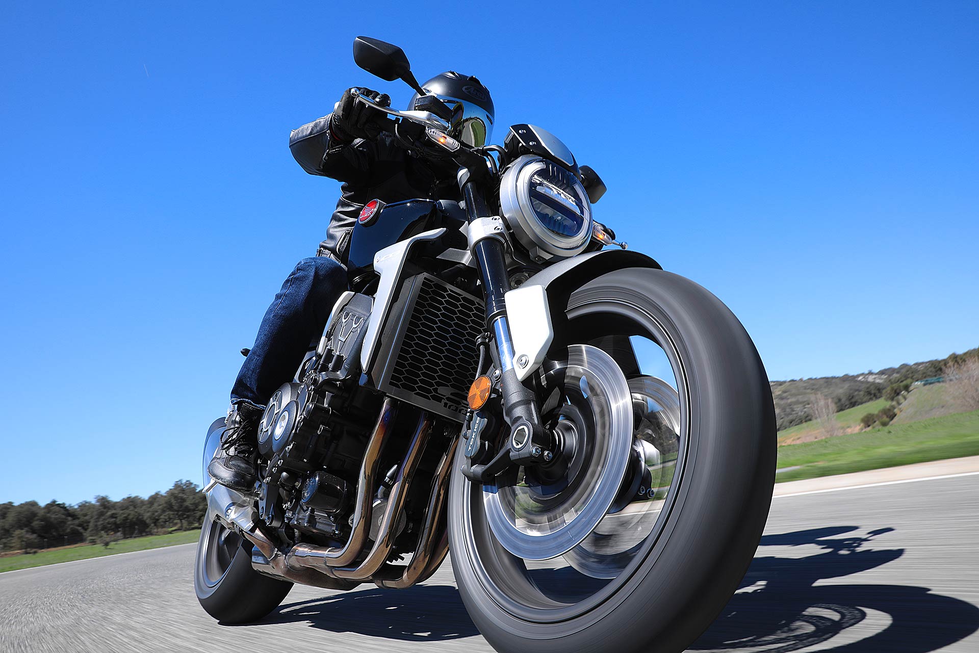 Nessun dubbioLe strade spagnole hanno la grana dell’asfalto giusta per avere grip in curva e sono lisce come un tavolo da biliardo. Il nuovo telaio in questo contesto gioca insieme a forcella e monoammortizzatore un ruolo determinante nella guida. Il trasferimento dei pesi in accelerazione e frenata è di poco conto e la robustezza della forcella in frenata aiuta a trascinare l’azione con la leva ben stretta nella mano fin dentro la curva, dove si arriva decisi e a forte velocità. Ed è in questo frangente che la CB1000R mi convince. Le sospensioni hanno struttura e qualità, sono sostenute ma scorrono e si distendono il giusto anche in accelerazione. Così la Neo Sports Café, in accelerazione fuori dalla curva non va mai a girare larga.Meno velocità più guidato