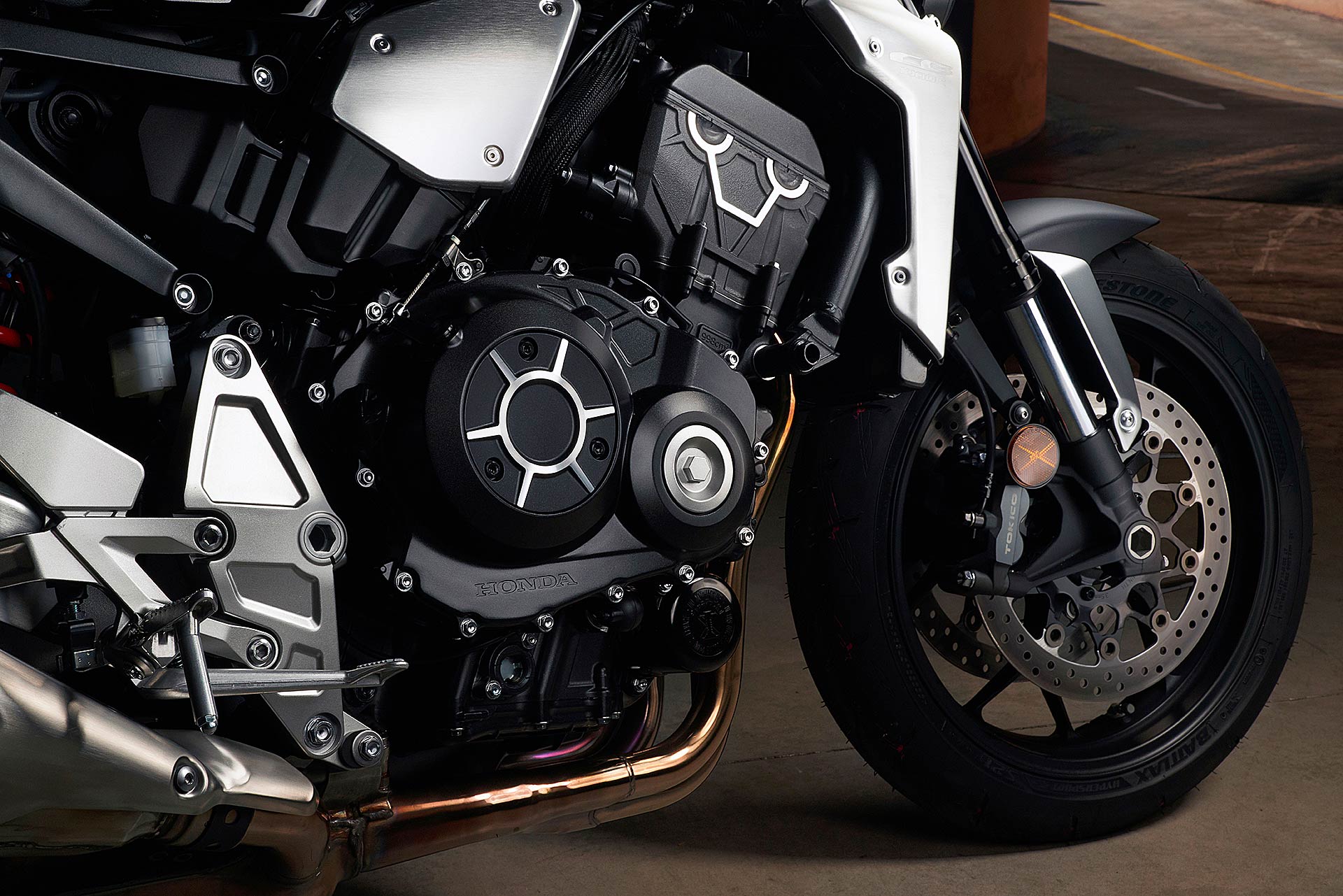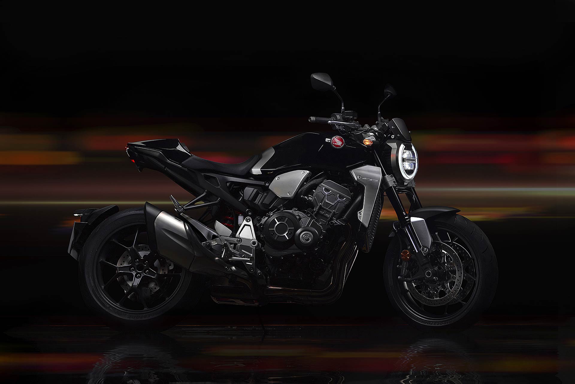 Scurdámmoce ‘o ppassatoLa Honda CB1000R non è più la moto color senape – una delle tante varianti cromatiche create dalla Casa Giapponese – che negli ultimi anni ha tenuto alta l’attenzione del mondo delle naked a quattro cilindri. Oggi la definizione è Neo Sports Café. Sportiva sì, ma elegante e leziosa nei dettagli, un po’ “fighetta” e con un design decisamente “avanti”. Se fosse stata presentata un paio di anni fa avrebbe sicuramente interpretato un ruolo da protagonista nella pellicola hollywoodiana “Mad Max: Fury Road”.E’ nuova fin nel più piccolo dettaglio, pur utilizzando un motore noto, e per sapere come e quanto sia cambiata vi rimando all’approfondimento tecnico che abbiamo scritto in occasione di EICMA 2017. Prezzo di partenza 13.790 euro franco concessionario per la versione standard, 15.090 la Plus del nostro test.La nuova Honda CB1000R ha più cavalli e coppia, meno peso e tanta elettronica a gestire il tutto. Una ricetta facile da realizzare, sulla carta, ma che poi bisogna miscelare correttamente per dare il giusto equilibrio di sapori. Una sfida interessante che a Tokyo hanno affrontato con lo spirito giusto: evitare di cadere nel tranello delle Street Fighter come BMW S 1000 R e Aprilia Tuono V4 1100 o in quello delle facili associazioni con le moderne café racer.Please to meet youTrovo nella posizione in sella un equilibrio tipico di Honda. La zona tra serbatoio e sella è ben svasata: piante dei piedi ben a terra. Manubrio quasi alla giusta distanza anche se personalmente lo avrei preferito un po’ più sotto, ma ci sta! Cosi quando si va veloci il busto è già puntato in avanti e non ci si deve aggrappare alla barra di comando per contrastare l’aria che arriva a schiaffeggiare casco e torace. E poi pedane alte quel tanto che basta per non demolirle sull’asfalto quando si piega decisi. Perché con la nuova CB1000R si piega parecchio.