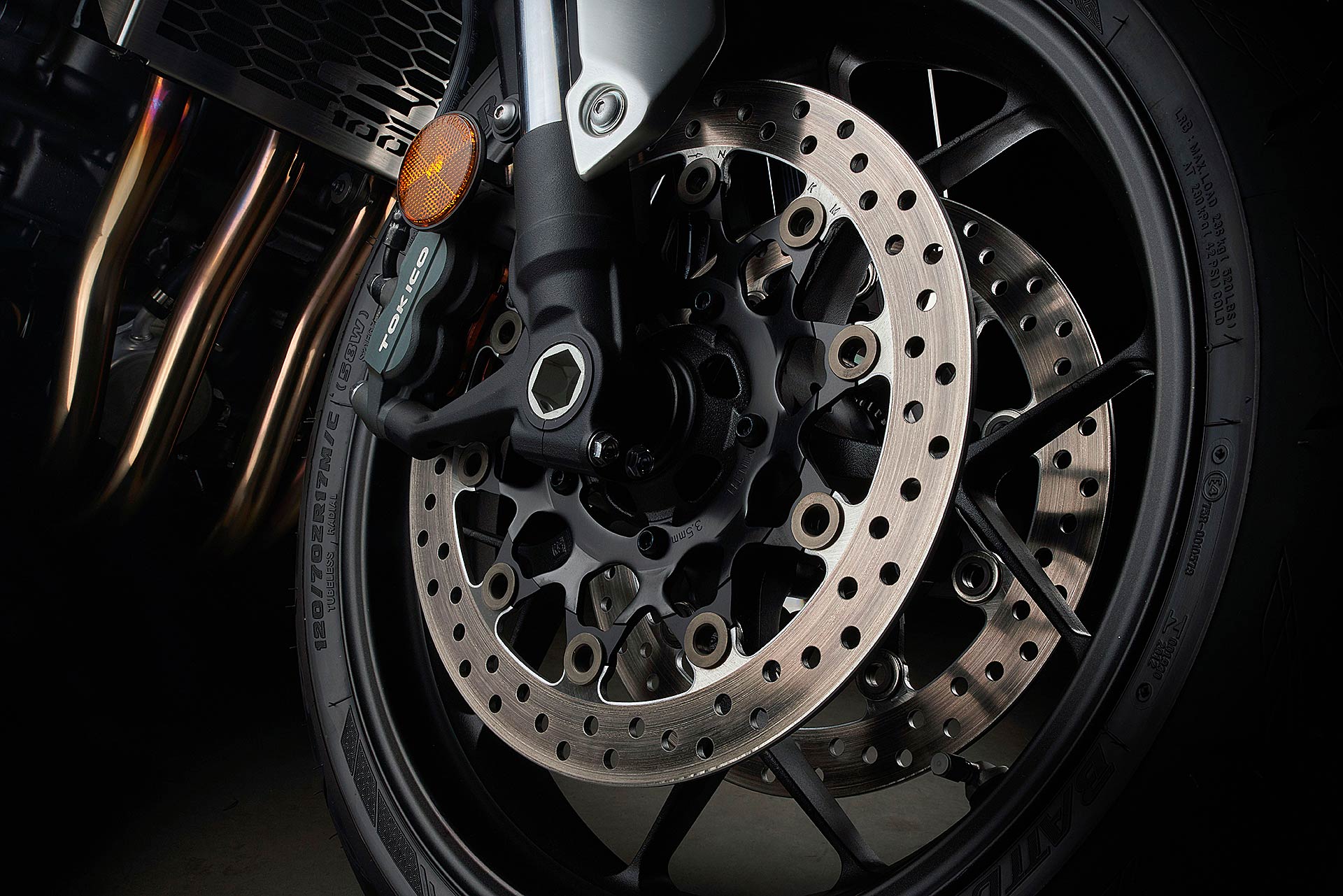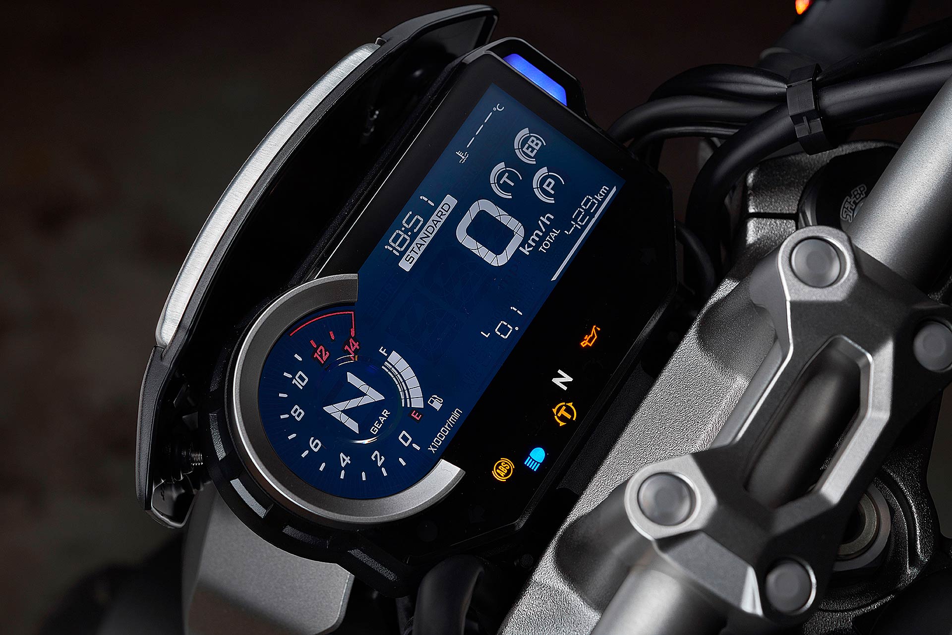 Guidami e capiraiC’è tanta elettronica nella CB, tanta elettronica e tanta coppia ai bassi. L’asfalto freddo che incontriamo nella prima parte del percorso obbliga a guidare con il motore “sottotono” ma la gomma posteriore pattina comunque; il traction control interviene con delicatezza, i corpi farfallati (c’è il Ride By Wire) tolgono ossigeno al motore, che si placa quel tanto che basta per riallineare le ruote, e così la millona smette di sbandierare. E’ la fortuna di avere a disposizione un domatore silente che non teme il guizzo dei 145 cavalli e offre al rider la certezza di poterli controllare in qualsiasi condizione di guida, strada e meteo. I riding mode sono tre: Rain, Standard e Sport con i valori di potenza, freno motore e traction control preimpostati, a cui si aggiunge la mappa Custom per trovare la configurazione preferita. Scelgo dopo aver confrontato le varie soluzioni l’opzione Standard che racchiude tutta la potenza e una risposta dolce all’apertura del gas. RIDE