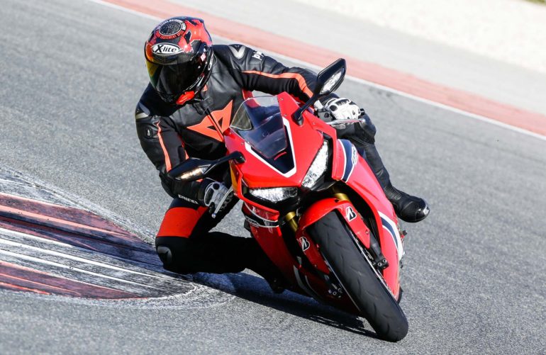 La CBR mostra subito le sue doti di leggerezza e maneggevolezza. Portimao anche se la conosci è sempre una pista ostica, ma la CBR aiuta anche nei primi giri gelati. È facile e amichevole ma il motore appare subito di ben altra pasta rispetto al precedente: schiena ne ha sempre avuta il 4 cilindri Honda, ora è ancora più convinto ai medi, cattivo quando ci si avvicina alla zona rossa e con un sound bellissimo!L’elettronica – la gestione dei Riding Mode dal blocchetto sinistro è immediata e molto comprensibile – è valida per quel che riguarda la gestione del motore e il Traction Control che lavora parecchio nell’ombra, senza tagliare in modo sgradevole l’erogazione. Solo che, per quanto volenterose, le Bridgestone S21 sono buone per un ritmo medio: quando si inizia a spingere l’elettronica tira troppo le briglie e non riesco a capire veramente quanto può esprimere il motore, che però, tra le righe, fa capire di avere molto da dire.Rilevo grande maneggevolezza (a sensazione la migliore tra le 4 cilindri in linea), ottima precisione nella definizione delle linea (dove la vuoi mettere va), e la grande attitudine a chiudere le curve. Insomma la Fireblade sa farsi rispettare e aiuta il pilota, risultando poco affaticante, protezione aerodinamica a parte che è veramente risicata soprattutto per quel che riguarda il minuscolo cupolino. Le sospensioni Showa mi piacciono, l’assetto è azzeccato, il sostegno in frenata della BPF è ottimo, anche se sulle buche che si sono formate a Portimao vorrei copiassero un po’ meglio. Anche i freni sono molto validi ma ho una riserva sull’ABS, che si fa sentire “sporcando” leggermente il feeling di guida: lo vorrei disattivabile o almeno con una mappatura più spinta.