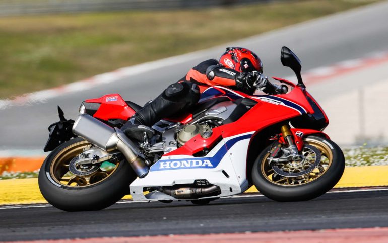 Sui poderosi scollinamenti di Portimao emerge la tendenza all’impennata, che l’anti wheeling non riesce a gestire al meglio. In realtà la CBR1000RR non ha un anti wheeling nel senso stretto del termine, ma lavora con il traction control, che quando rileva una differenza di velocità tra ruota anteriore e posteriore (quando si impenna la ruota anteriore rallenta) chiude le farfalle per riportare la ruota al suolo. Il sistema non è mappabile ed è simile a quello della prima edizione della BMW S1000RR, che provai qui a Portimao e di cui rilevai la tendenza all’impennata marcata anche nello scollinamento da quinta che porta sul traguardo. Questa è una pista particolare, con cambi di pendenza repentini, per cui è inevitabile aiutarsi con (tanto) freno posteriore per evitare di puntare il cielo. Di conseguenza sospenderei il giudizio fino alla prova su una pista “normale”. Detto questo, l’anti wheelie in abbinamento al Traction Control è soggetto alle medesime logiche: abbasso il livello di TC e di conseguenza il livello di antiwheeling. Occorre trovare un giusto compromesso: in una pista come questa avere due regolazioni separate non sarebbe male.IN PISTA CON LA SPLa parte successiva del test vede protagonista la CBR1000RR SP equipaggiata addirittura con le slick commerciali di Bridgestone: le V02 in mescola soft. Altro pianeta! Ora con gomme che “attaccano”, mappatura a potenza piena e controlli elettronici più “liberi” (motore 1, TC 2) la CBR riesce a far capire il suo vero potenziale. Maneggevolezza e intuitività non vengono meno ma il motore quanto a potenza e coppia dice la sua. È “pastoso” il 4 in linea Honda, non rabbioso, pertanto può falsare le sensazioni: di schiena però ne ha veramente molta e ora ha guadagnato spinta anche in alto, dove era un po’ carente rispetto alla concorrenza.