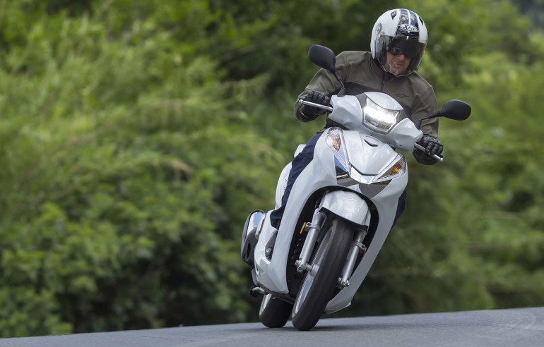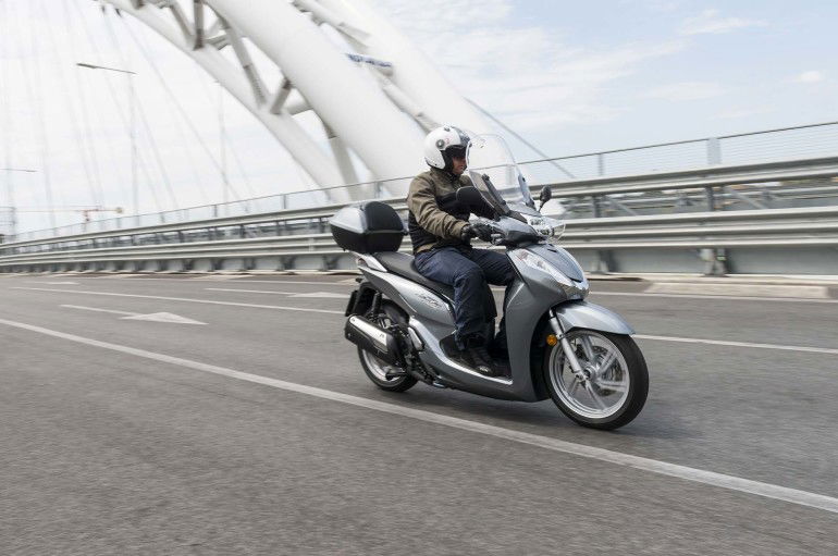 Il bello è che l’agilità cittadina e la maneggevolezza a bassa velocità degna del re della gimkana fanno il paio con una stabilità degna di nota alle alte velocità. L’effetto “biciclettina” dato dalle dimensioni compatte sparisce man mano che l’andatura cresce. In velocità l’SH300i è sorprendentemente stabile e sincero, rigoroso anche quando si affrontano curve ad alta velocità, ben sopra i 100 orari, situazione in cui a dispetto delle dimensioni compatte non si ha mai l’impressione di guidare qualcosa di “gracile”. Stabilità che non viene messa in discussione nemmeno quando si montano parabrezza e bauletto (ovvio che in questo caso la velocità massima sarà inferiore, circa 140 indicati), che non disturbano l’aplomb dell’SH300i sui percorsi veloci, consentendogli di affrontare qualcosa in più del solito tragitto casa-ufficio. La pedana è giusta giusta per i piedi, e lo scudo piuttosto sciancrato lascia passare l’aria attorno alle ginocchia, ma per trovare un difetto a questo scooter occorre cercare il pelo nell’uovo, alla fine di una giornata “full gas” lunga 140 km su percorsi di ogni tipo e con il computer di bordo fermo a 3,7 litri di carburante per 100 km. Honda lo definisce uno scooter trasversale: in effetti basta guardarsi attorno per capire come l’SH300i piaccia indifferentemente a giovani e “maturi”, a uomini e donne. I numeri di vendita lo confermano, e con le ultime evoluzioni l’SH300i ha fatto un ulteriore passo avanti. Un vero problema. Per la concorrenza.