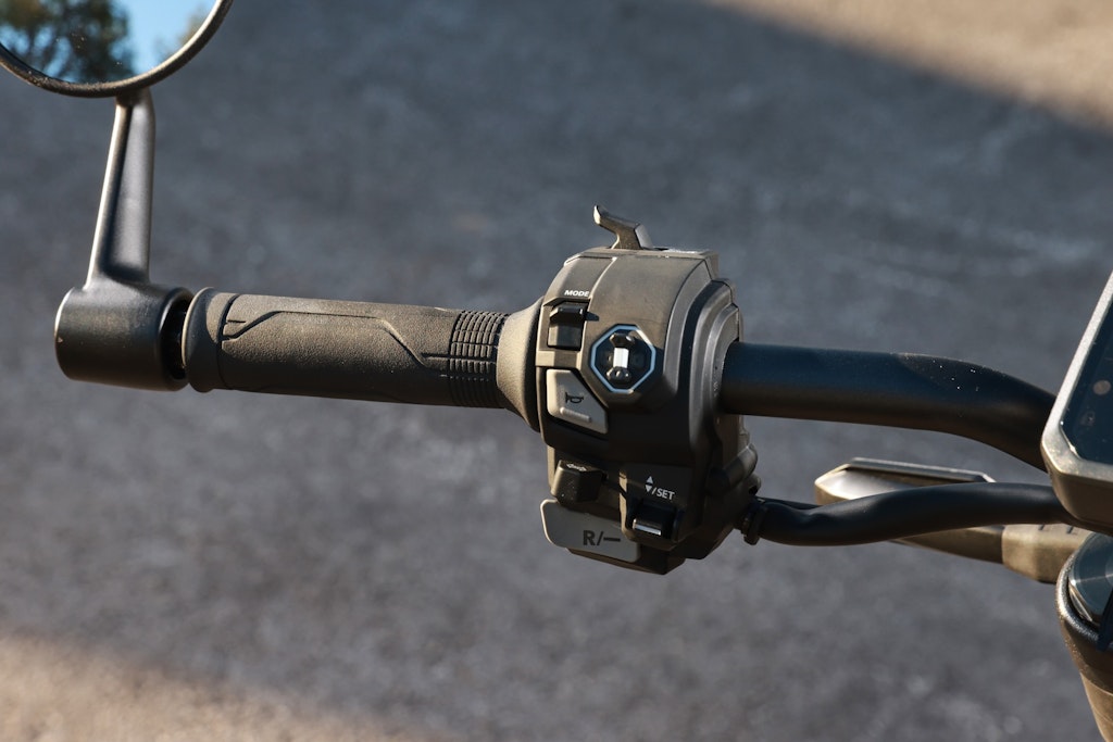 Sono quattro i Riding Mode: Standard, Sport, Rain, Econ. Tre, invece, i livelli di frenata rigenerativa, in pratica il “freno motore”. Tali livelli sono associati di serie ai Riding Mode: ad esempio in modalità Sport l’accelerazione è massima mentre la frenata rigenerativa è impostata sul secondo dei tre livelli. È però facile scegliere, eventualmente azzerando la frenata rigenerativa, azionando i deviatori posti sul blocchetto sinistro: sul fronte c’è quello per aumentare il freno (da 0 a 3), sul dorso quello per ridurlo. Interessante la possibilità di impostare tre limiti di velocità (Selectable Speed Limit), utili ad esempio in contesti urbani come le “Zone 30” per evitare multe. Infine, a beneficio della facilità di manovra, una specifica modalità si attiva con i già citati deviatori, a moto ferma, e permette di spostare avanti e indietro la moto a velocità comprese tra 1 e 5 km/h (Walking Mode), un comodo aiuto per parcheggio e manovra. Imprescindibile, vista la coppia di 100 Nm, la presenza del controllo di trazione.