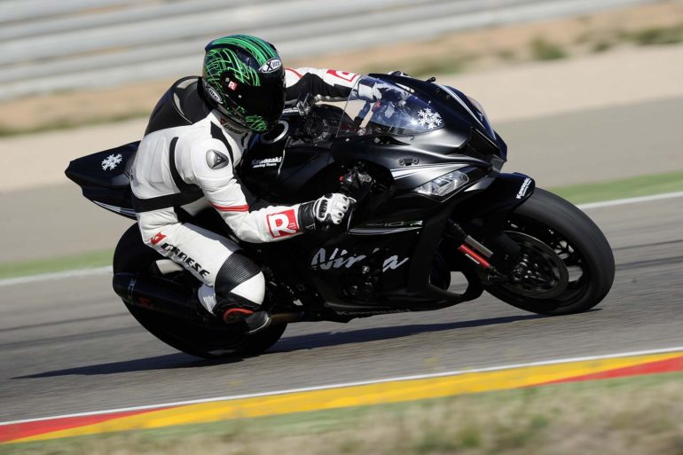 Un giro ad Aragon con la Ninja ZX-10RRLe regole cambiano, e con loro le moto. Passo passo anche i giapponesi si sono adeguati alla moda molto “europea” di realizzare versioni speciali dei modelli più sportivi, per avvicinarsi con i modelli di serie (e relative parti omologate) alla moto da gara. Operazione necessaria, visto che il Mondiale Superbike stringe sempre più i cordoni dei regolamenti e le preparazioni concesse sono sempre meno.In realtà la sigla RR non è nuova in casa Kawasaki: apparteneva, infatti, alla ZX-7RR, che anche allora era la proposta più vicina alla moto racing e alla ZX-6RR protagonista in gara nella Supersport e in molti trofei. Ora arriva sulla mille: porta in dote una dotazione ciclistica evoluta e modifiche al quattro cilindri, che vede l’arrivo di una nuova testata modificata, capace di ospitare alberi a camme con maggiore alzata (omologati ma offerti come kit), e carter rinforzati per resistere meglio alle sollecitazioni dei motori da competizione.Le pastiglie di calibrazione delle valvole hanno il rivestimento in DLC che riduce gli attriti. In aggiunta arriva il quickshifter bidirezionale, che lavora sia in salita sia in scalata. Sul fronte ciclistico la novità più importante è costituita dai cerchi forgiati Marchesini (in pratica gli stessi della moto di Rea e Sykes) a 7 raggi, che limano peso – i tecnici non ci hanno saputo dire quanto – nell’importantissima sezione delle masse non sospese. La RR riceve un nuovo setting specifico per sospensioni Showa (invariate), studiato anche per adattarsi alla configurazione monoposto della moto, che vale circa un kg sul peso generale. Di serie la RR è disponibile con pneumatici Pirelli Diablo Supercorsa SP, scelta insolita per una Casa giapponese ma sicuramente azzeccata per il tipo di prodotto. Questo per quel che riguarda la moto di serie. Ad Aragon avevamo qualcosa di più, una RR un po’ “speciale”, perché i tecnici Kawasaki ci hanno voluto far provare quello che proverebbe un normale appassionato che si dedica ai track days o a fare qualche garetta in pista.Ecco perché sono spariti gli specchi retrovisori ed è spuntato uno scarico completo Akrapovic, con mappatura dedicata per motore e controlli elettronici. La mappatura specifica ignora l’ABS, che in questo caso è stato addirittura eliminato. Grazie all’apposito kit di regolazione il cannotto perde mezzo grado di inclinazione (da 24 a 23,5) e l’assetto prevede una forcella più “morbida” (ritorno da 2.25 a 2,5, compressione da 2,75 a 3.0) e un mono irrigidito (ritorno da 2.25 a 1.75) e più “lungo” di un millimetro. Tutte operazioni che dimostrano la voglia dei tecnici di Akashi di offrirci una moto decisamente più “svelta”, confortata dal grip delle Pirelli Supercorsa SC1. Insomma alla moto di Aragon mancava solo la carena racing e poi aveva tutto per buttarsi a testa bassa in un trofeo.RIDEHo dei bei ricordi legati alla sigla RR, soprattutto perché è stata proprio una RR (la ZX-7RR) ad accompagnarmi – insieme a molte altre – nella mia prima uscita in pista da giornalista con moto “vere”. A Misano si girava ancora in senso antiorario (nostalgia!) e a quel test organizzato da Michelin per farci provare le TX 15/25 c’era il meglio della produzione mondiale sportiva. E c’era anche lei, con cerchi e codone viola e i suoi mostruosi carburatori Keihin FCR 41 a valvola piatta a comando diretto (non a depressione), massima espressione del racing dei tempi. Un legno. Dura da guidare, stabile come un treno, inamovibile dalla traiettoria impostata e con un motore cattivissimo la ZX-7RR era una racer pura. Ricordi che mi tornano in mente mentre approccio la ZX-10RR per affrontare le prime curve di Aragon. Fa freddo, soffia un vento gelido e l’asfalto non è amichevole, ma termocoperte e SC1 mi rassicurano.